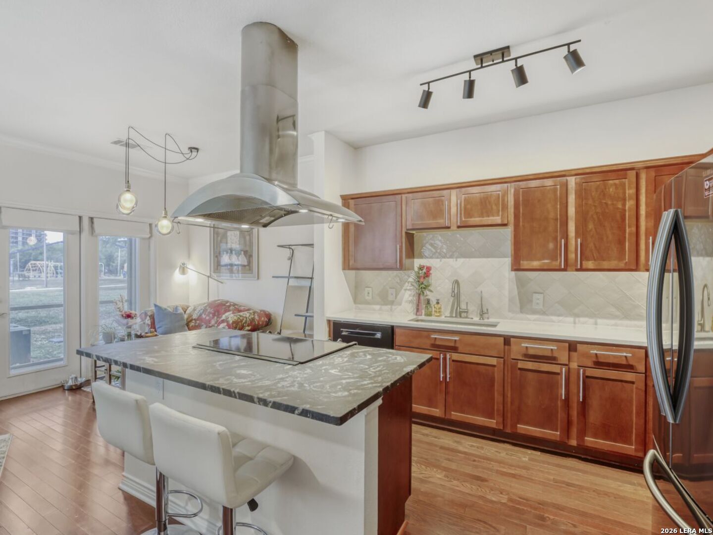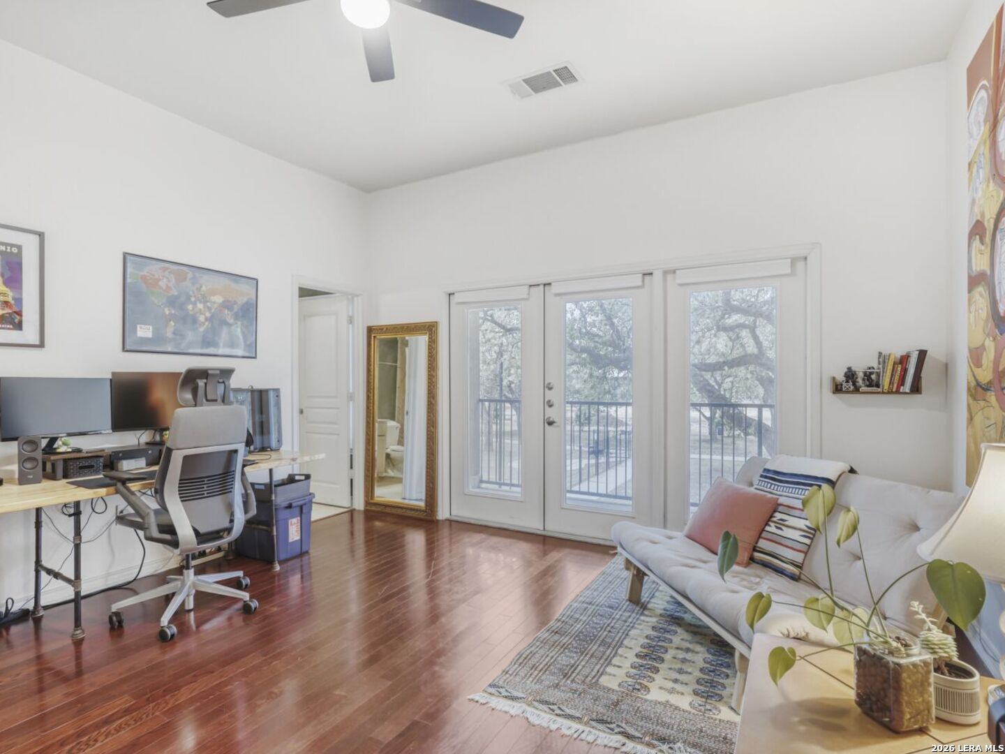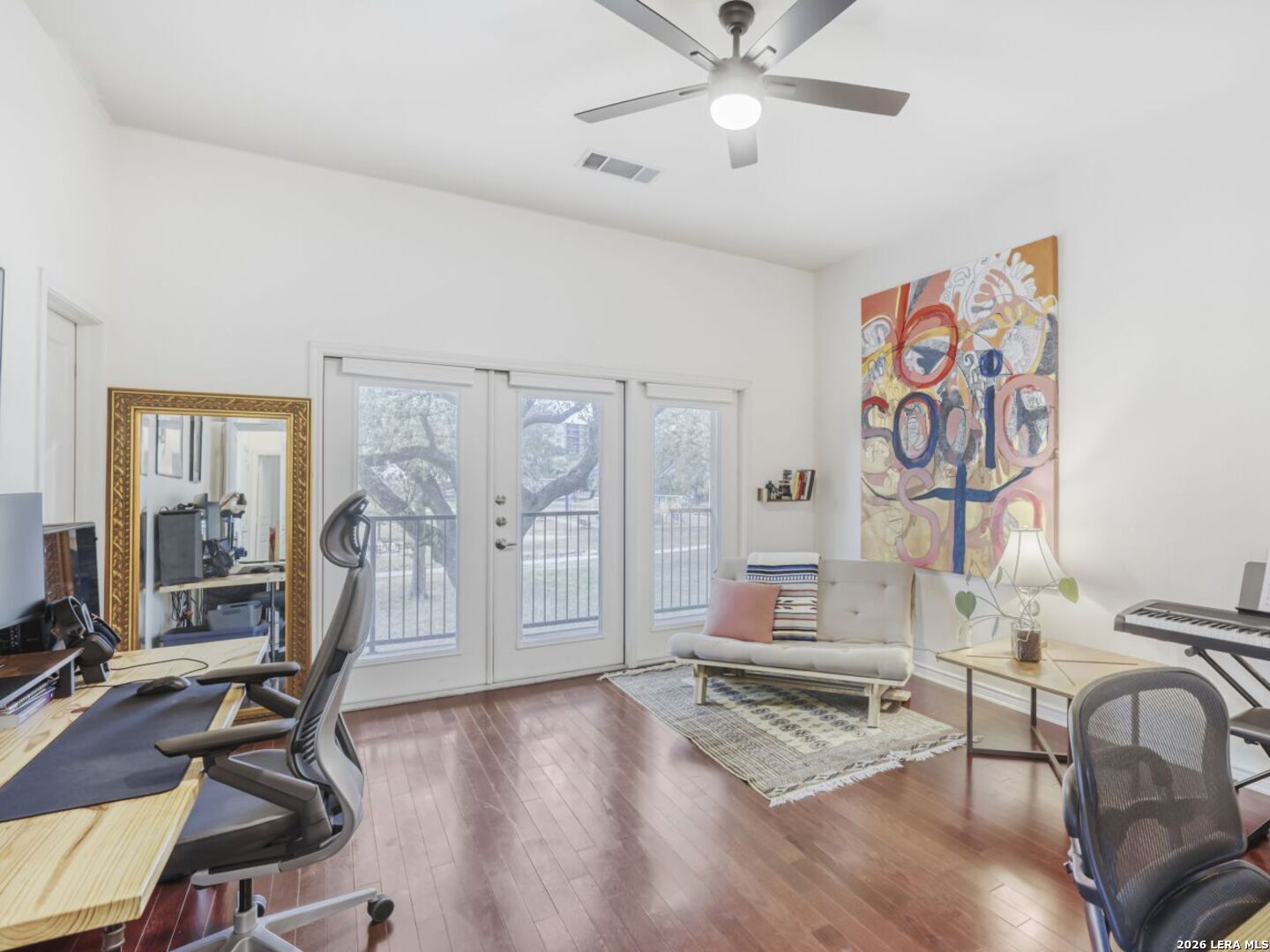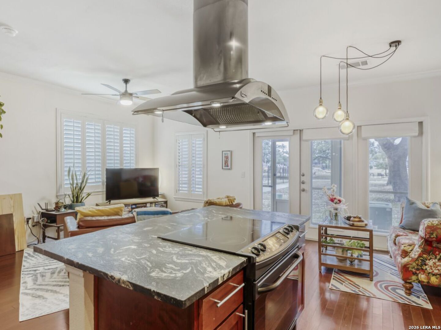 This roomy two-bedroom townhome offers both comfort and privacy, with bedrooms conveniently tucked away upstairs. Set in a lively neighborhood that blends modern perks with the charm of downtown, it's perfect for anyone wanting excitement and convenience. Just a short stroll from the new Marvel Spurs Arena, it's a dream spot for sports and entertainment fans. The private balcony boasts gorgeous views of the Tower of the Americas, making it an ideal place for unwinding or hosting.