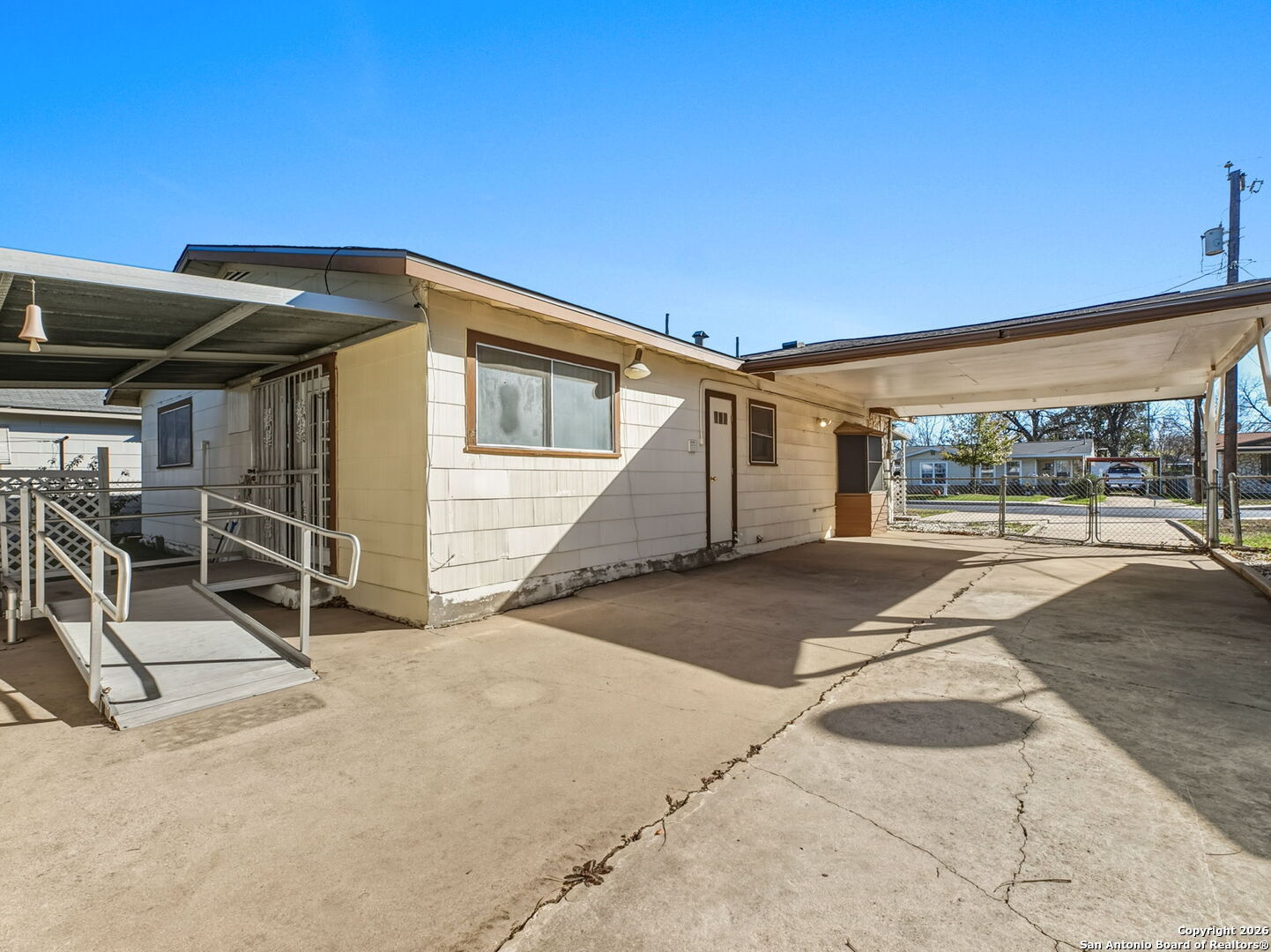 Discover this beautiful and rare 3-bedroom, 2-bath gem that has been lovingly maintained by the Seller's family for decades. This home effortlessly blends historic charm with practical amenities, featuring a quaint front sitting room that leads into a a spacious kitchen and a large and inviting family room. warm family room at the back. The interior boasts classic hardwood floors and an ample kitchen with a dedicated breakfast area. The spacious floor plan includes a large rear bedroom and a master bedroom upfront with a walk-in shower stall designed for easy wheelchair accessibility. Exterior highlights include exceptional parking with a 2-car garage, a 2-car carport, and a wide driveway with a handicap ramp. The very spacious garage also features an attached shop, which offers fantastic potential (formerly a beauty shop). With a newer roof and water heater, this home has been thoughtfully improved while preserving its authentic character. Sellers are willing to help with closing costs with an acceptable offer. More pictures coming soon-don't miss this unique opportunity!"