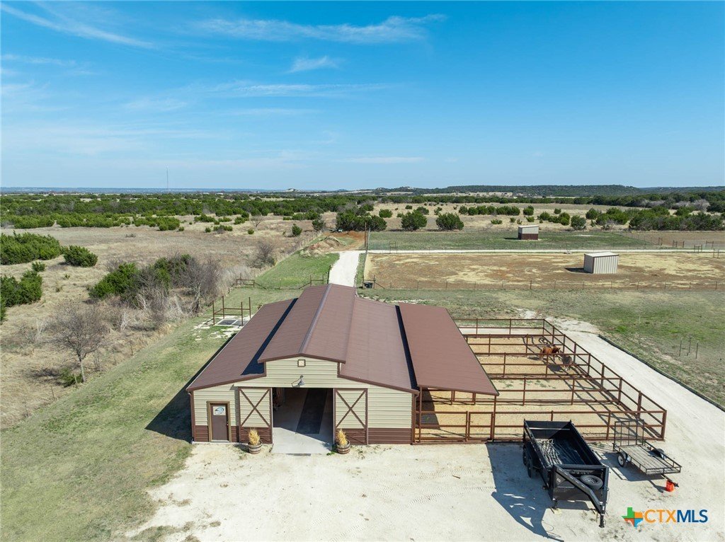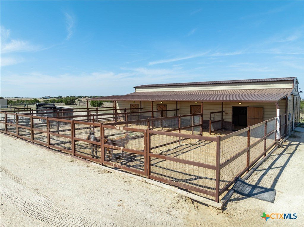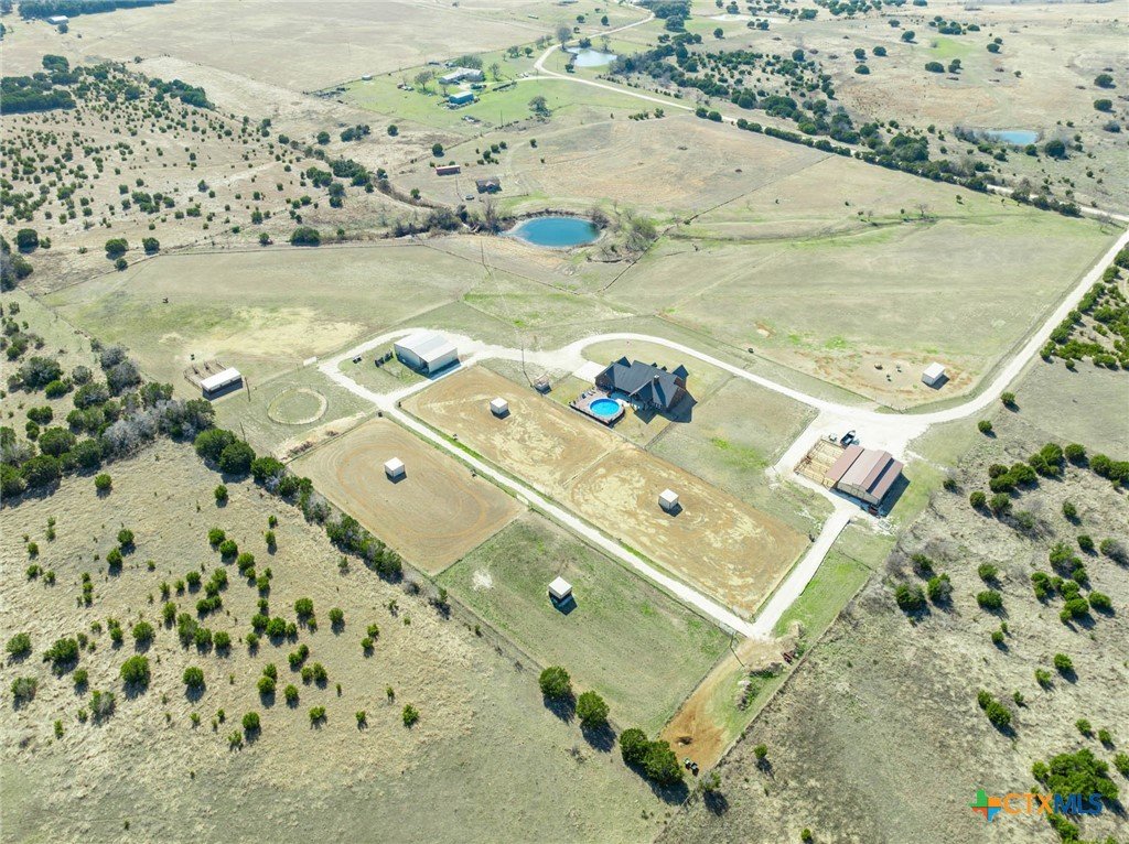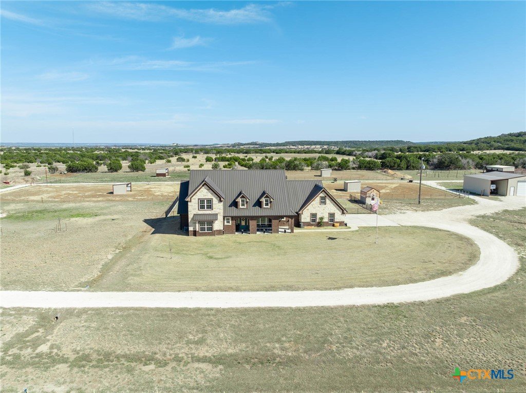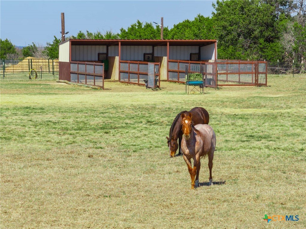 As you pass through the gate, you’re immediately welcomed by well-maintained pastures that reflect the quality of this 18-acre property. This property is cross-fenced with shelters in every pasture. The Texas Hill Country home is perfectly positioned in the center of the acreage, maximizing the usability of the land. The placement of the barns, shop, and facilities gives the property a much larger, open feel with excellent flow and accessibility. This property has fully enclosed main barn with multiple stalls and runs, automatic waterers, built-in feeders, fans, and lights on timers. Ideal for performance horses, breeding or training. Secondary horse barn with stalls with runs. There are multiple locations for an arena. Rocked roads leading to each barn and facility. There is a shop with covered parking for storage of tractors, trailers, hay, and equipment. The property has an in-ground sprinkler system serving the front and backyard landscaping. Also there is a greenhouse. Inside the home, you’re welcomed by vaulted ceilings and a stunning floor-to-ceiling rock fireplace in the main living area. The kitchen has a six-burner stove and a convenient pot filler. The residence is designed for comfort and efficiency with separate heating and cooling systems for upstairs and downstairs and two tankless water heaters to support the demands of a full household or ranch operation. The backyard has a built-in pool, decking, and an outdoor kitchen, all within a securely fenced backyard area. Ideally situated for the performance horse industry, this property offers convenient access to Circle T Arena and is centrally located between Stephenville, Weatherford, Lampasas, and Waco—placing you in the heart of Central Texas horse country with easy access to major events, trainers, and equine services. This is a turn-key, first-class horse property combining elite equine functionality with refined ranch living. A must-see facility for any horse operation or ranch lifestyle buyer.