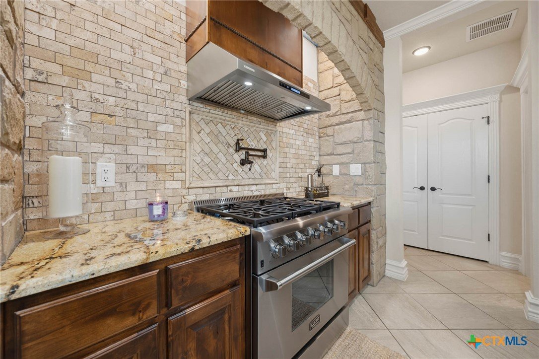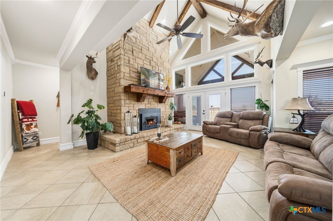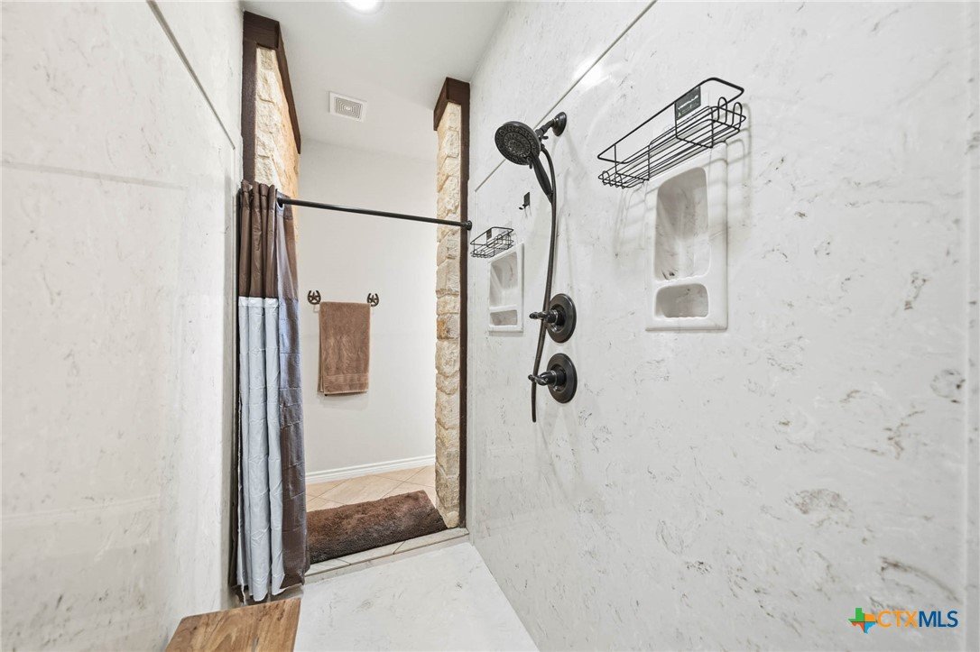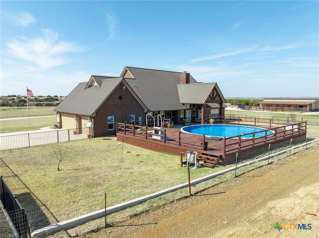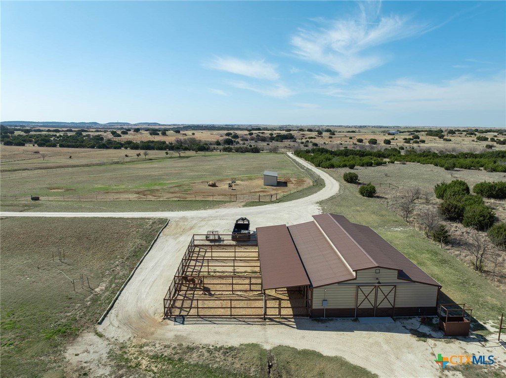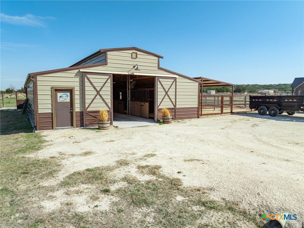 As you pass through the gate, you’re immediately welcomed by well-maintained pastures that reflect the quality of this 18-acre property. This property is cross-fenced with shelters in every pasture. The Texas Hill Country home is perfectly positioned in the center of the acreage, maximizing the usability of the land. The placement of the barns, shop, and facilities gives the property a much larger, open feel with excellent flow and accessibility. This property has fully enclosed main barn with multiple stalls and runs, automatic waterers, built-in feeders, fans, and lights on timers. Ideal for performance horses, breeding or training. Secondary horse barn with stalls with runs. There are multiple locations for an arena. Rocked roads leading to each barn and facility. There is a shop with covered parking for storage of tractors, trailers, hay, and equipment. The property has an in-ground sprinkler system serving the front and backyard landscaping. Also there is a greenhouse. Inside the home, you’re welcomed by vaulted ceilings and a stunning floor-to-ceiling rock fireplace in the main living area. The kitchen has a six-burner stove and a convenient pot filler. The residence is designed for comfort and efficiency with separate heating and cooling systems for upstairs and downstairs and two tankless water heaters to support the demands of a full household or ranch operation. The backyard has a built-in pool, decking, and an outdoor kitchen, all within a securely fenced backyard area. Ideally situated for the performance horse industry, this property offers convenient access to Circle T Arena and is centrally located between Stephenville, Weatherford, Lampasas, and Waco—placing you in the heart of Central Texas horse country with easy access to major events, trainers, and equine services. This is a turn-key, first-class horse property combining elite equine functionality with refined ranch living. A must-see facility for any horse operation or ranch lifestyle buyer.
