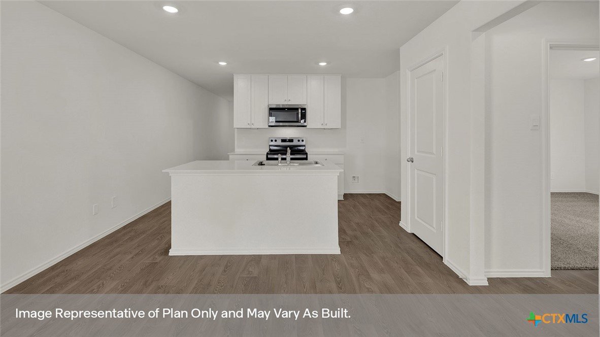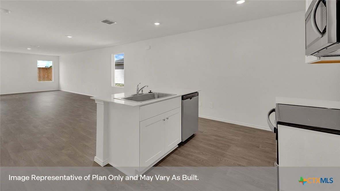 FEBRUARY ESTIMATED COMPLETION. Step inside the Caprock at Sunset Oaks in Maxwell, Texas. This one-story new home offers 3 bedrooms, 2 bathrooms and a 2-car garage across 1,434 square feet of living space. Our homes in Sunset Oaks feature our modern farmhouse. From the front porch, step inside the home and cross through the foyer and hallway. The utility room is off the foyer and connects to the garage, making it a perfect mud room. The heart of the home is the open concept living space. The kitchen, dining and family room flow seamlessly into the other, making this space perfect for creating lasting memories. The kitchen features an island with a stainless-steel sink, quartz countertops, 42’ upper ‘picture frame’ cabinets, a pantry closet, and stainless-steel appliances, including a gas range. The primary bedroom is located at the back of the home. Unwind at the end of your day in this private ensuite. The attached bathroom includes a walk-in shower, cultured marble vanity with trench sink and a walk-in closet. The secondary bedrooms and bathroom are located off the kitchen. The bedrooms include carpet and closets with wood shelving. The secondary bathroom has a shower/tub combination and a cultured marble vanity with trench sink. This home features our America’s Smart Home base package, which includes the Video Front Doorbell, Front Door Deadbolt Lock, Home Hub, Thermostat, and Deako® Smart Switches.