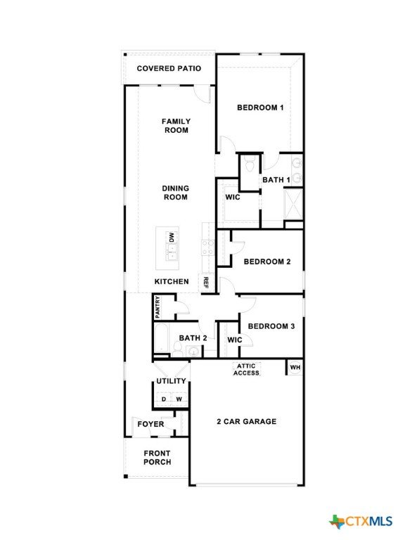 MOVE IN READY! INCLUDE WASHER/DRYER, BLINDS, GARAGE DOOR OPENER AND REFRIGERATOR IN ADDITION TO STANDARD APPLIANCE PACKAGE. The Caroline floorplan, one of our one story new homes available at Bollinger. This 3 bedroom, 2 bathroom home includes a 2 car garage all within 1,488 square feet of comfortable living space. From the covered front porch, step inside the home and cross through the foyer and long hallway. The utility room is tucked away off the hall and connects to the garage, making it a perfect mud room. The heart of the home is the open concept living space. The kitchen, dining and family room flow seamlessly into the other, making this space perfect for creating lasting memories. The kitchen features an island with undermount sink, granite countertops, decorative granite backsplash, a pantry closet, 36” upper cabinets, and stainless-steel appliances, including a gas range. Enjoy the natural light from the side and rear windows plus the 8’ to 9’ sloped ceilings in this comfortable space. The primary bedroom is located off the family room and includes an attached bathroom. Start your mornings off right in the private space that includes a walk-in shower, cultured marble vanity with dual sinks, private door to the toilet area and walk-in closet. The secondary bedrooms and bathroom are tucked away off the kitchen. Each secondary bedroom includes a closet with shelving and the hall bathroom includes a shower/tub combination. The Caroline includes vinyl flooring throughout the common areas of the home, and carpet in the bedrooms. A covered back patio is also included in the Caroline plan. All our new homes feature Bermuda sod, an irrigation system in the front and back yard, and a 6’ privacy fence around the back yard. This home comes with our America’s Smart Home base package, which includes the Amazon Echo Pop, Front Doorbell, Front Door Deadbolt Lock, Home Hub, Thermostat, and Deako® Smart Switches