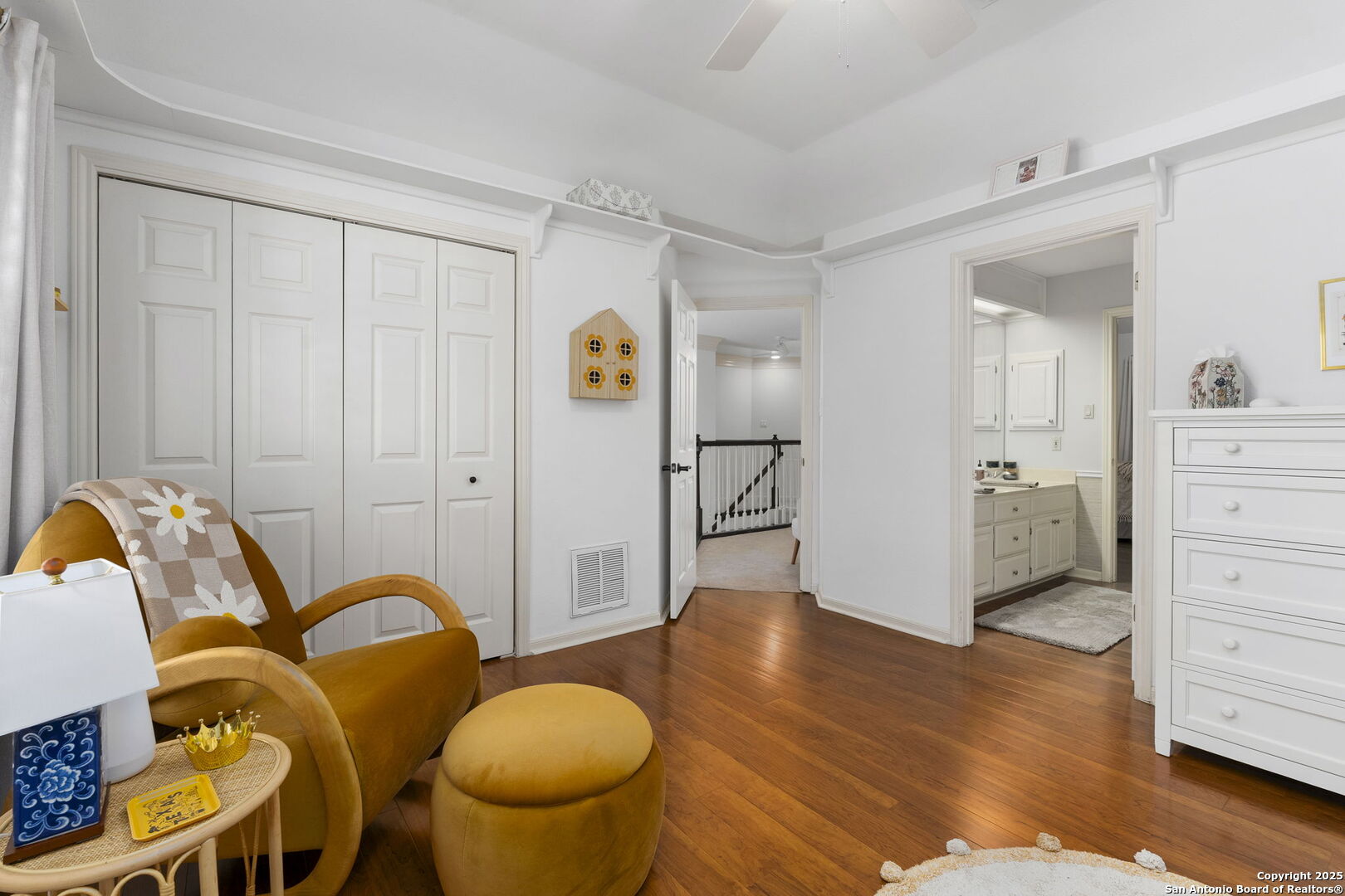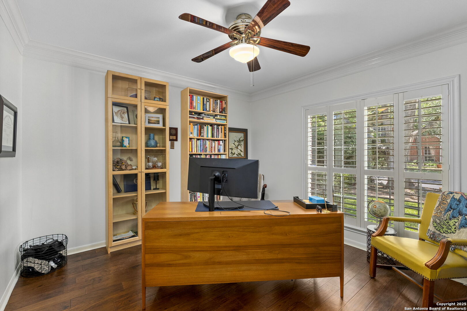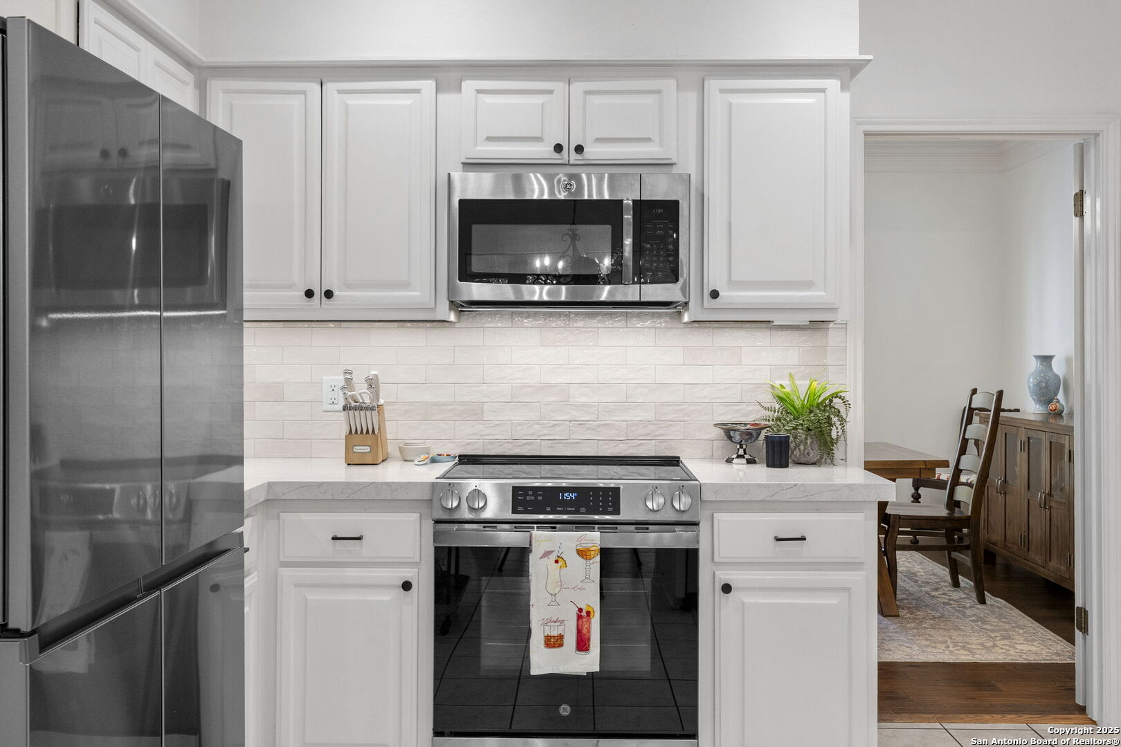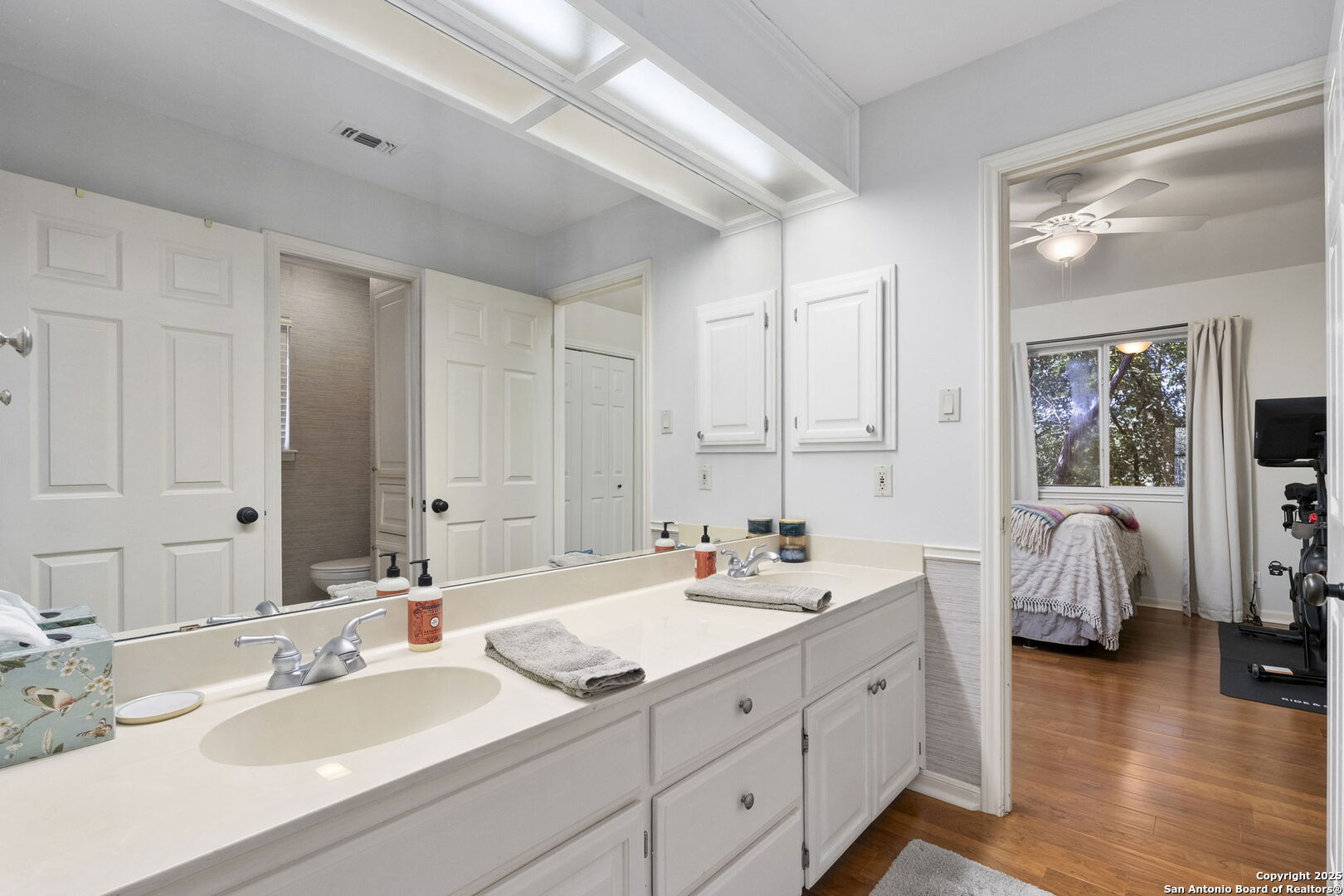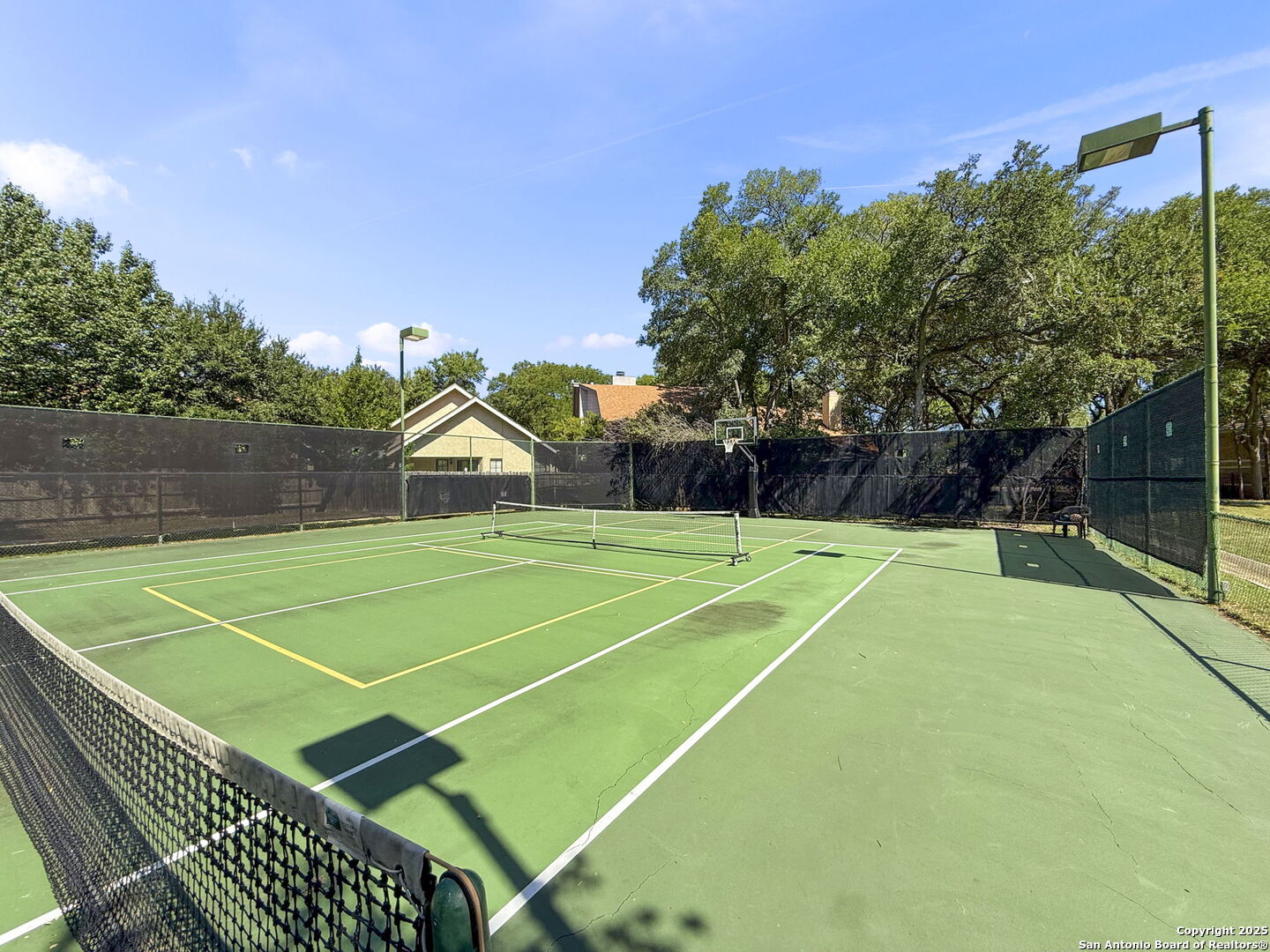 Tucked within the quiet, gated community of Racquet Club at Camino Real, this Don Craighead custom home blends refined design with a serene lifestyle. Backing to a lush greenbelt with direct access to walking trails and just moments from SilverHorn Golf Course, this 3-bedroom, 2.5-bathroom residence offers privacy, comfort, and convenience. Thoughtful upgrades throughout include a fully renovated kitchen with stylish finishes and a stunning custom front door that makes a lasting first impression. The spacious living area flows seamlessly into dining spaces designed for both entertaining and everyday ease. A dedicated study offers privacy and focus-ideal for anyone working from home. A cozy fireplace in the primary suite adds warmth and charm, while the spa-like en suite bathroom features a walk-in closet, dual vanities, and a relaxing jacuzzi tub and shower combo. Outside your doorstep, the community shines with amenities. Enjoy access to a fully equipped clubhouse with a modern kitchen, outdoor grills, a year-round pool and hot tub, and courts for tennis, basketball, and pickleball. From peaceful mornings on the back patio to social evenings at the clubhouse, this home offers a lifestyle of leisure and elegance in one of San Antonio's most desirable communities.Conveniently located near Loop 1604, I-10, Loop 410, and Hwy 281-yet tucked away from the noise. Schedule your private tour today, Its a must see!!