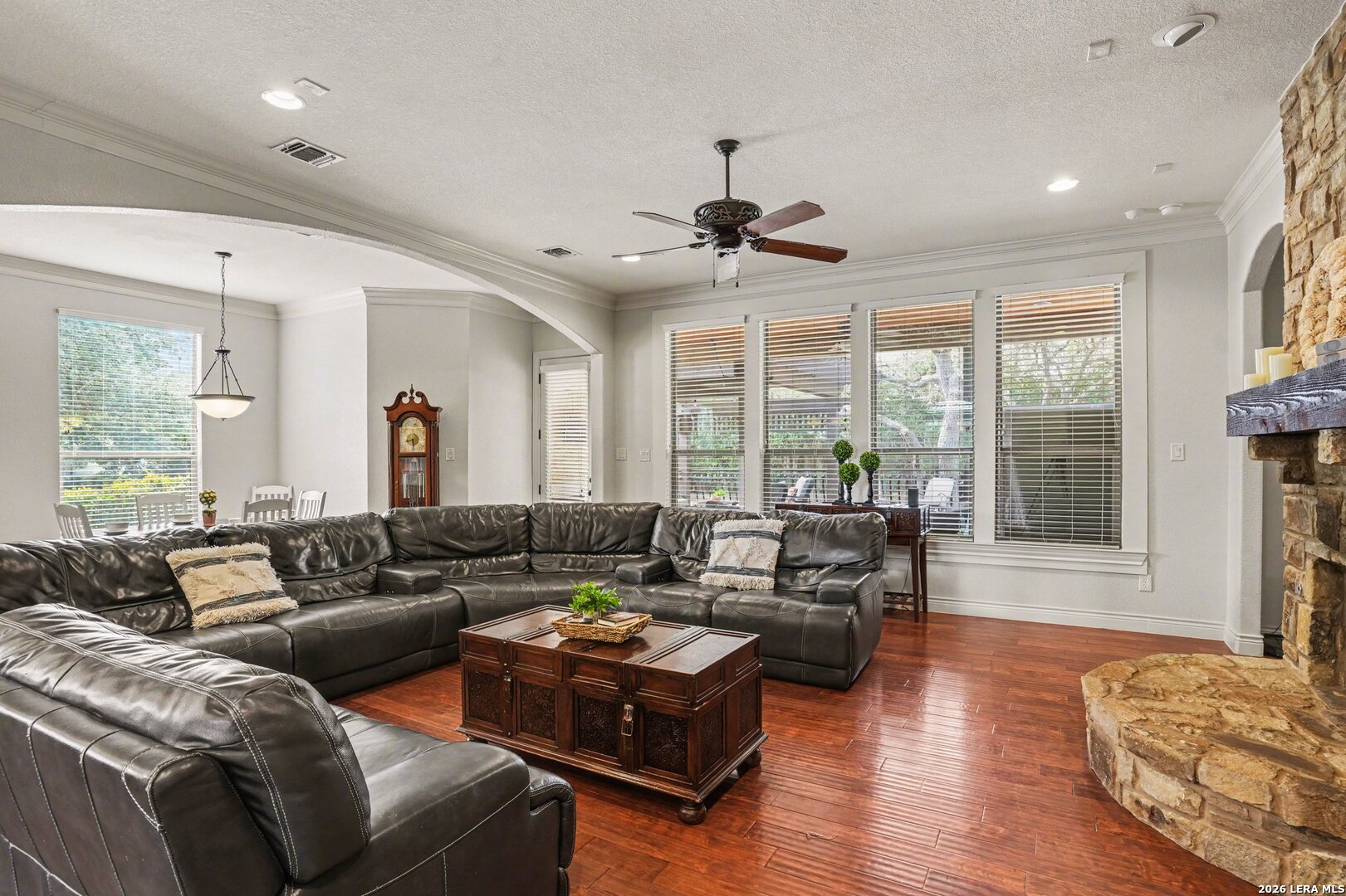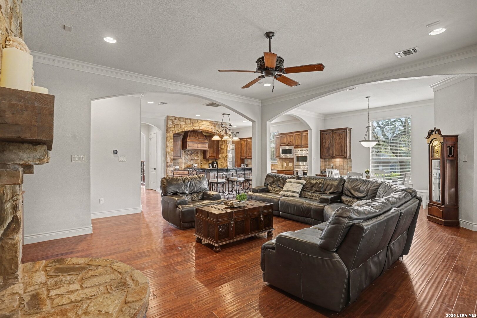 Priced to Sell - Exceptional Value in a Gated Community Now priced aggressively for immediate interest, this expansive 5-bedroom, 6-bath home offers nearly 4,700 square feet of flexible living space in a quiet, gated Stone Oak community. A dramatic foyer and sweeping staircase welcome you into a bright, open layout designed for both everyday living and entertaining. The home features multiple living areas, a large upstairs game room with pool table, a dedicated media room, and additional study/workspace areas ideal for today's hybrid lifestyle. The kitchen serves as the heart of the home with gas cooking, built-in stainless appliances, an oversized island, and a butler's pantry-perfect for gatherings large or small. Generous storage throughout and a 3-car garage add everyday practicality. The spacious primary suite offers a private retreat, while secondary bedrooms are thoughtfully positioned with convenient bath access, making the layout ideal for larger households or guests. Outdoor spaces provide room to relax, entertain, or customize to your vision. Exceptional square footage, gated community living, and a recent price improvement make this one of the best values in the area. Homes of this size and flexibility are rarely available at this price point. Easy to show with short notice. Bring all offers.