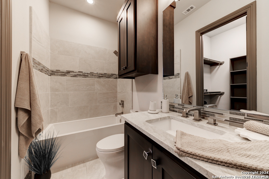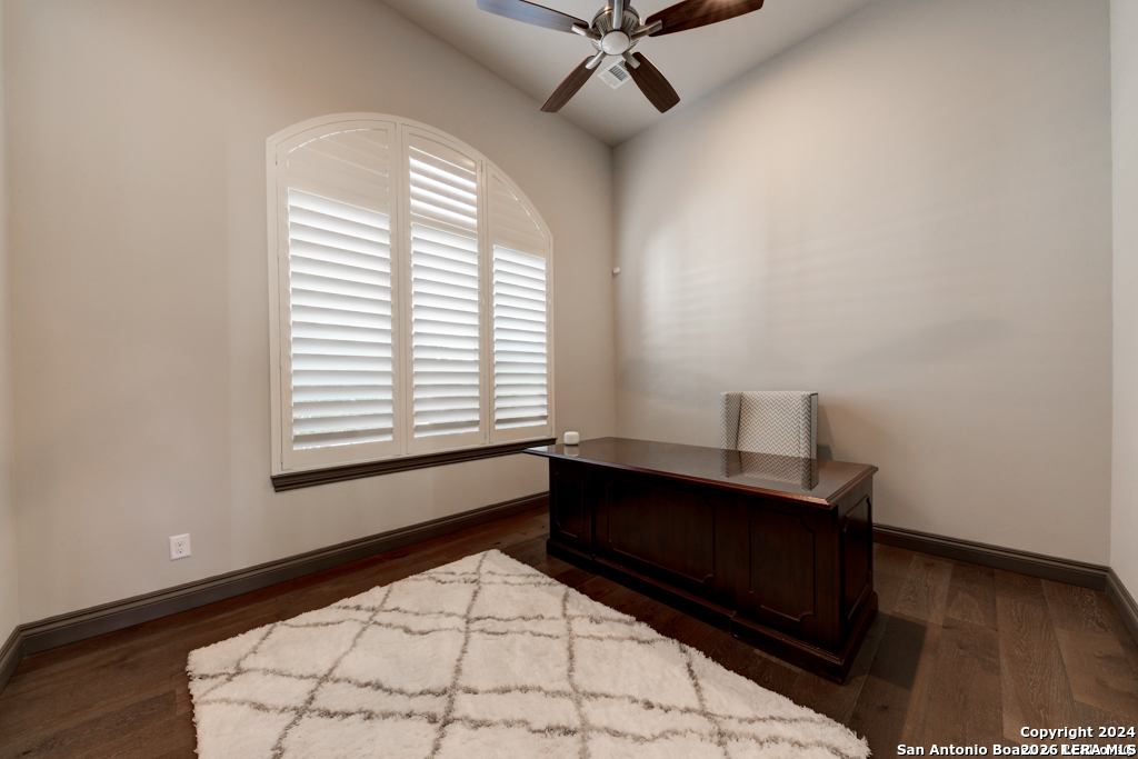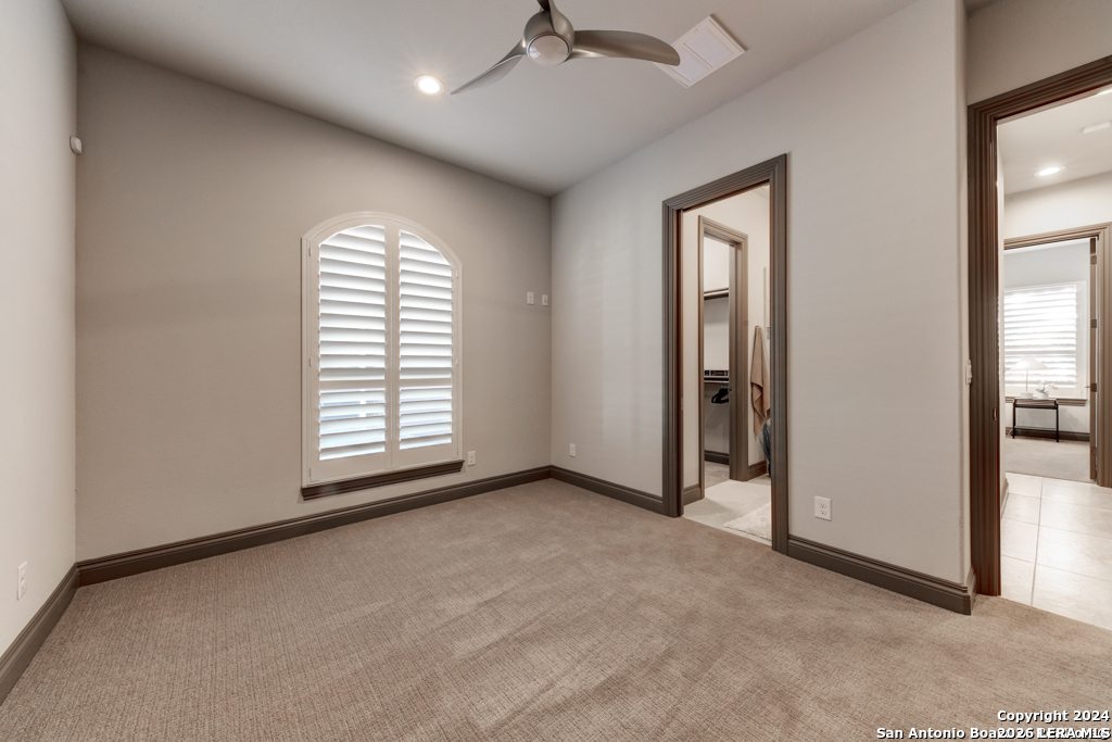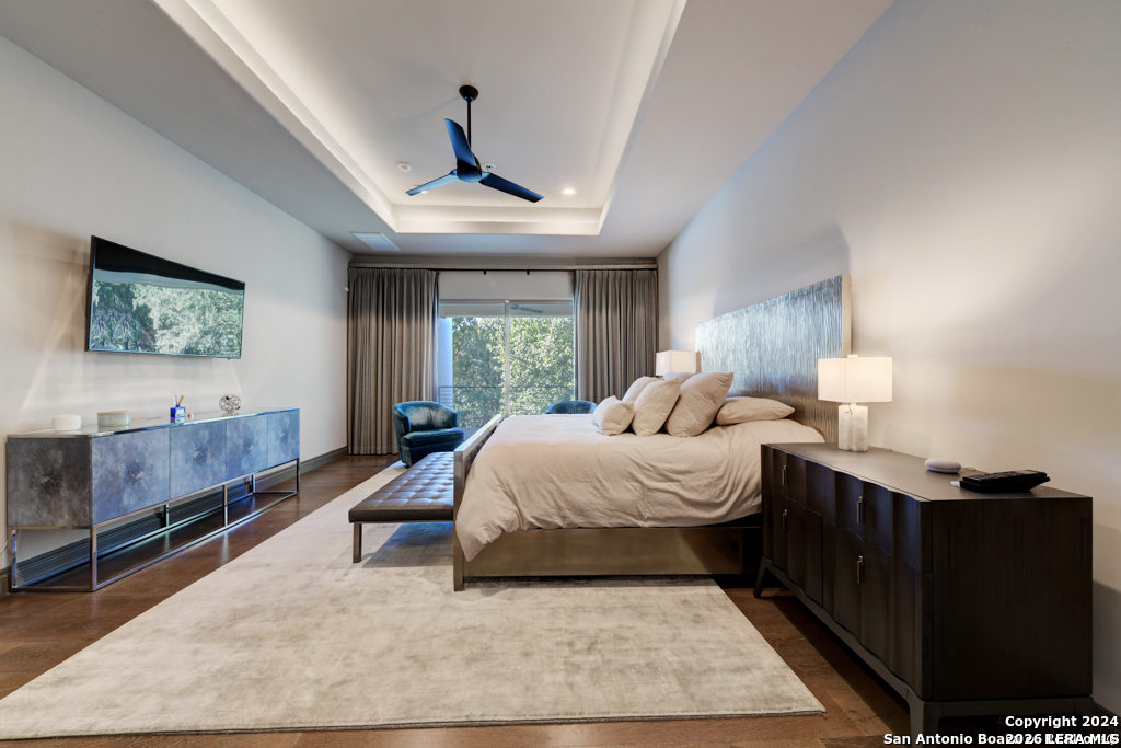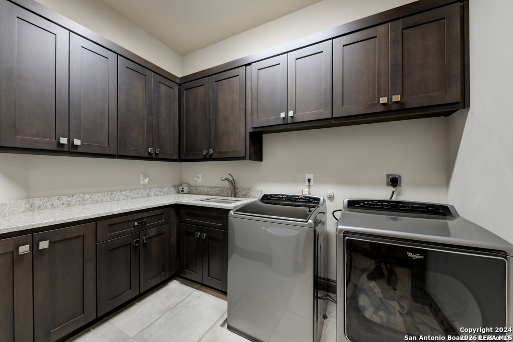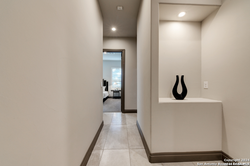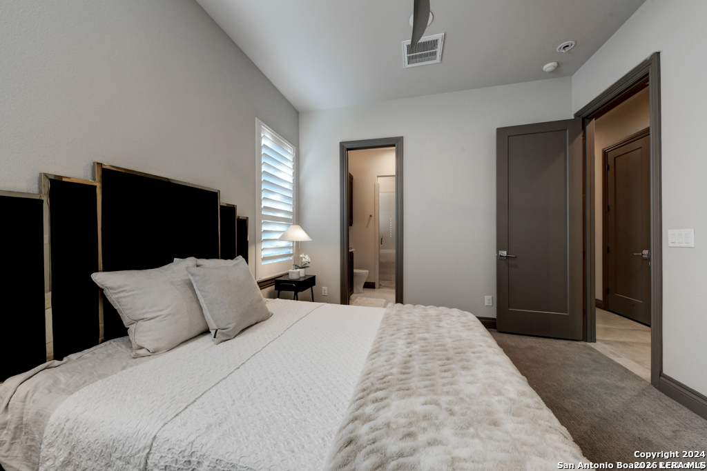 Discover unparalleled elegance in this sprawling one-story modern Mediterranean estate! This home redefines luxury living, featuring four bedrooms, 4.5 baths, a private office, a state-of-the-art theater, and a personal gym/bonus room off the primary suite. The meticulously designed open floor plan is perfect for entertaining, with two opposing garages offering parking for three vehicles. The exquisite chef's kitchen flows seamlessly into the living and dining areas, showcasing stunning architectural details and high-end finishes. Flow effortlessly into your own secluded outdoor oasis on an expansive greenbelt lot. The extended outdoor living space includes a large, covered patio, a fully equipped outdoor kitchen with a gas grill and fridge, plus an infinity-edge pool with spa--all surrounded by lush, newly updated landscaping. Professionally designed and recently refreshed with a freshly painted exterior, this home is move-in ready. Furnishings are negotiable, making this a turnkey luxury experience. Don't miss this rare opportunity to own a masterpiece in one of San Antonio's most exclusive communities.