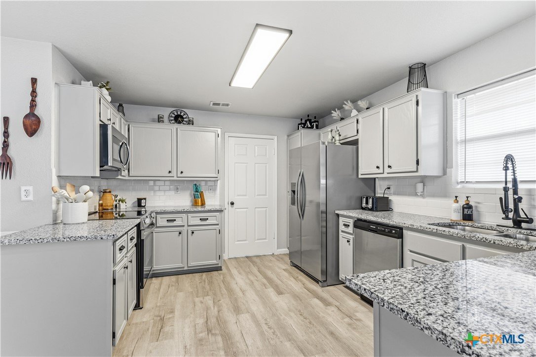 Comfort meets cozy in this beautifully updated home that’s truly move-in ready. Major systems have already been handled, with a new HVAC, roof, and water heater all replaced within the last year—so yes, you can breathe easy. The main living areas feature durable LVP flooring, offering both style and low-maintenance living. The kitchen is designed to impress with stainless steel appliances, granite countertops, and generous counter space, making it perfect for everyday living or entertaining. The spacious primary suite includes a well-appointed bathroom with dual sinks, two closets, and an updated shower, providing both function and comfort. Step outside to a backyard that offers additional storage with a four-sided brick storage shed, blending durability with curb appeal. This home has been thoughtfully updated in all the right places—no guesswork, no “honey-do” list. Just unpack and enjoy! Call today for a private showing!