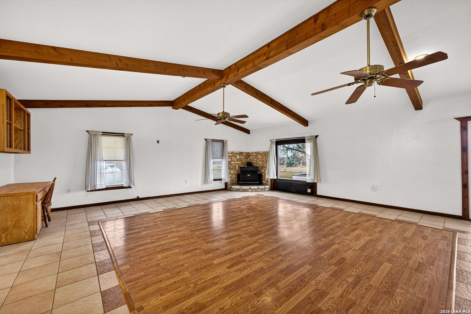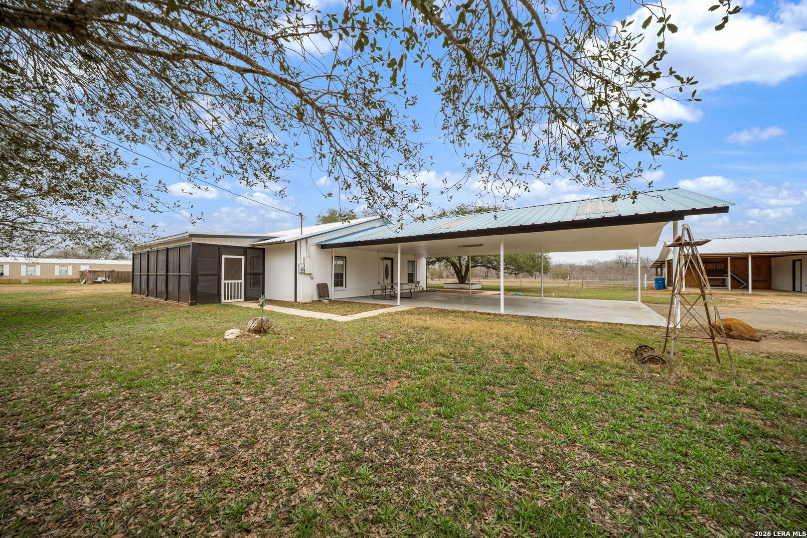 Situated just on the edge of town this 4.13 acres homestead combines country living with the convenience of nearby amenities. The 1,728 sq ft home features 1 bedroom and 1 bathroom with generous living spaces and flexible layout potential. Inside, you'll find a large open living room with an oak built-in desk and a striking rock corner wood-burning stove (not currently hooked up). The spacious kitchen includes a gas range and ample room for dining and gathering. The oversized corner bedroom offers the potential to be divided into two bedrooms if desired. The bathroom features dual sinks, bull nose tile countertops, and a tub/shower combination. A large utility room provides additional storage and functionality. Outside, is a screened porch for enjoying the day and the yard is shaded by mature live oak trees. Improvements include a detached two-car carport with workshop space including wooden workbench and built-in shelving, as well as small covered livestock pens - ideal for hobby farming or 4-H projects. With acreage, versatility, and room to grow, this property offers endless possibilities.