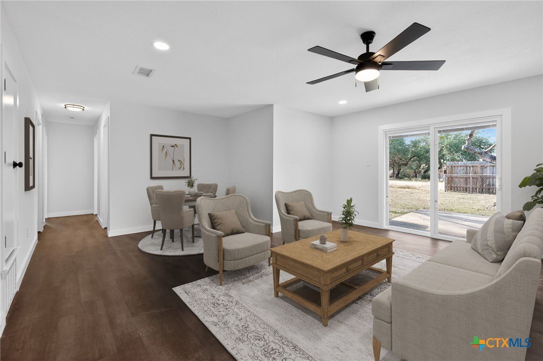 Set in a sought-after neighborhood surrounded by Stillhouse Hollow, this home offers quiet streets, evening walks, and a true sense of place, while still staying close to everyday conveniences. Inside, the living space feels bright and comfortable, designed for how people actually live. The main living area flows easily into the kitchen and dining space, creating a natural hub for daily routines and casual gatherings. Down the hall, the home opens into well-sized bedrooms that feel calm and private. The bathrooms are thoughtfully updated with a modern look and feel, including a walk-in shower in the master bathroom. Combined with the surrounding lake-area atmosphere and established neighborhood appeal, it’s an ideal option for buyers looking for a move-in-ready home in a setting that’s hard to replicate. Located a convenient 20 minute drive from the Copeland Center on Fort Hood, or 31 minutes from Baylor Scott and White in Temple.