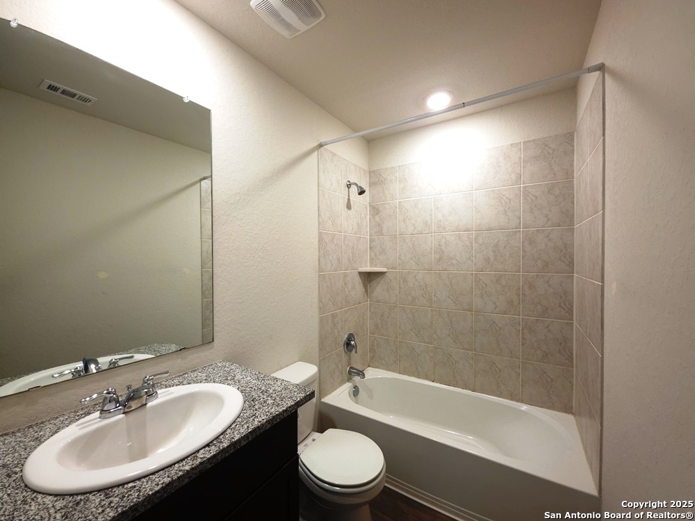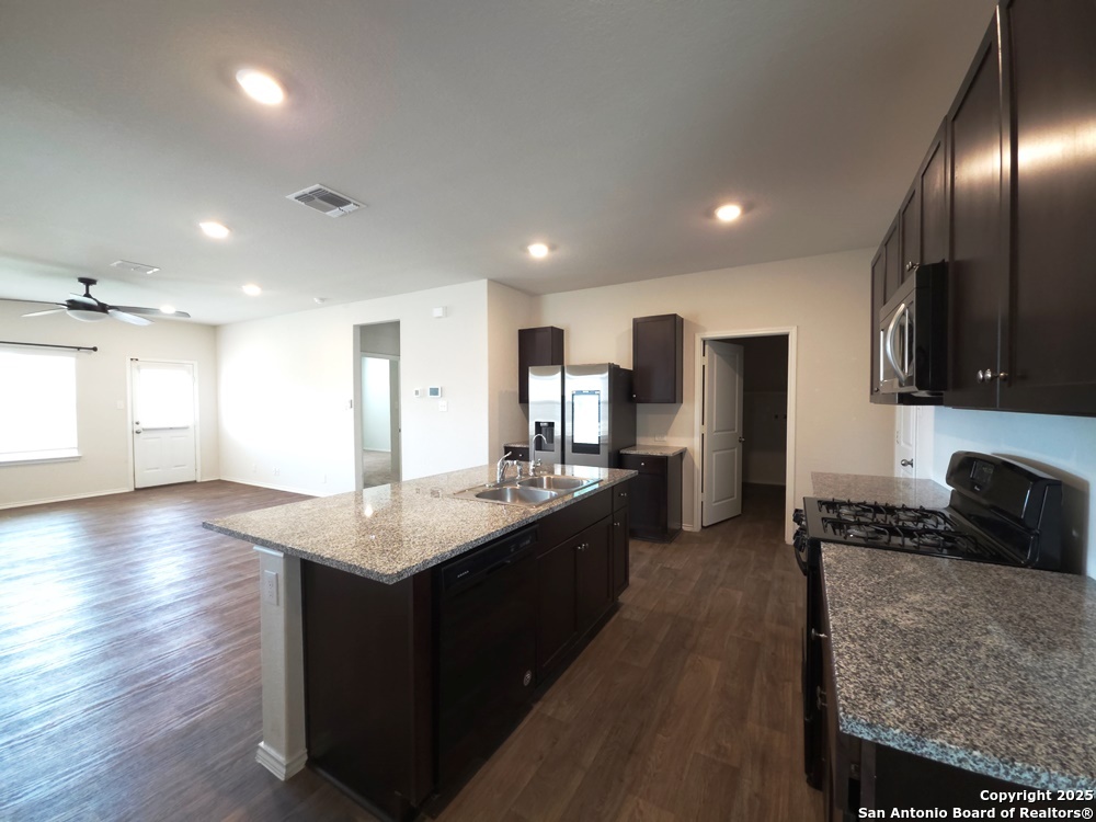 Welcome to Cobalt Canyon! This two-story home features 3 bedrooms, 2.5 baths, and 2-car garage located near I-10 and FM 1518. The entry leads to a powder room before flowing through an open concept floor plan with the kitchen opening to the dining and family rooms. The gourmet kitchen includes granite counter tops and appliances. An oversize utility room is located off the kitchen. The downstairs primary bedroom features an attractive ensuite with grand walk-in shower, a large walk-in closet, and plenty of storage space. The second story features a versatile upstairs loft that can be used as a family room, secondary bedrooms, and a second full bathroom. Enjoy the rear covered patio located off the downstairs family room. Additional features include vinyl flooring in entry, living room, and all wet areas, granite countertops in all bathrooms, and full yard landscaping and irrigation. This home includes select Internet-connectable devices which include the Front Doorbell, Front Door Deadbolt Lock, and Thermostat. Here you will find new construction homes designed for suburban living with city conveniences, located near I-10 and FM 1518. Additional features include granite kitchen countertops, Stainless Steel appliances, 2-car garages and much more! Military families will enjoy a short commute from Randolph Air Force Base, Fort Sam Houston and the Brooke Army Medical Center (BAMC) -- East Central ISD schools, and commuter friendly access to major thoroughfares leading to Seguin, San Antonio, and Austin. Schedule your showing appointment today!