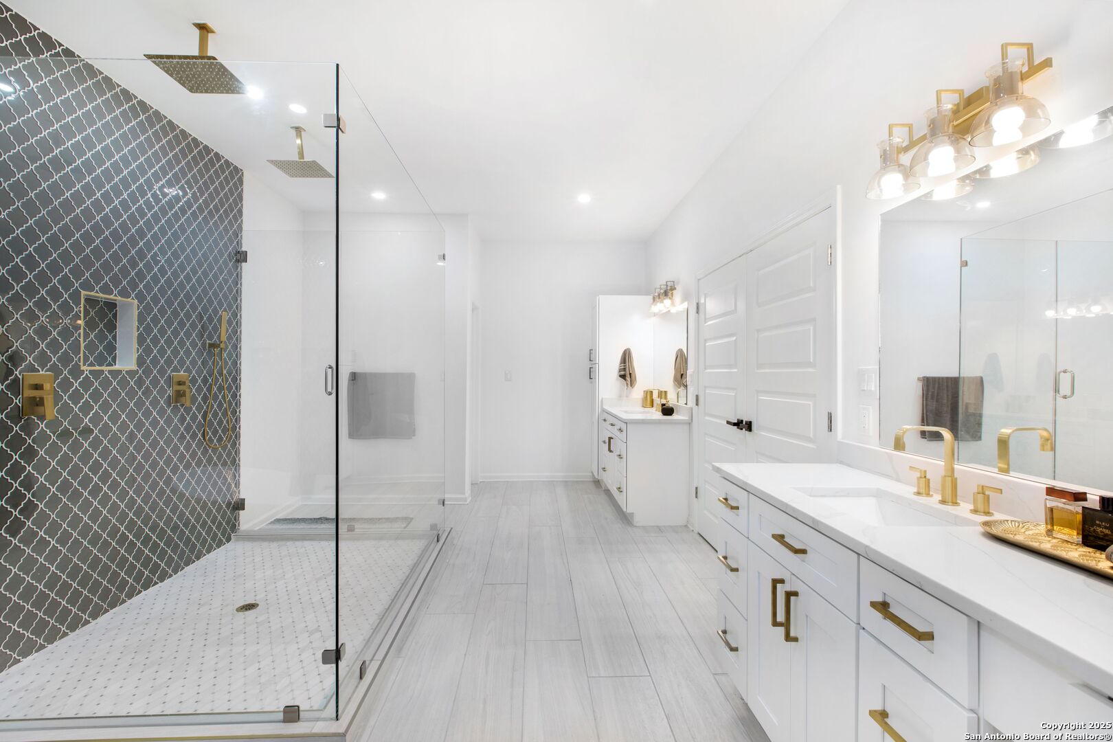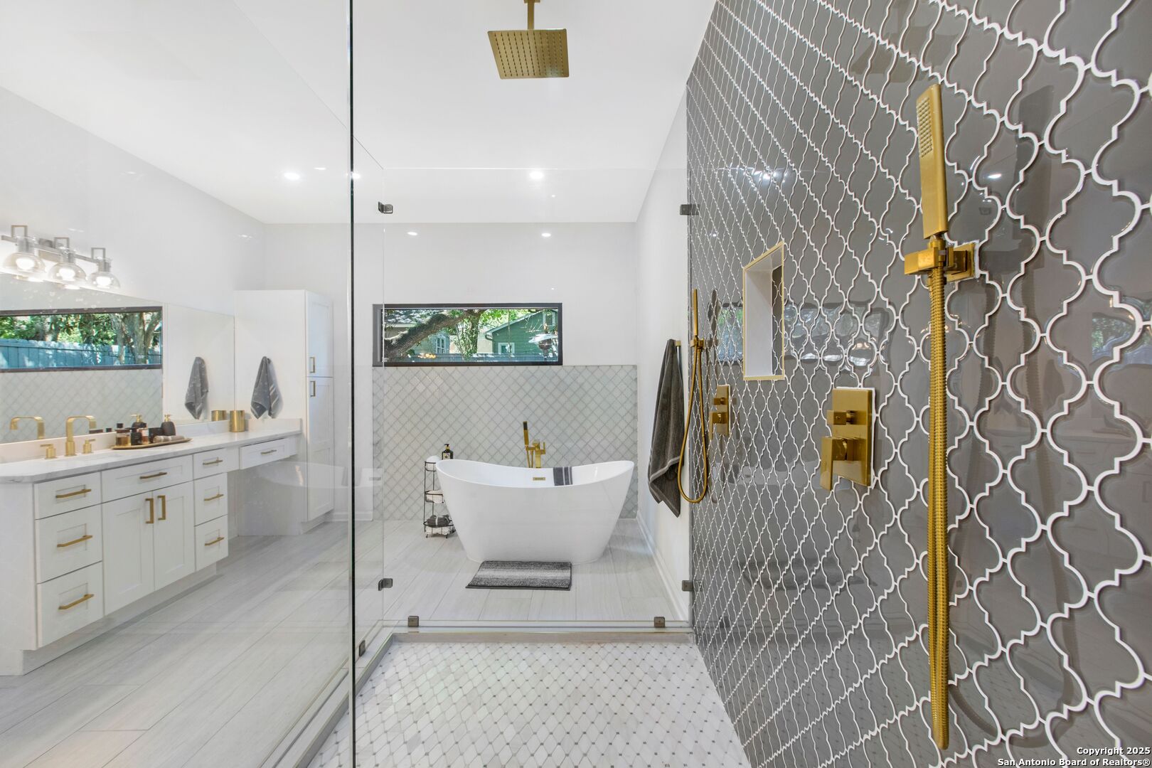 Live the coveted Alamo Heights lifestyle in this exquisitely renovated 4-Bedroom, 3-Bathroom Home with a Two-Car Garage home, where timeless charm meets contemporary elegance. Nestled in one of San Antonio's most prestigious neighborhoods, this residence offers an unparalleled blend of style, comfort, and functionality. Step inside to discover a sunlit interior adorned with level-five finishes, sleek porcelain tile, and Calacatta white quartz countertops that exude sophistication. The striking facade, featuring floor-to-ceiling windows, floods the home with natural light, while the open-concept kitchen is a chef's dream-complete with custom soft-close cabinets, top-tier KitchenAid appliances, a 5-burner gas stove, a wine fridge, and ambient lighting. Whether hosting gatherings or enjoying daily meals, this space is as functional as it is beautiful. A versatile bonus area between the living and dining rooms is perfect as a home office, reading nook, or cozy lounge-tailored to fit your lifestyle.. The primary suite is a true sanctuary, showcasing preserved white oak floors, a custom walk-in closet, and a spa-like bathroom with dual rain showers, a soaking tub, and brass-accented details for a touch of opulence. Tucked away in a private wing, the secondary bedrooms offer seclusion-perfect for guests, family, or multi-generational living. One bedroom features an en-suite bathroom, ensuring comfort and convenience. Step outside to a serene backyard retreat, complete with a lush green space, a 12x12 slab for entertaining, and thoughtful landscaping designed for privacy. Practical upgrades like a protective wall and French drain ensure peace of mind during rainy seasons. The fully finished garage conversion includes built-in storage and floodlights, adding both utility and security. This is more than just a house-it's a lifestyle. From its prime Alamo Heights location to its impeccable design, every detail has been crafted for discerning buyers. Pets negotiable. Schedule a private tour today and experience this masterpiece in person!