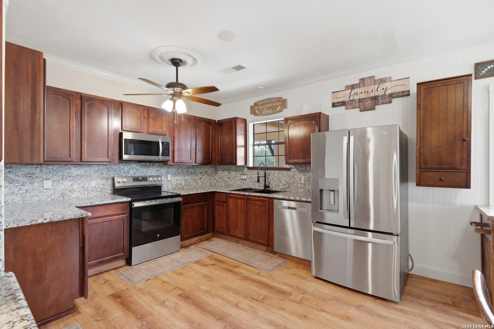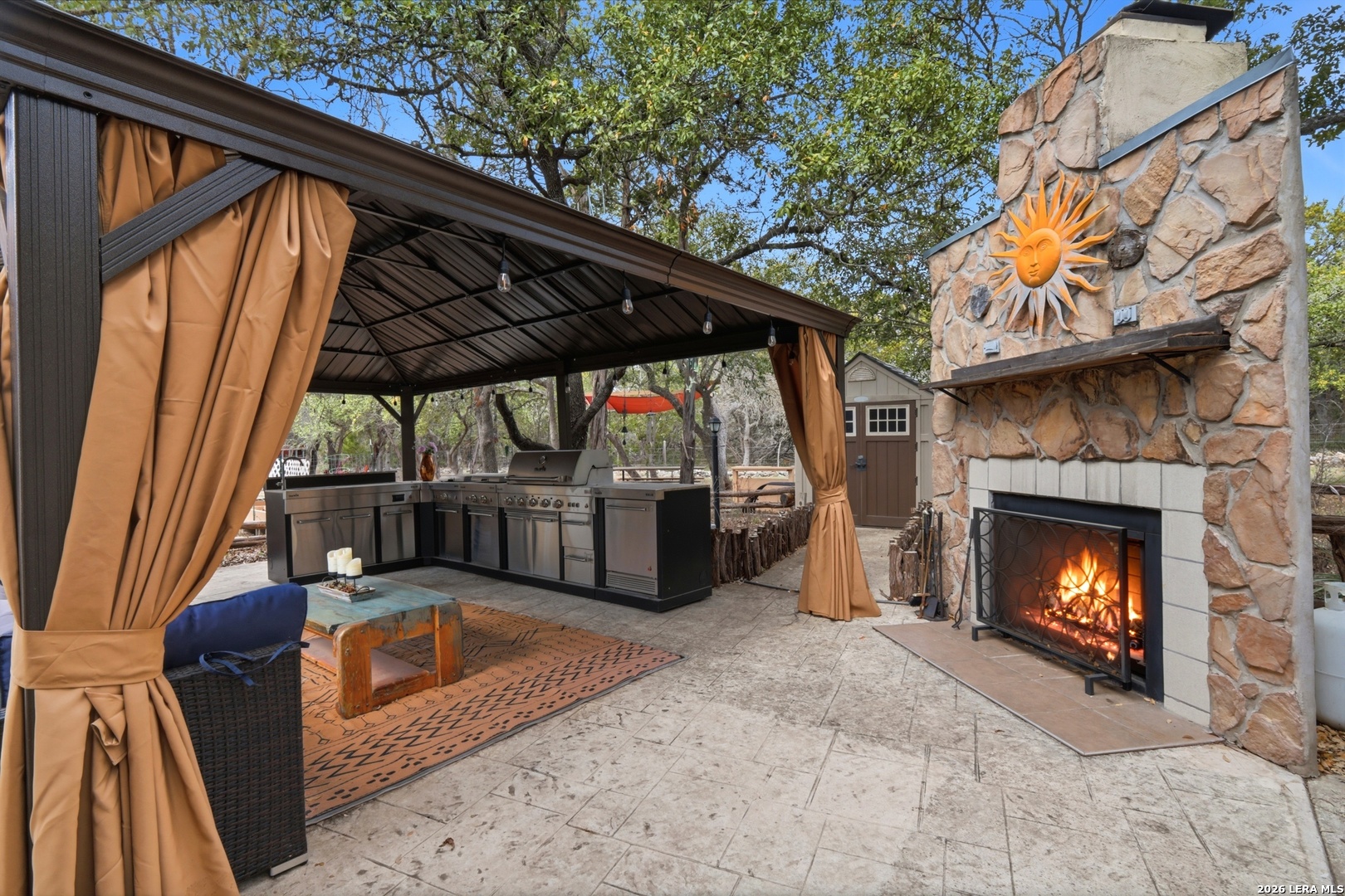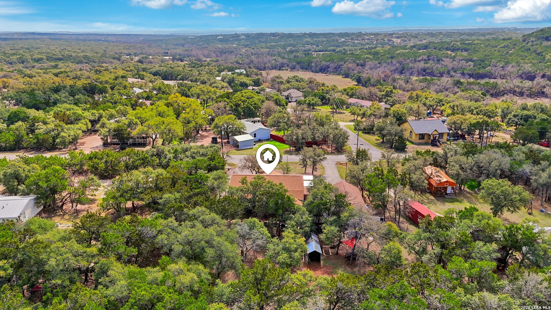 Nestled in the heart of the Texas Hill Country, this charming oasis sits on a spacious .57-acre lot designed for both relaxation and entertaining. A welcoming wraparound porch sets the tone for peaceful mornings and scenic evenings, while the outdoor living spaces truly shine - featuring a fully equipped outdoor kitchen, private hot tub, garden area, and an expansive backyard perfect for gatherings, games, and memorable nights under the stars. Inside, this 1.5-story home offers a flexible and inviting layout with 3 bedrooms and 3 full baths. The massive upstairs suite includes a private bath and kitchenette, making it ideal for guests, multi-generational living, a caretaker's quarters, or even a game room or man cave. Recent upgrades provide modern comfort and style, including all-new appliances, granite countertops, new carpet, and updated flooring throughout. A detached two-car garage with an oversized workshop space adds exceptional functionality for hobbies, storage, or projects. This property blends Hill Country charm, thoughtful updates, and versatile living spaces - creating the perfect retreat to make home!