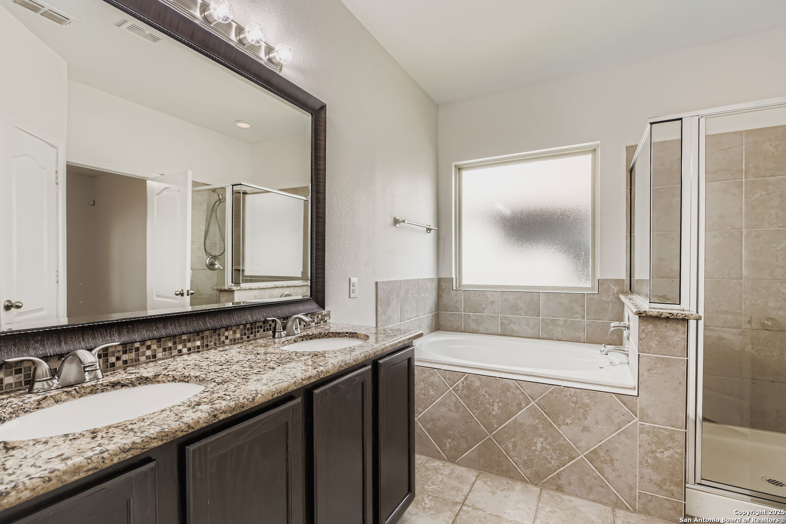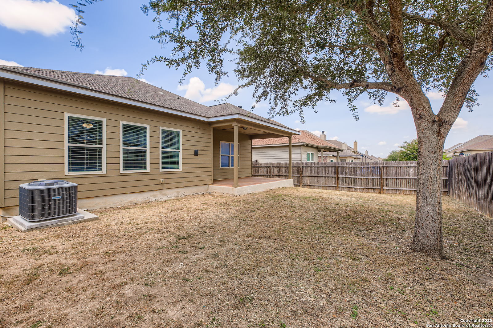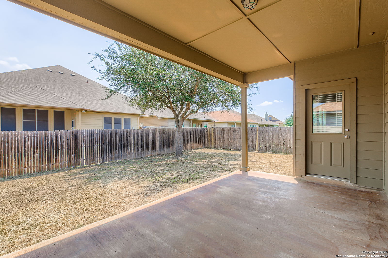 Stunning single-story home in the heart of Cibolo that I believe you'll be excited to see! This well-maintained property features neutral colors, tile floors in wet and common areas and impressive 10-foot ceilings.The home offers a formal dining room that can easily serve as an office or playroom, granite countertops, a breakfast bar, a flat-top stove, microwave, and dishwasher. The spacious living room is complete with a cozy wood-burning fireplace. The master bedroom boasts a large walk-in closet and a master bath with a separate shower, garden tub, and dual sinks. Outside, you'll find a covered patio with a fenced yard. The community amenities include a pool, playground, and basketball court. The location is incredibly convenient, with easy access to Randolph, 1604, I-35, schools, parks, shopping, and dining.