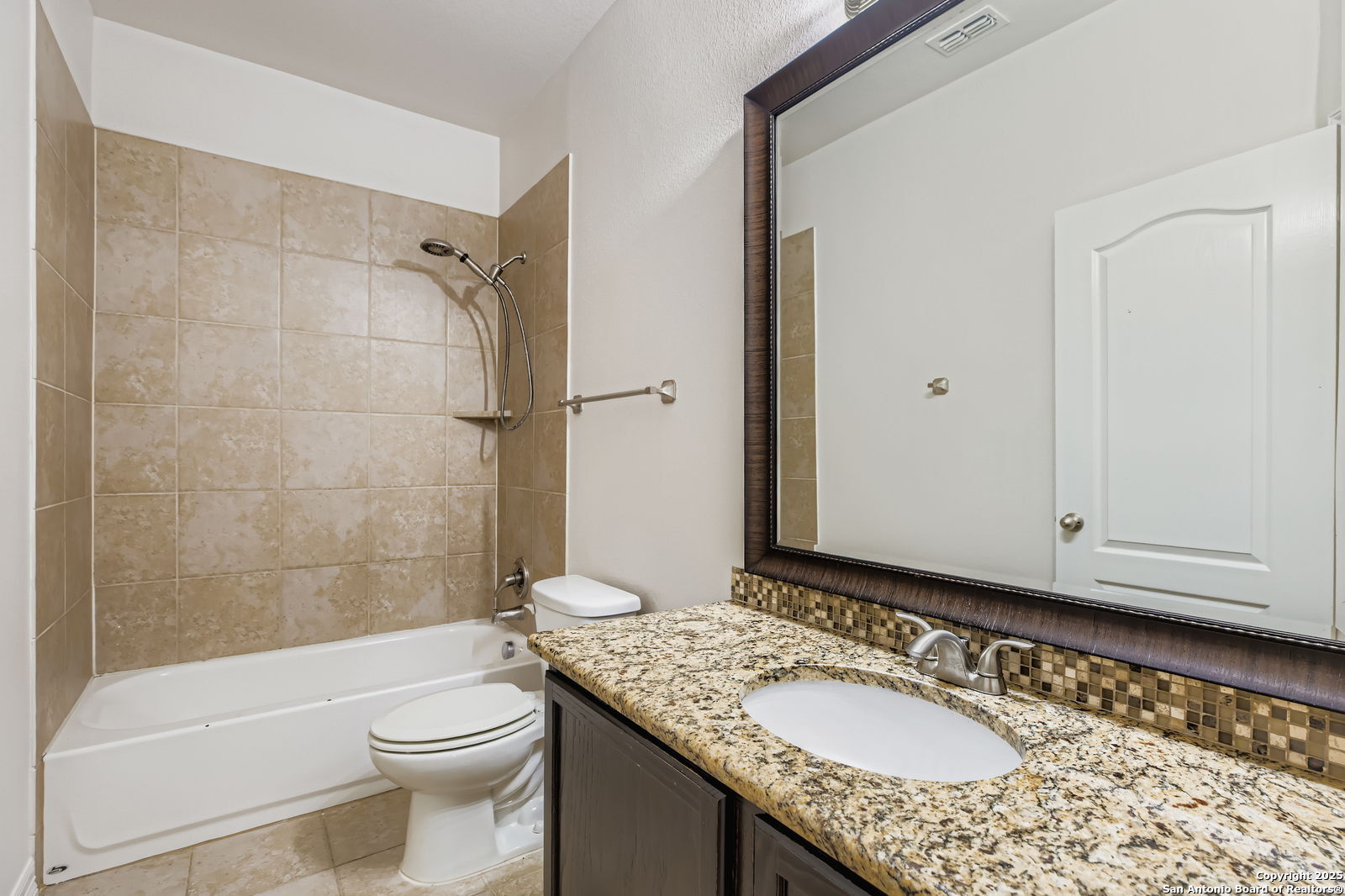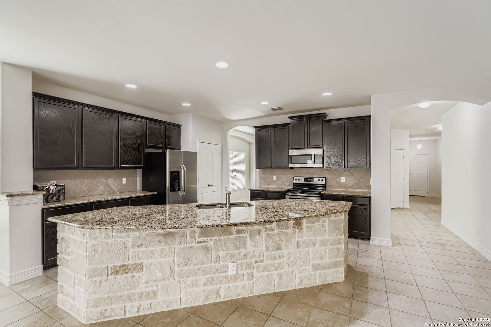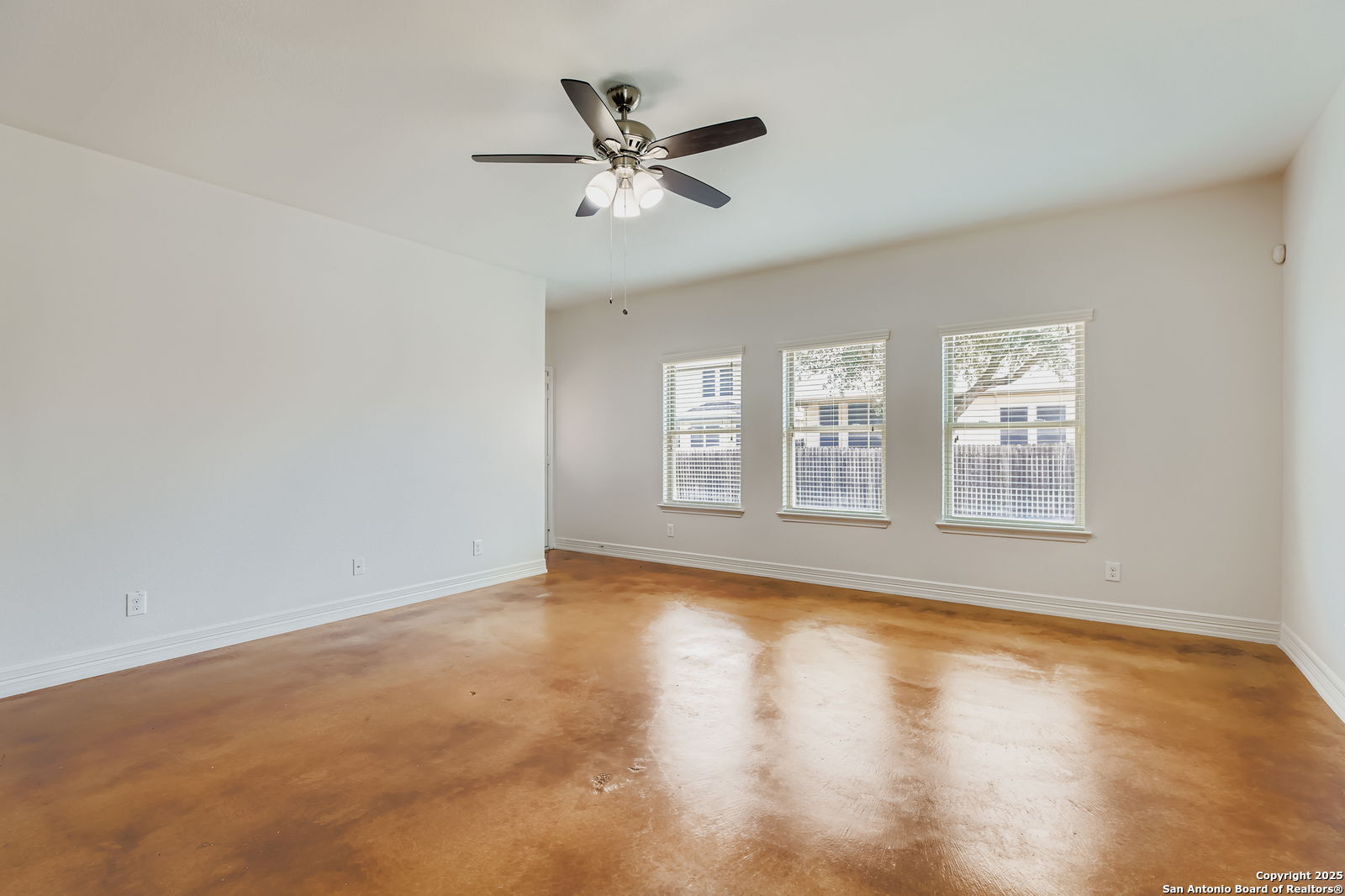 Stunning single-story home in the heart of Cibolo that I believe you'll be excited to see! This well-maintained property features neutral colors, tile floors in wet and common areas and impressive 10-foot ceilings.The home offers a formal dining room that can easily serve as an office or playroom, granite countertops, a breakfast bar, a flat-top stove, microwave, and dishwasher. The spacious living room is complete with a cozy wood-burning fireplace. The master bedroom boasts a large walk-in closet and a master bath with a separate shower, garden tub, and dual sinks. Outside, you'll find a covered patio with a fenced yard. The community amenities include a pool, playground, and basketball court. The location is incredibly convenient, with easy access to Randolph, 1604, I-35, schools, parks, shopping, and dining.
