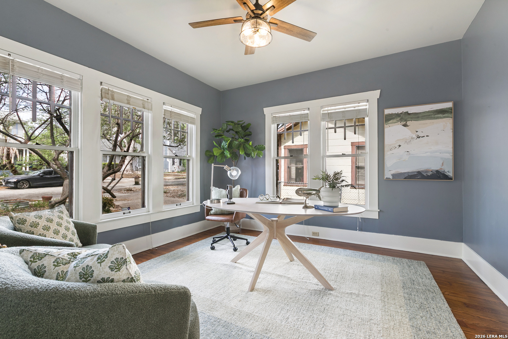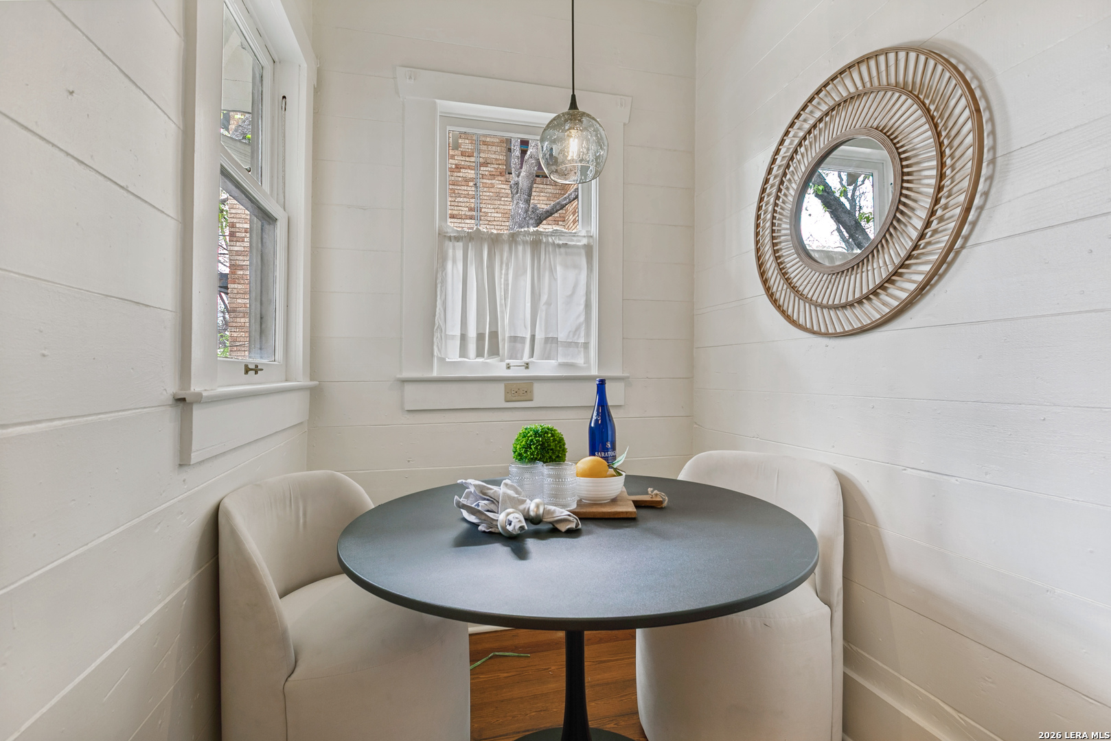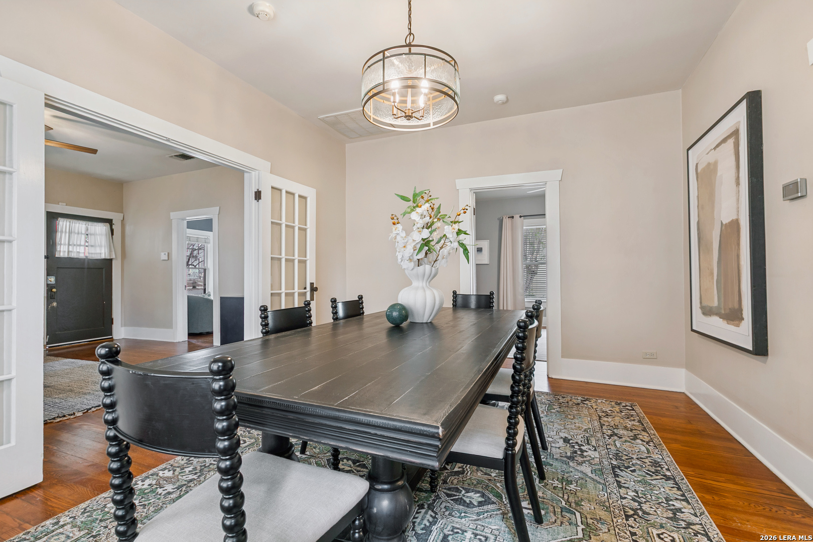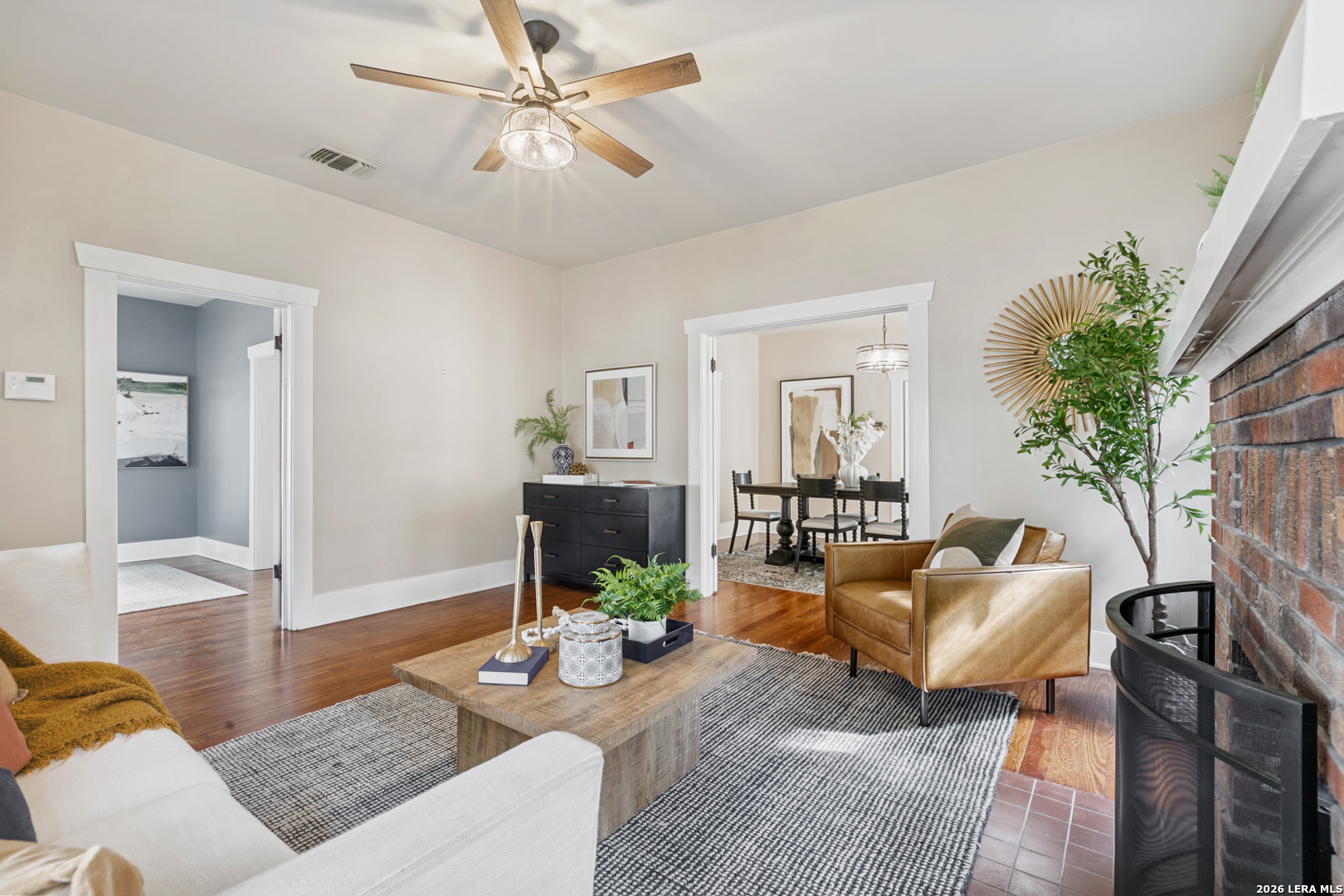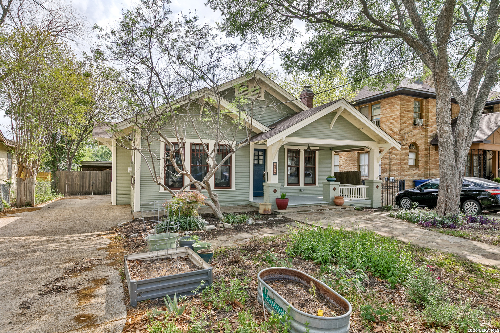 This 1920s Craftsman bungalow in Alta Vista is effortlessly cool in all the right ways, starting with its iconic three-gable facade, original gable braces, and a front porch that practically begs for slow mornings and evening wine. It's the kind of house people notice. Inside, the vibe only gets better. Original wood floors, a cozy gas fireplace, antique hardware, and natural light pouring in from every angle-it all just works. The formal dining room, framed by classic French doors, feels equal parts timeless and intimate-perfect for dinner parties that turn into late nights. The kitchen leans into that collected-over-time aesthetic with custom cabinetry, stainless appliances, exposed shiplap walls, and a breakfast nook that's as ideal for morning coffee as it is for a work-from-home setup you'll actually enjoy. And then there's the layout-unexpected in the best way. Two living areas (including a massive second living space with its own half bath) give you options. Whether you want a media room, creative space, or a setup that works for multigenerational living, this home flexes to fit your life without losing its charm. Step outside and it keeps delivering. A screened-in back porch, mature trees, native landscaping-every space feels intentional but relaxed. There's even a carport with attached storage to keep things practical. And the location? It's one of those "leave your car at home" kind of spots. Walk to neighborhood favorites like Bright Coffee, Copper Rose Wine, and Outlaw Kitchens, or head over to San Pedro Springs Park for some fresh air. You're also just minutes from downtown, the Pearl, the Quarry, and basically anywhere you need to be.