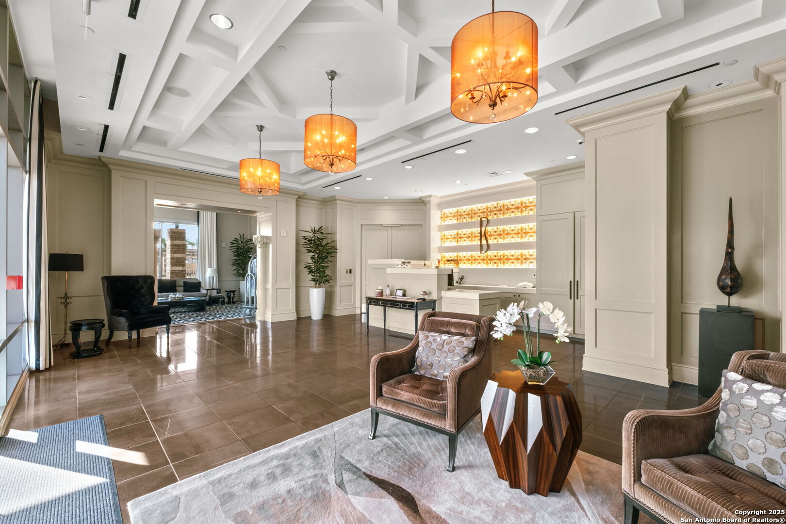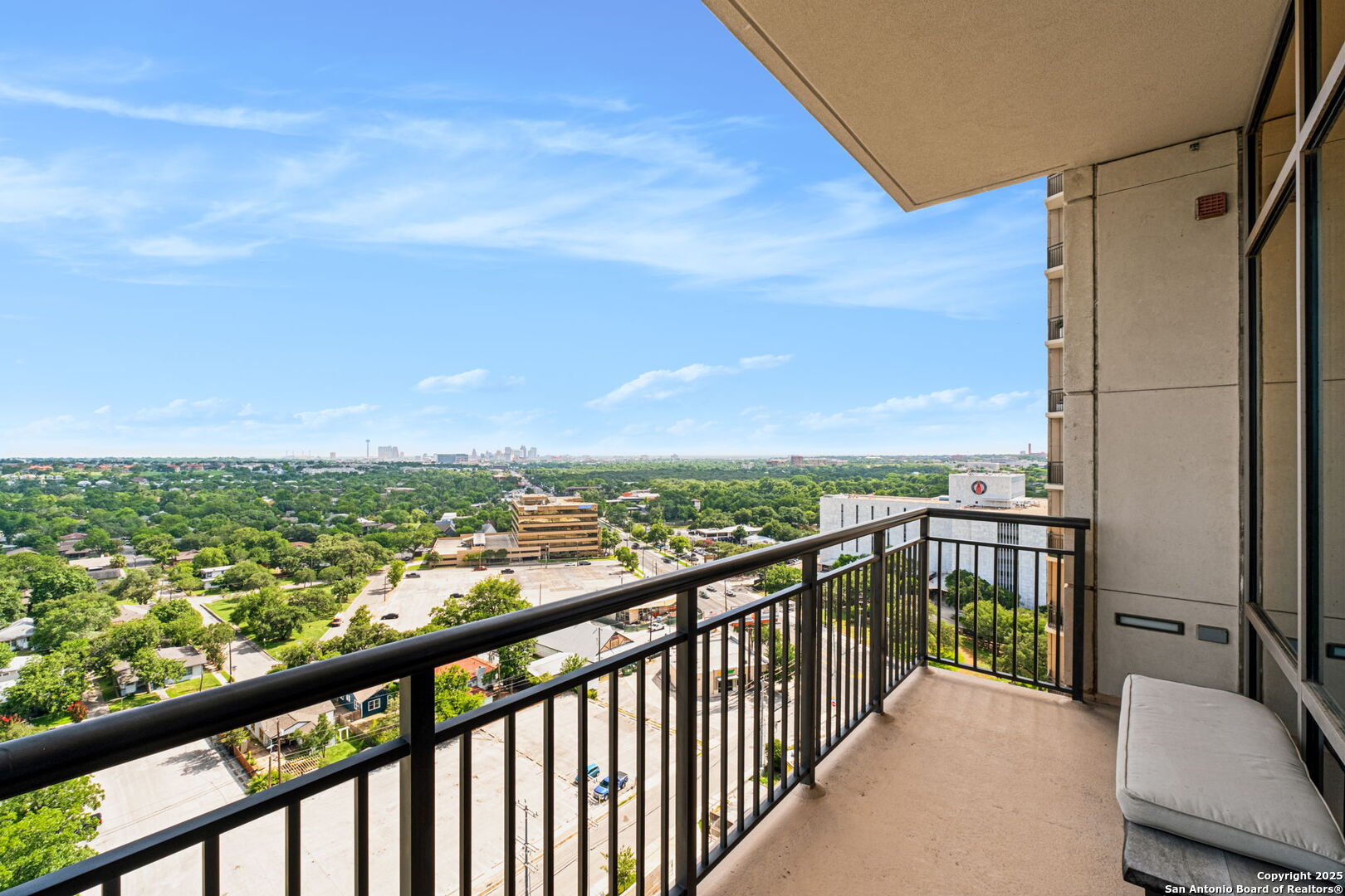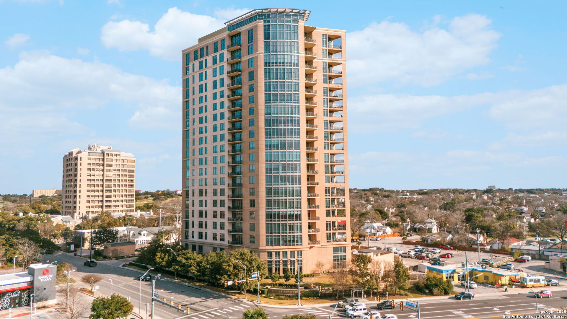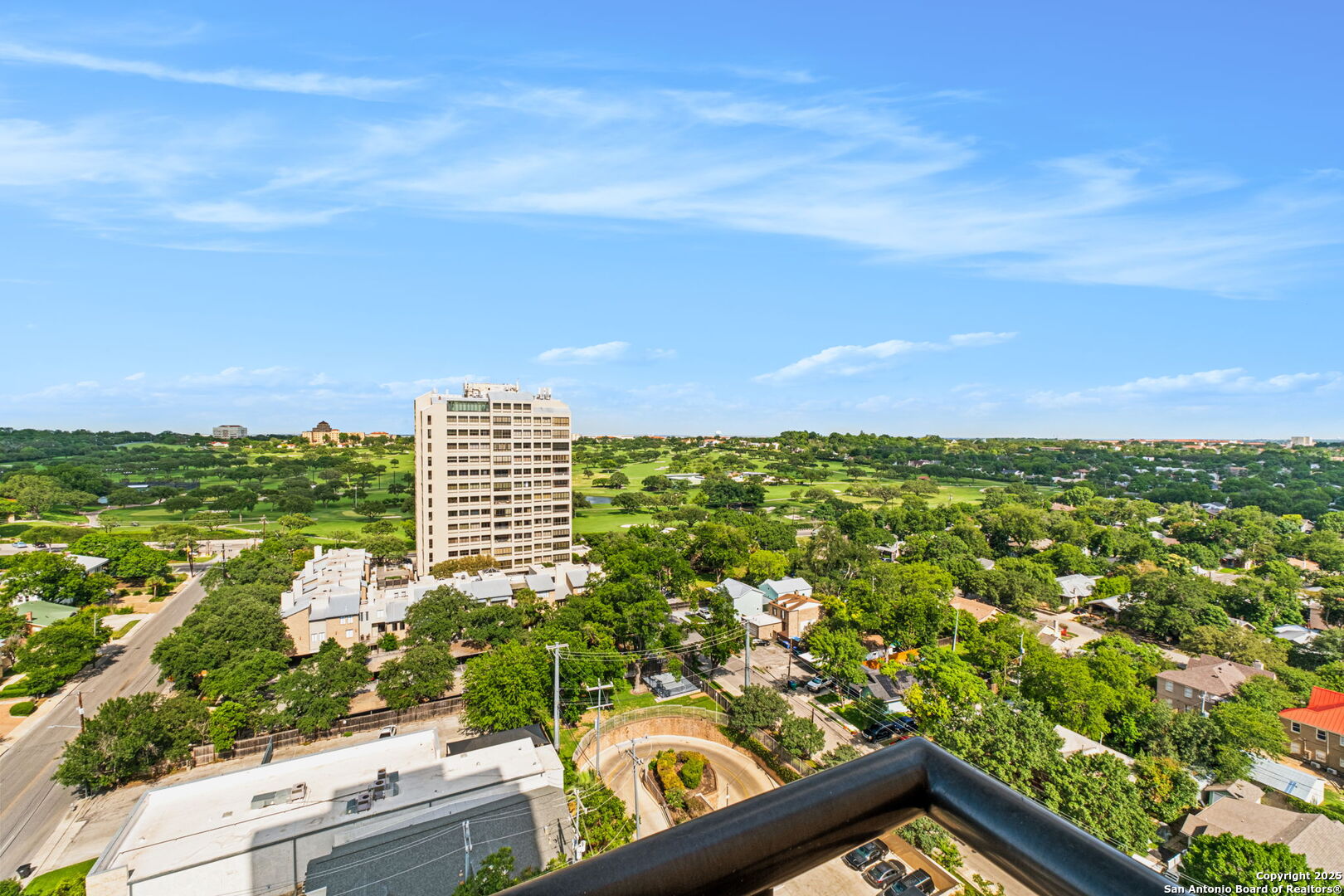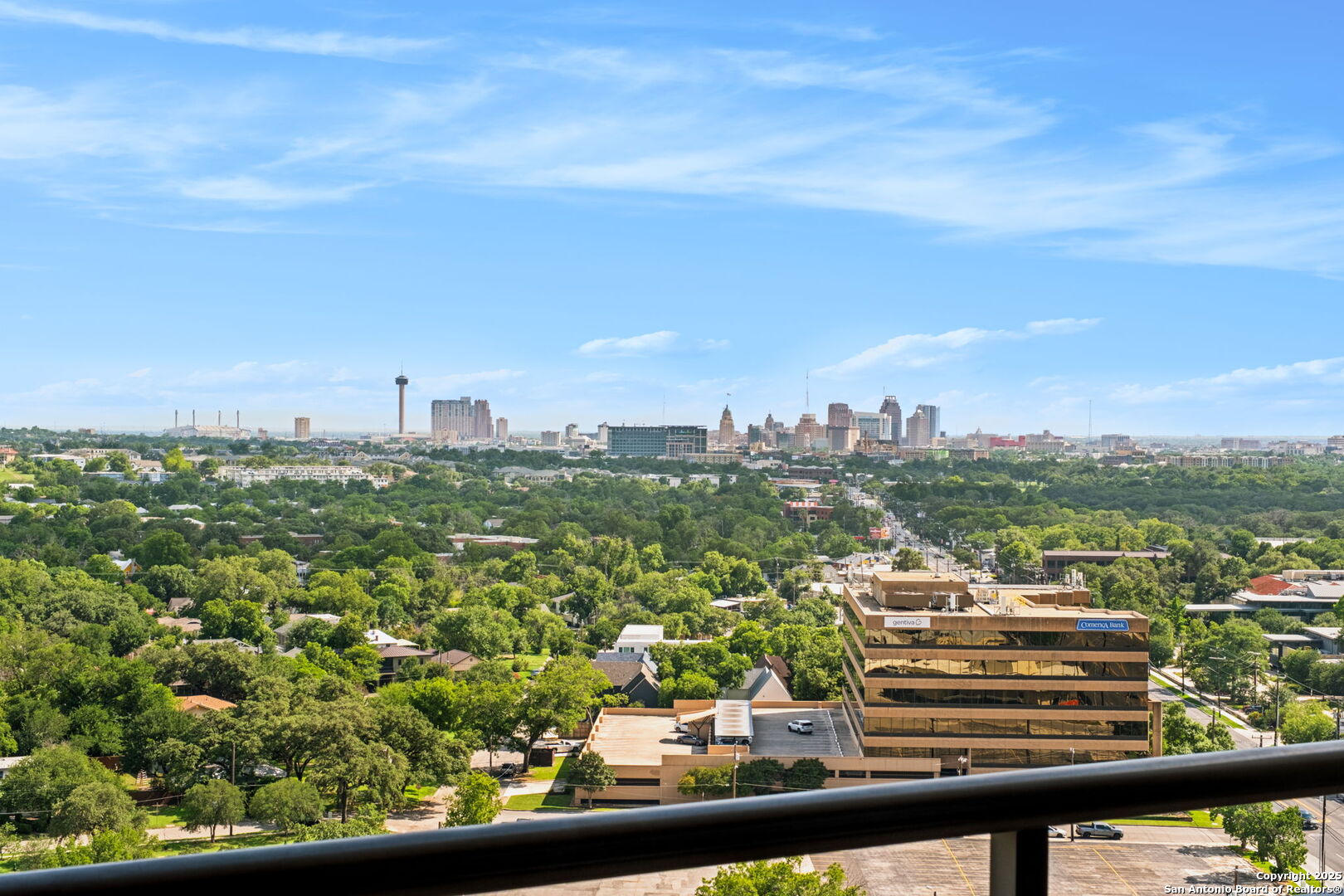 This corner unit features captivating south and east-facing views from the spacious open concept living - dining area, showcasing both the downtown San Antonio skyline and the verdant expanse of The San Antonio Country Club. The interior features a classic finish out with warm tones, complemented by a gourmet kitchen equipped with Miele appliances, gas cooking, and a Sub-Zero refrigerator. Primary suite with spa style ensuite bathroom and large walk-in closet. Stacked washer/dryer closet in unit. Residents enjoy a concierge lifestyle with dual balconies providing breathtaking vistas. The Broadway building itself is renowned for its full-service amenities, including valet parking, a 24-hour concierge, a resort-style heated pool and spa, a state-of-the-art gym, grilling stations, dog parks, sport courts, and private workout studios, ensuring unparalleled comfort and convenience.