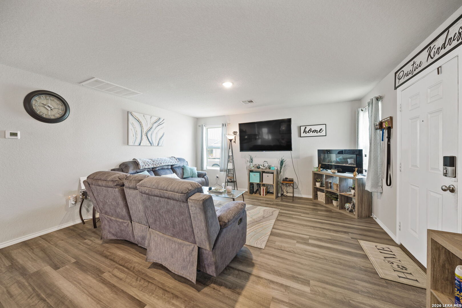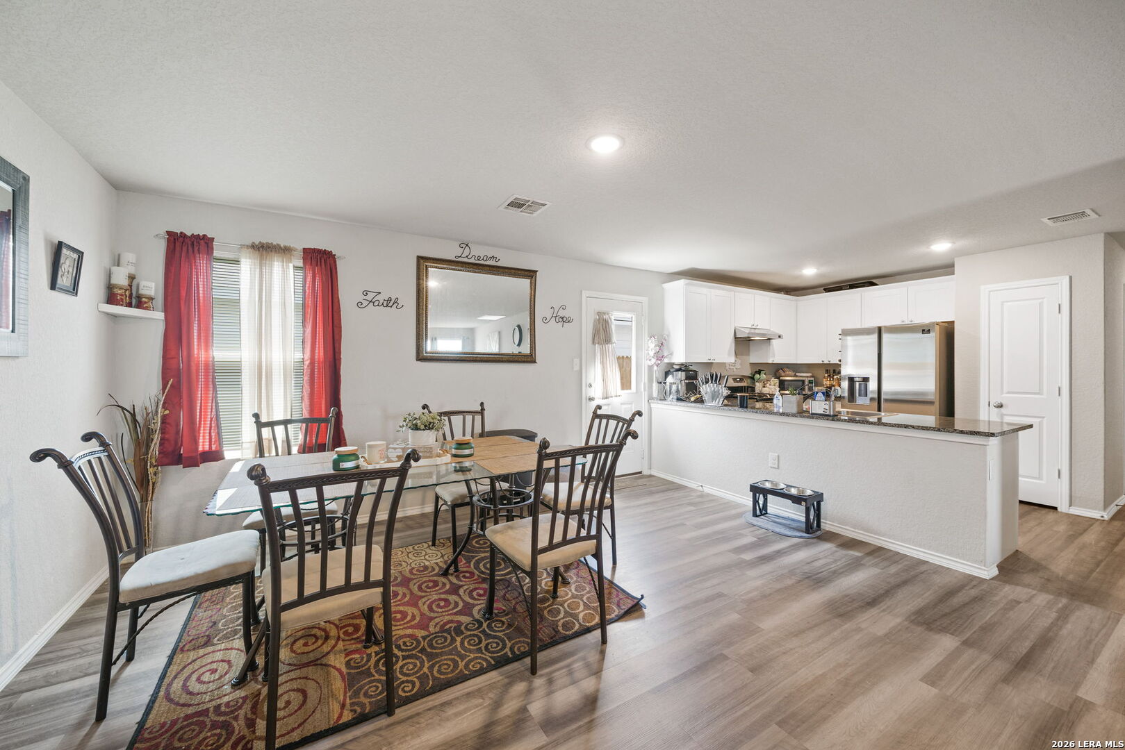 Move-in ready and beautifully maintained, this inviting single-story home sits on an oversized corner lot and offers a bright, open layout designed for comfortable everyday living. From the welcoming front porch to the spacious living and dining areas, the home feels open, airy, and easy to enjoy. Built in 2019, it features granite countertops in the kitchen and both bathrooms, gas cooking, and includes a stove, dishwasher, and refrigerator-making move-in simple from day one. LVP flooring flows through the main living spaces, while carpeted bedrooms provide a cozy retreat. The spacious primary suite offers a walk-in closet and private bath, and the large backyard provides plenty of room to relax, entertain, or create your own outdoor space. Conveniently located near Highway 151, Loop 410, shopping, dining, and military bases. Schedule your private showing today and imagine calling this home.