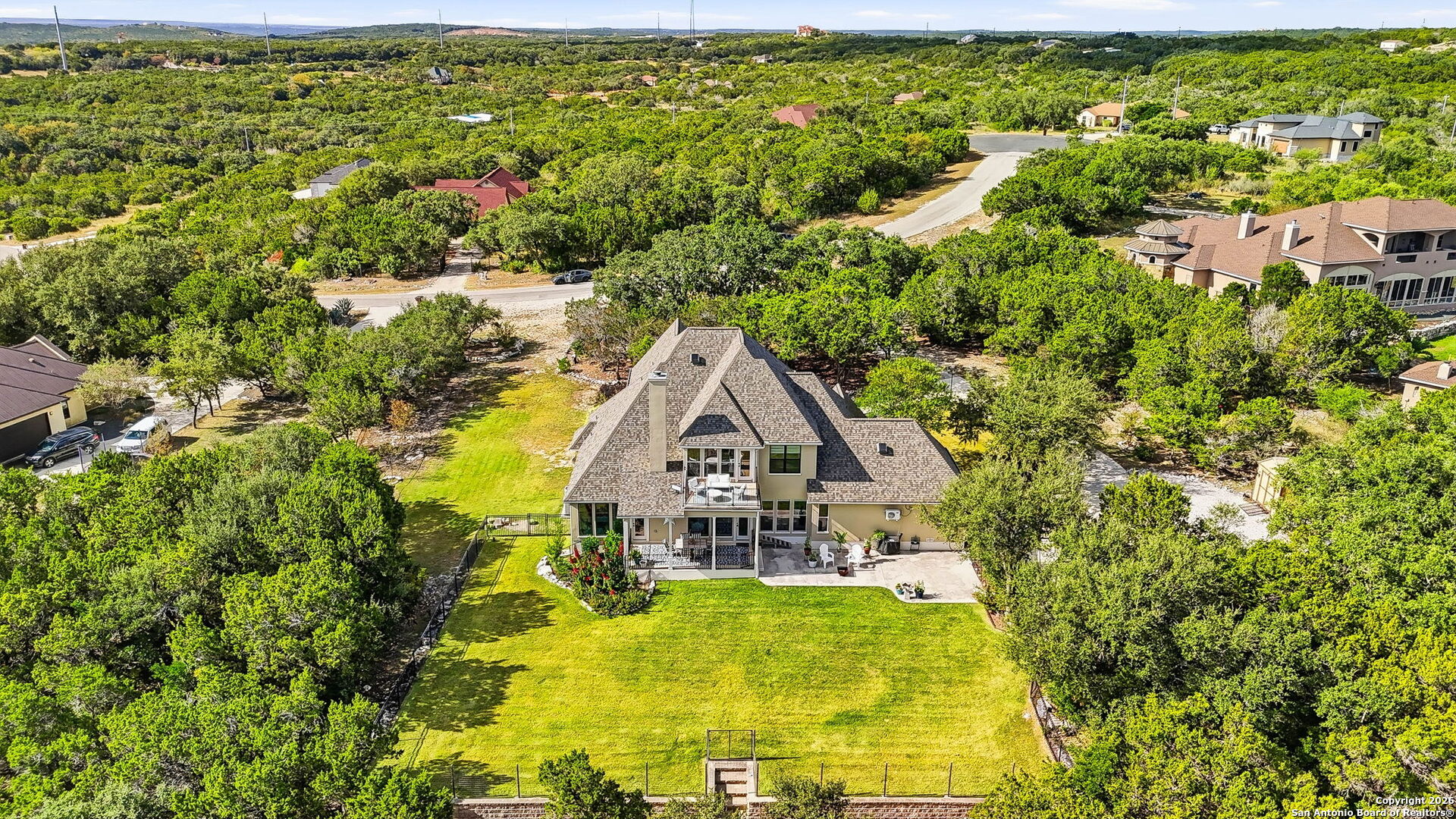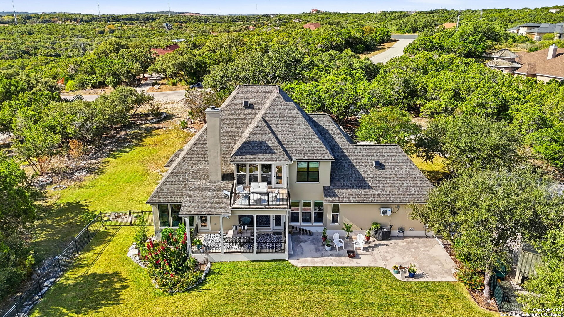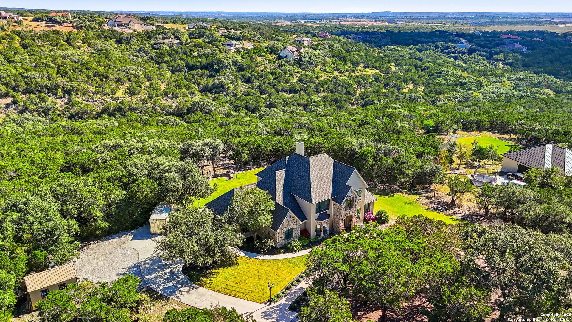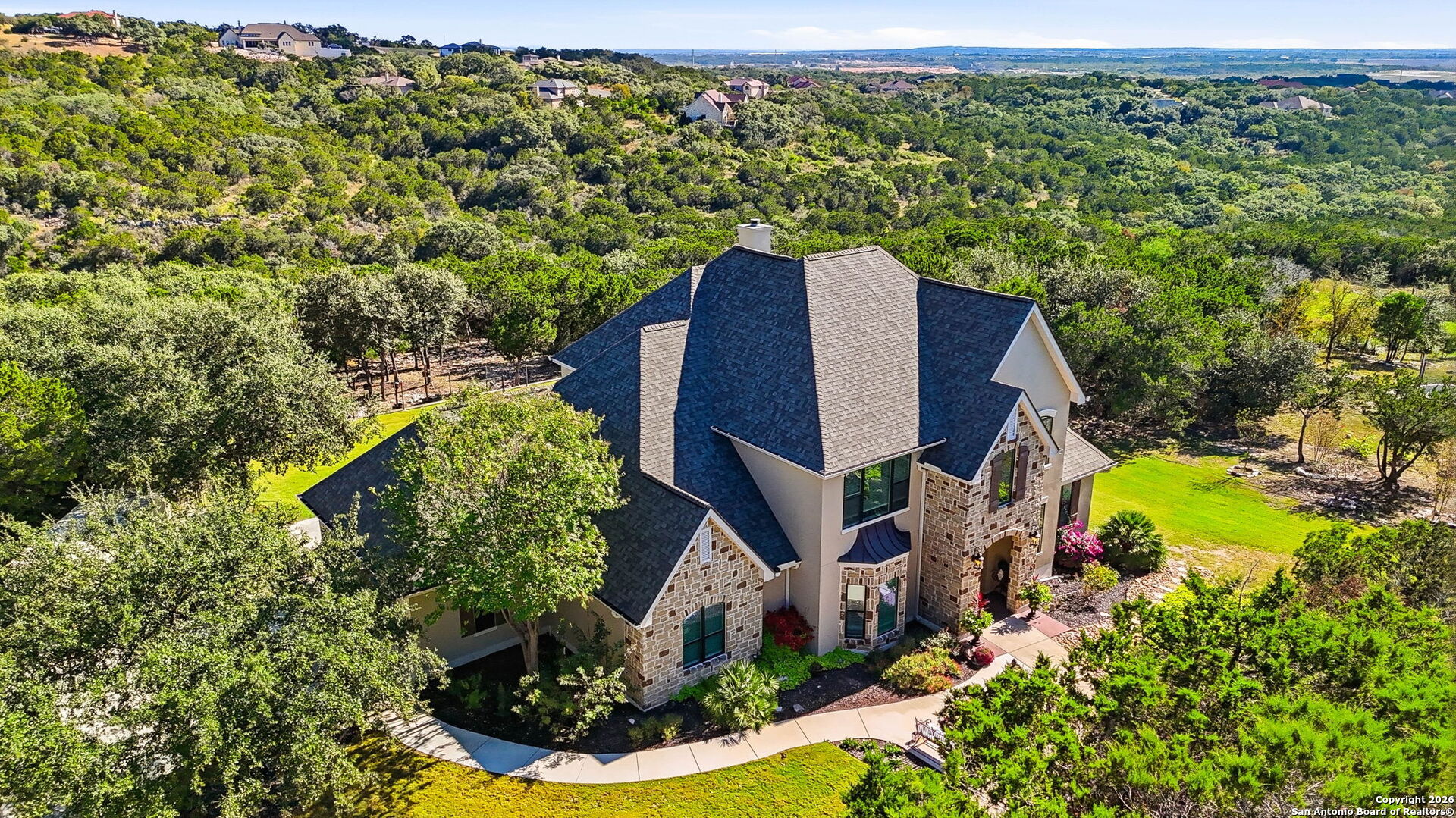 Stunning Hill Country Retreat in Laurel Canyon Ranch....Welcome to this exceptional five-bedroom, 4.5-bathroom Hill Country home nestled in Laurel Canyon Ranch, set on 3.5 acres backing to a greenbelt and located on a quiet cul-de-sac. Enjoy privacy, space, and breathtaking views within a neighborhood offering a 600-acre nature preserve, fishing pond, and walking trails. Wildlife sightings and serene surroundings make this property truly special. A dramatic 22-foot entry and foyer with a curved staircase creates an unforgettable first impression-perfect for showcasing a 12-foot+ Christmas tree. The home features 10-foot ceilings and 8-foot interior doors throughout, enhancing the open and airy feel. The spacious island kitchen includes a walk-in pantry and flows seamlessly into the breakfast nook and living area, highlighted by a stone fireplace and expansive back windows overlooking the covered porch and fenced backyard. The main-floor primary suite offers floor-to-ceiling windows and direct access to the covered porch. The Texas-sized primary bathroom features a barrel ceiling, double vanities, oversized shower, jetted garden tub, and abundant storage. Also on the main level are a second bedroom with a walk-in closet and bathroom, a formal dining room, a half bathroom, and a dedicated office with a wall of built-in desks-ideal for working from home. Upstairs you'll find three additional bedrooms, all with walk-in closets, two full bathrooms (including a Jack-and-Jill), and a large second living area with direct access to the second-story balcony, where the views truly shine. To top it all off, this home offers exceptional long-term value and peace of mind with a 2025 roof, updated 6-inch gutters, and two solar-powered Attic Breeze systems completed in September 2025. These major upgrades not only enhance energy efficiency and durability but also significantly reduce future maintenance costs. The transferable warranty adds even more value, making this home a smart and secure investment for the next owner. Additional Features & Upgrades: *Oversized 2-car garage with insulated doors and mini-split system *Fenced backyard with sprinkler system *Mature trees and thousands of dollars on landscaping *Central vacuum system, reverse osmosis system, and water softener *13 oversized windows replaced in 2023, many floor-to-ceiling *Wood plank porcelain tile throughout lower level (2024) *Waterproof luxury vinyl upstairs (2023) *Two hot water heaters (March 2025 & August 2025) *Five updated toilets (2023) *Dishwasher (August 2022) *Fiber internet currently being installed for the entire neighborhood *9 minute drive to the new HEB at Culebra and 211! This home truly has it all. Schedule your private showing today.
