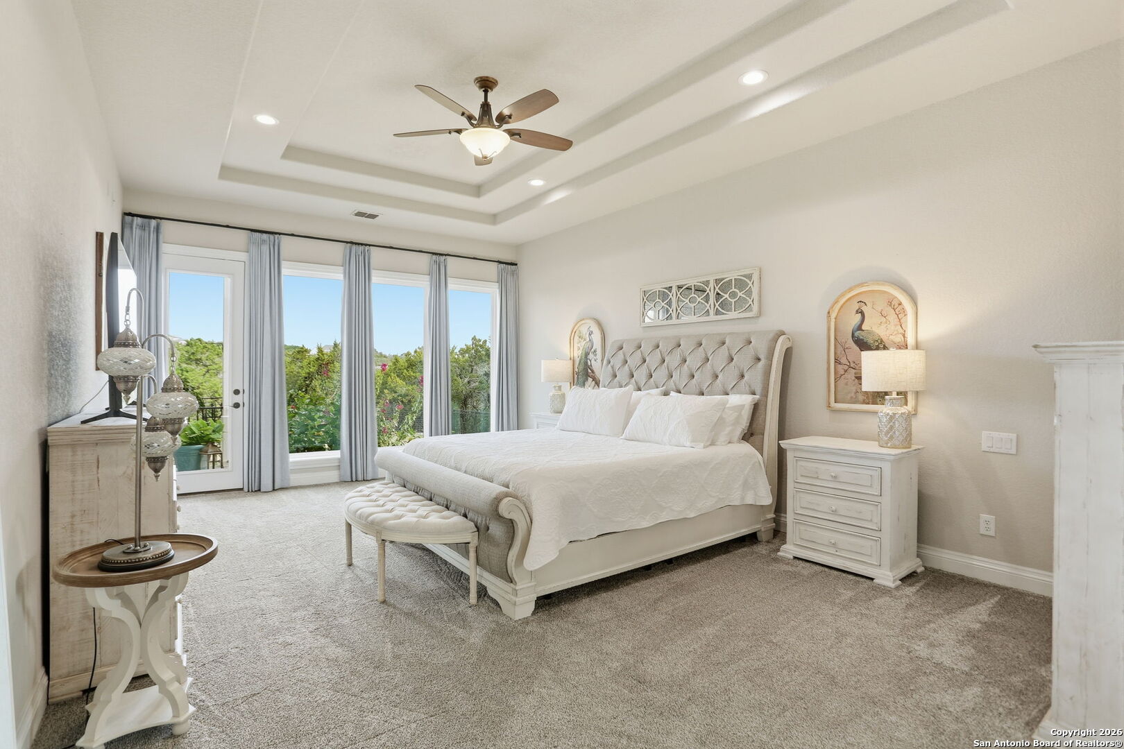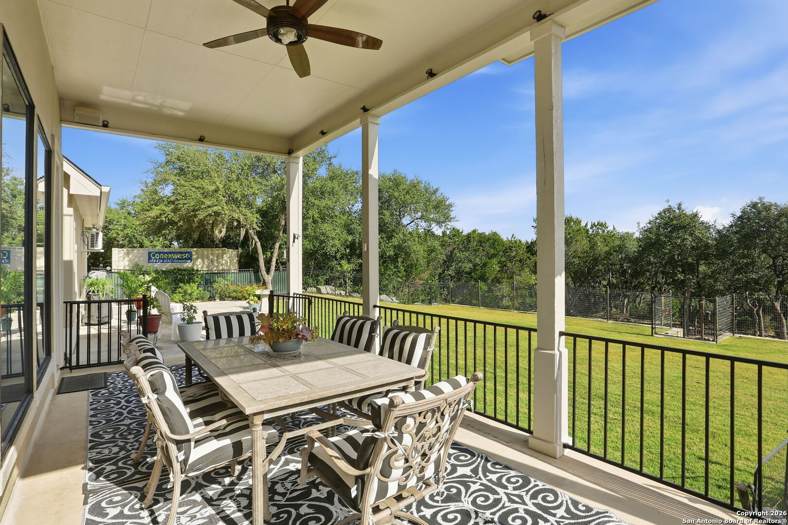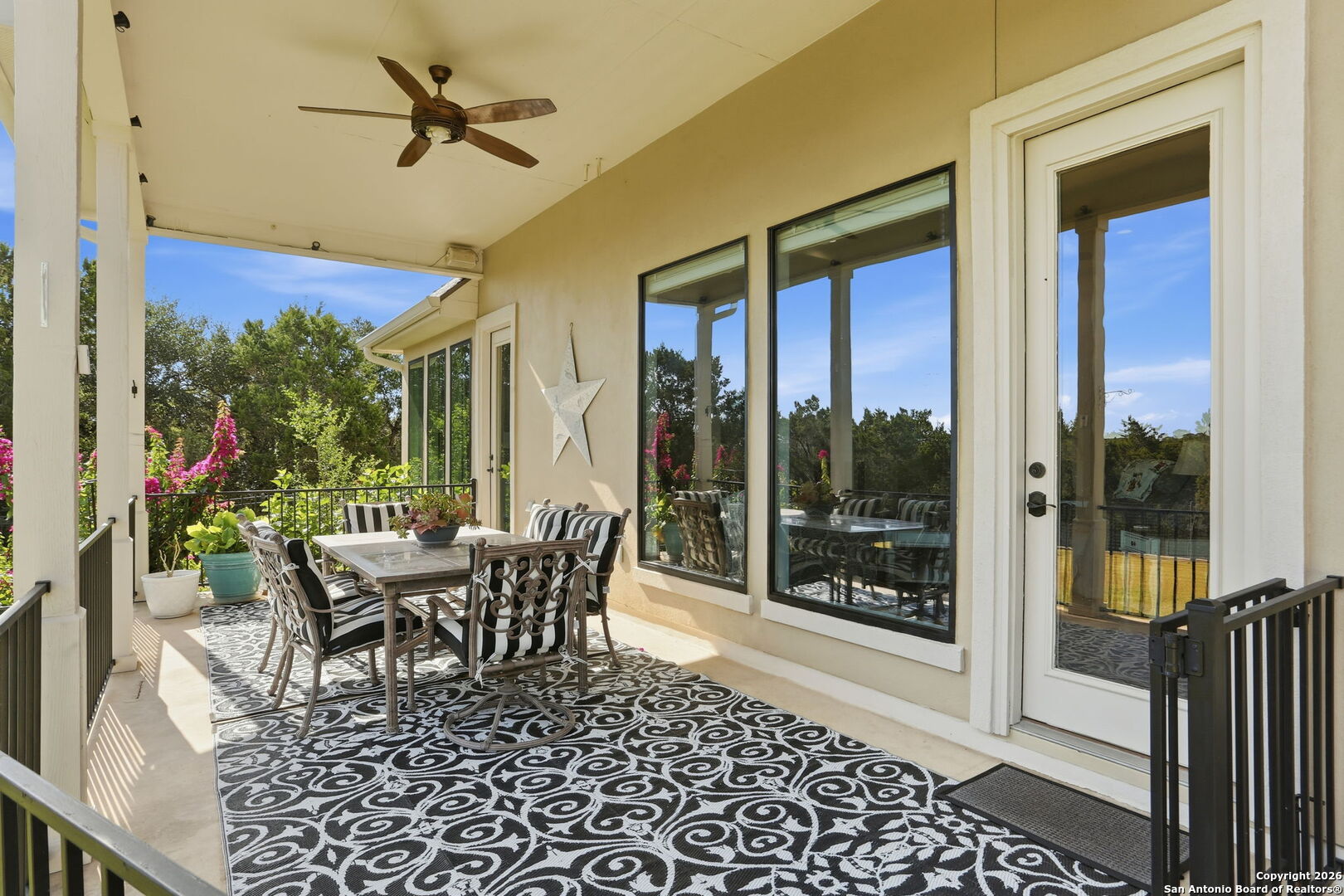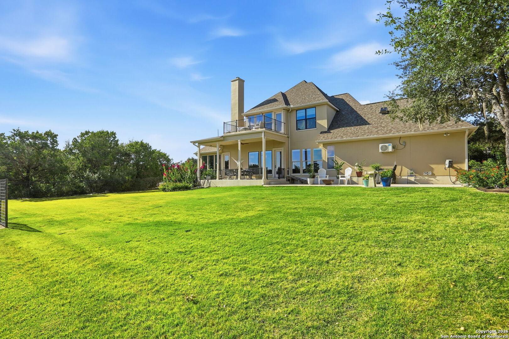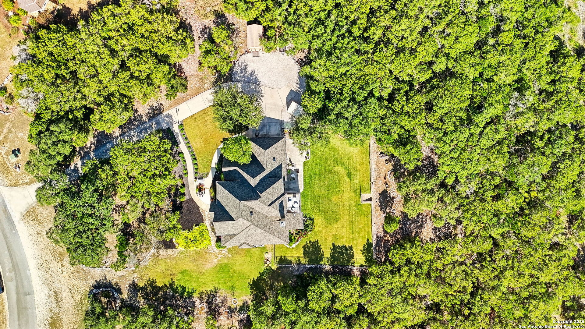 Stunning Hill Country Retreat in Laurel Canyon Ranch....Welcome to this exceptional five-bedroom, 4.5-bathroom Hill Country home nestled in Laurel Canyon Ranch, set on 3.5 acres backing to a greenbelt and located on a quiet cul-de-sac. Enjoy privacy, space, and breathtaking views within a neighborhood offering a 600-acre nature preserve, fishing pond, and walking trails. Wildlife sightings and serene surroundings make this property truly special. A dramatic 22-foot entry and foyer with a curved staircase creates an unforgettable first impression-perfect for showcasing a 12-foot+ Christmas tree. The home features 10-foot ceilings and 8-foot interior doors throughout, enhancing the open and airy feel. The spacious island kitchen includes a walk-in pantry and flows seamlessly into the breakfast nook and living area, highlighted by a stone fireplace and expansive back windows overlooking the covered porch and fenced backyard. The main-floor primary suite offers floor-to-ceiling windows and direct access to the covered porch. The Texas-sized primary bathroom features a barrel ceiling, double vanities, oversized shower, jetted garden tub, and abundant storage. Also on the main level are a second bedroom with a walk-in closet and bathroom, a formal dining room, a half bathroom, and a dedicated office with a wall of built-in desks-ideal for working from home. Upstairs you'll find three additional bedrooms, all with walk-in closets, two full bathrooms (including a Jack-and-Jill), and a large second living area with direct access to the second-story balcony, where the views truly shine. To top it all off, this home offers exceptional long-term value and peace of mind with a 2025 roof, updated 6-inch gutters, and two solar-powered Attic Breeze systems completed in September 2025. These major upgrades not only enhance energy efficiency and durability but also significantly reduce future maintenance costs. The transferable warranty adds even more value, making this home a smart and secure investment for the next owner. Additional Features & Upgrades: *Oversized 2-car garage with insulated doors and mini-split system *Fenced backyard with sprinkler system *Mature trees and thousands of dollars on landscaping *Central vacuum system, reverse osmosis system, and water softener *13 oversized windows replaced in 2023, many floor-to-ceiling *Wood plank porcelain tile throughout lower level (2024) *Waterproof luxury vinyl upstairs (2023) *Two hot water heaters (March 2025 & August 2025) *Five updated toilets (2023) *Dishwasher (August 2022) *Fiber internet currently being installed for the entire neighborhood *9 minute drive to the new HEB at Culebra and 211! This home truly has it all. Schedule your private showing today.