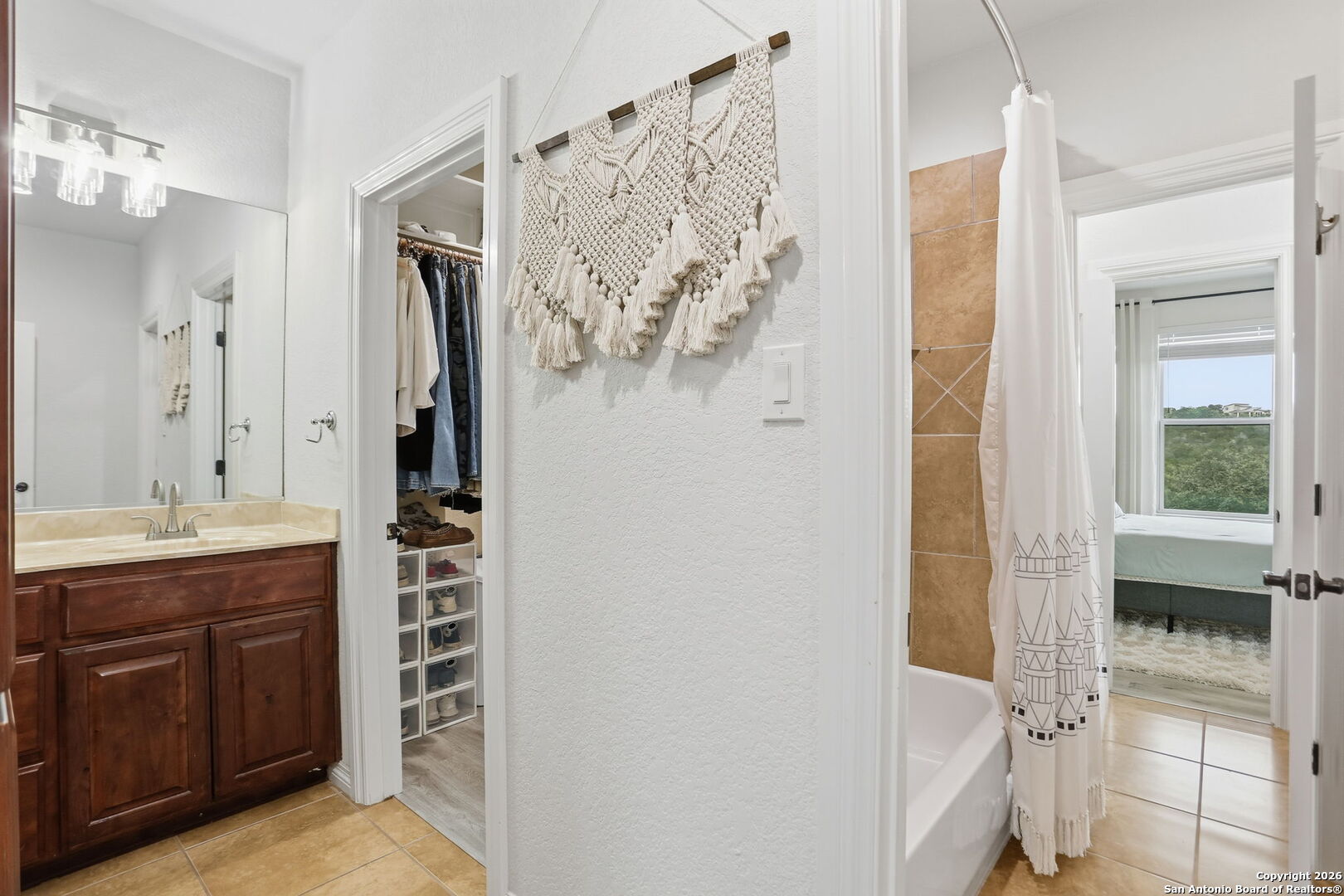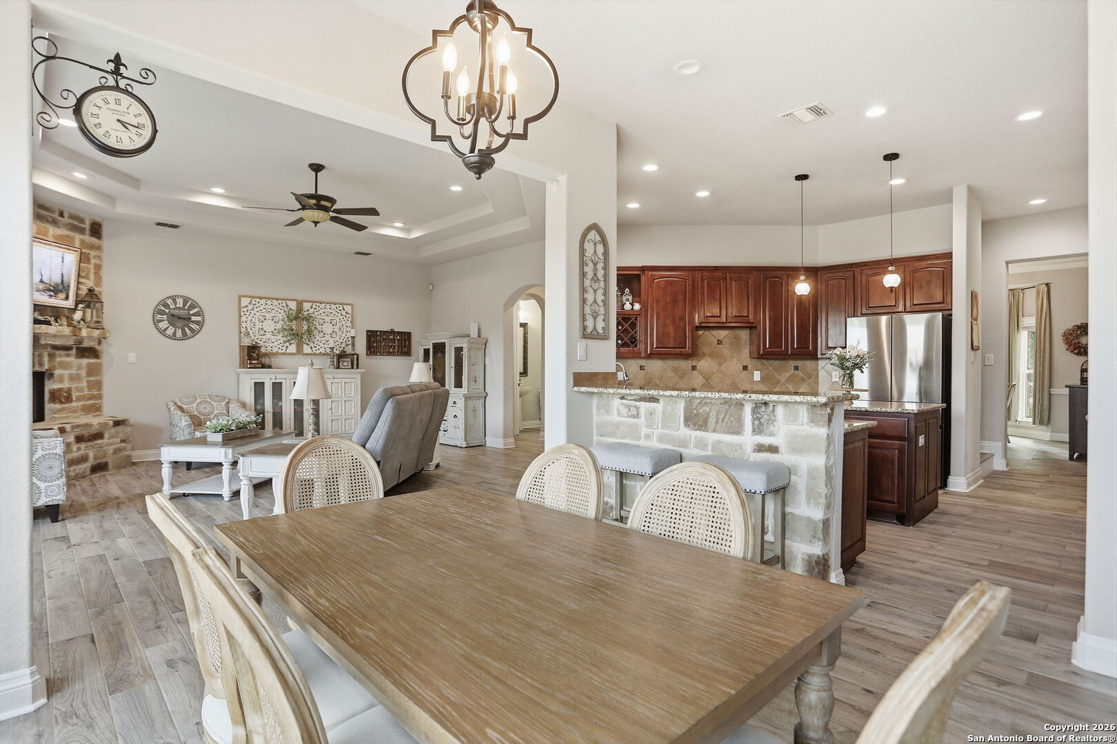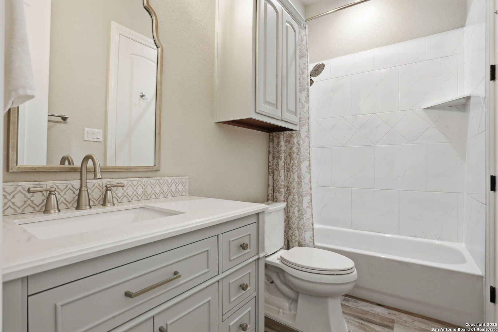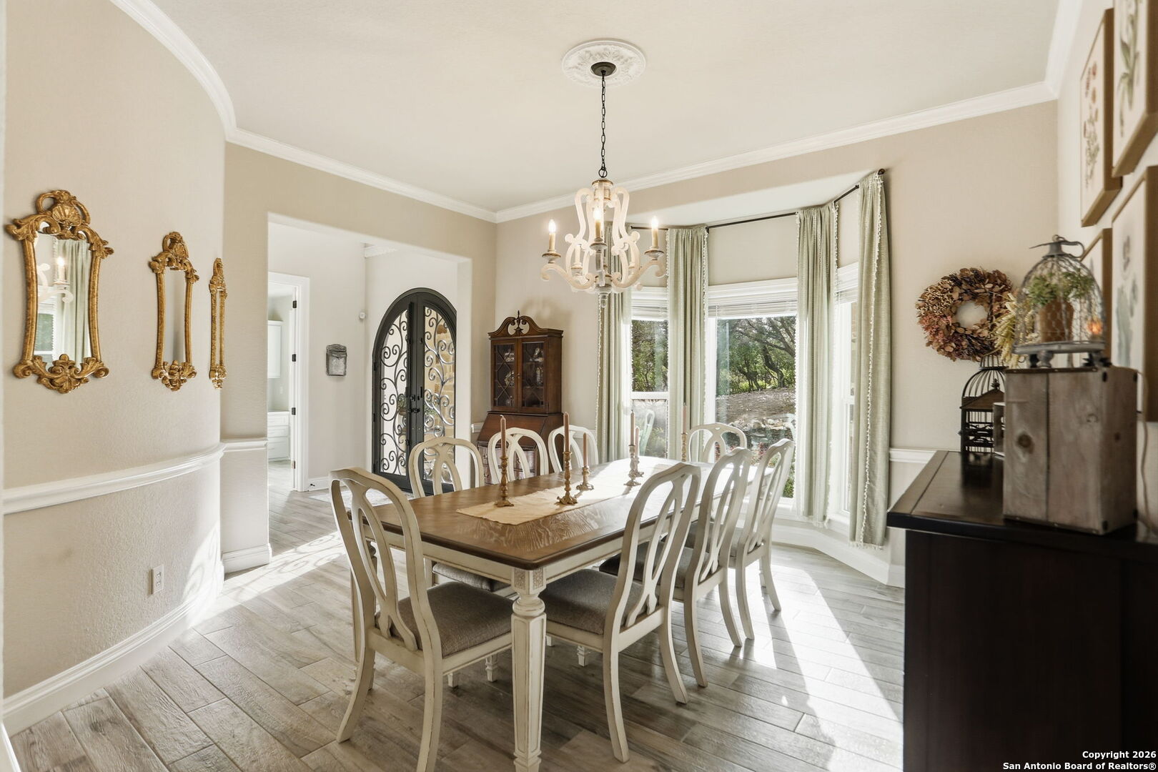 Stunning Hill Country Retreat in Laurel Canyon Ranch....Welcome to this exceptional five-bedroom, 4.5-bathroom Hill Country home nestled in Laurel Canyon Ranch, set on 3.5 acres backing to a greenbelt and located on a quiet cul-de-sac. Enjoy privacy, space, and breathtaking views within a neighborhood offering a 600-acre nature preserve, fishing pond, and walking trails. Wildlife sightings and serene surroundings make this property truly special. A dramatic 22-foot entry and foyer with a curved staircase creates an unforgettable first impression-perfect for showcasing a 12-foot+ Christmas tree. The home features 10-foot ceilings and 8-foot interior doors throughout, enhancing the open and airy feel. The spacious island kitchen includes a walk-in pantry and flows seamlessly into the breakfast nook and living area, highlighted by a stone fireplace and expansive back windows overlooking the covered porch and fenced backyard. The main-floor primary suite offers floor-to-ceiling windows and direct access to the covered porch. The Texas-sized primary bathroom features a barrel ceiling, double vanities, oversized shower, jetted garden tub, and abundant storage. Also on the main level are a second bedroom with a walk-in closet and bathroom, a formal dining room, a half bathroom, and a dedicated office with a wall of built-in desks-ideal for working from home. Upstairs you'll find three additional bedrooms, all with walk-in closets, two full bathrooms (including a Jack-and-Jill), and a large second living area with direct access to the second-story balcony, where the views truly shine. To top it all off, this home offers exceptional long-term value and peace of mind with a 2025 roof, updated 6-inch gutters, and two solar-powered Attic Breeze systems completed in September 2025. These major upgrades not only enhance energy efficiency and durability but also significantly reduce future maintenance costs. The transferable warranty adds even more value, making this home a smart and secure investment for the next owner. Additional Features & Upgrades: *Oversized 2-car garage with insulated doors and mini-split system *Fenced backyard with sprinkler system *Mature trees and thousands of dollars on landscaping *Central vacuum system, reverse osmosis system, and water softener *13 oversized windows replaced in 2023, many floor-to-ceiling *Wood plank porcelain tile throughout lower level (2024) *Waterproof luxury vinyl upstairs (2023) *Two hot water heaters (March 2025 & August 2025) *Five updated toilets (2023) *Dishwasher (August 2022) *Fiber internet currently being installed for the entire neighborhood *9 minute drive to the new HEB at Culebra and 211! This home truly has it all. Schedule your private showing today.