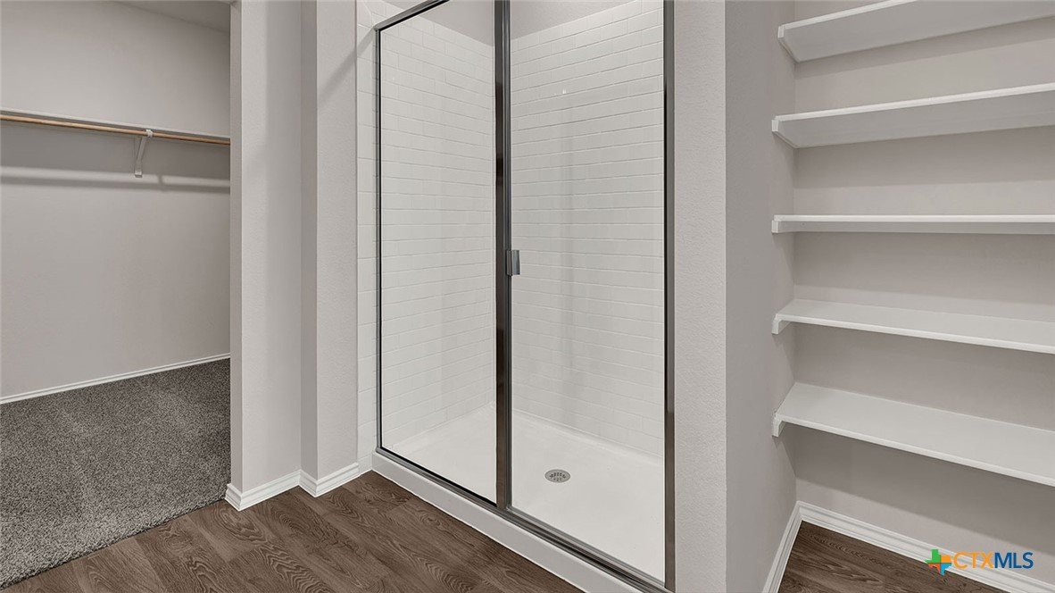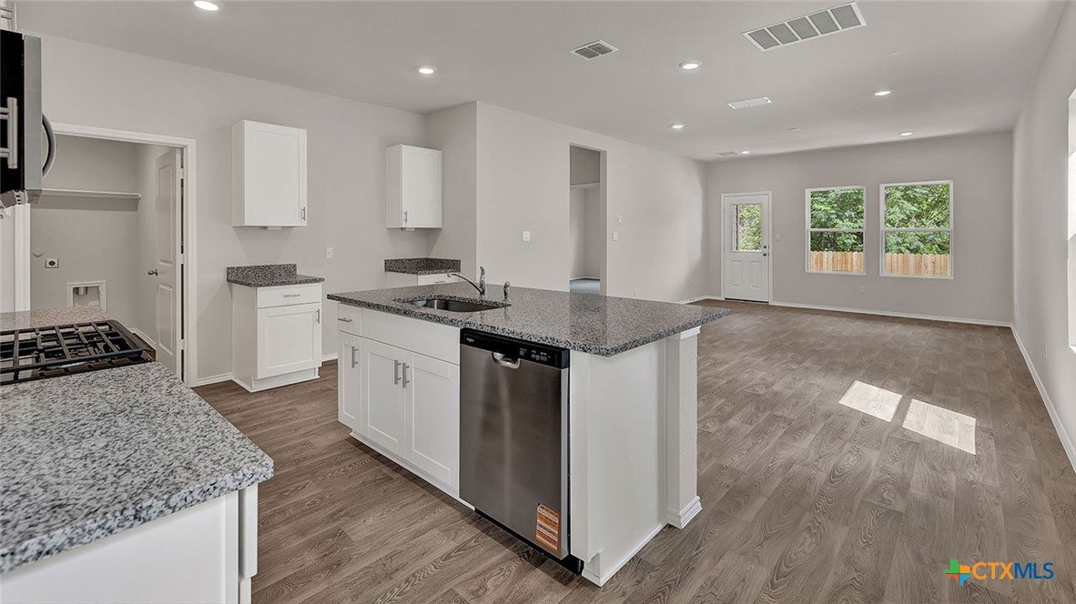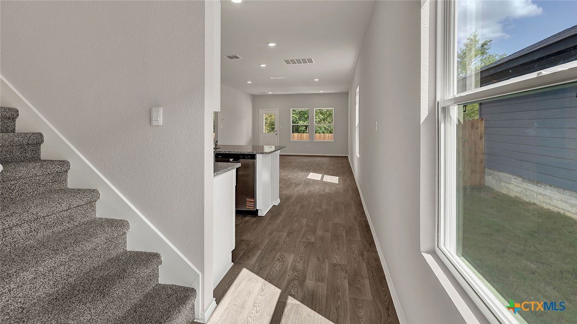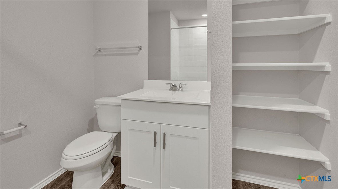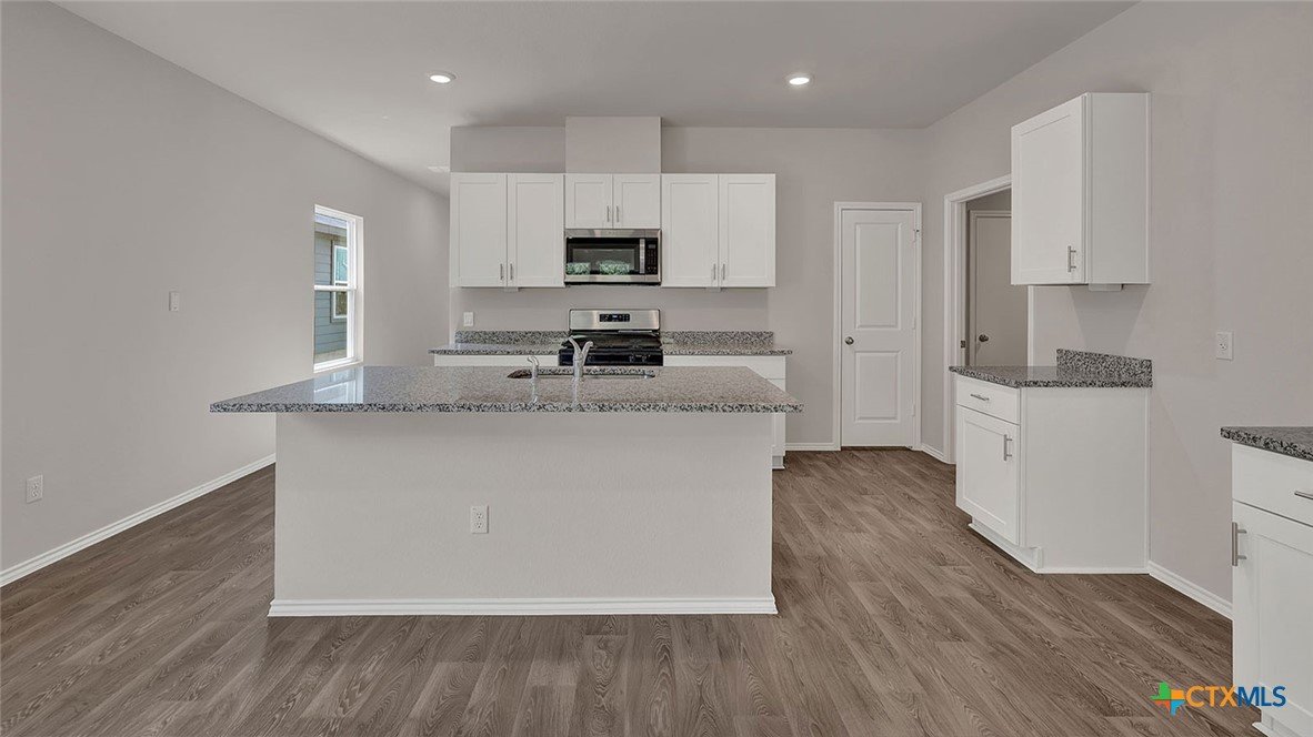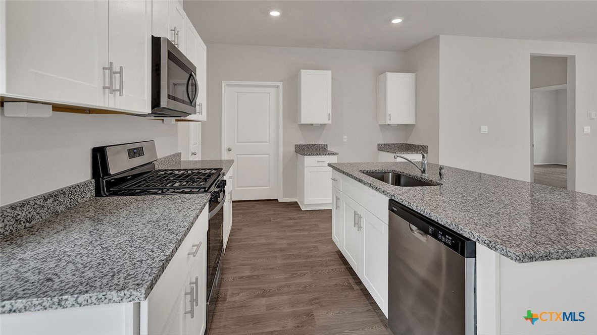 MOVE IN READY! CUL-DE-SAC LOT. The Hanna is one of our two story floorplans available at our Bollinger community. This beautiful 2,036 square foot home has 4 bedrooms, 2.5 bathrooms, a game room and a 2 car garage. Our homes in Bollinger feature our modern farmhouse exterior. On the first floor of this new home, you’ll find the main living space and primary bedroom ensuite. The kitchen, dining and family room are an open concept layout, perfect for everyday living and entertaining. The kitchen features an island with undermount sink, granite countertops, decorative granite backsplash, a pantry closet, 36” upper cabinets, and stainless-steel appliances, including a gas range. Enjoy the natural light from the side and rear windows. The oversized utility room is off the kitchen and connects to the garage, making it the ideal mud room. The primary bedroom ensuite is tucked away off the family room. Enjoy a peaceful start to your day in this space with the luxurious walk-in shower, cultured marble vanity with dual sinks, private toilet area with a door, and a large walk-in closet. Climb the staircase to the second floor and enter the gameroom. This multi-use space can easily be transformed into an office or play area for the kids. Three additional bedrooms and one full bathroom complete the second story space. The upstairs bedrooms include closets with shelving and the upstairs bathroom includes a shower/tub combination and extra shelving for storage or décor. The Hanna includes vinyl flooring throughout the common areas of the home, and carpet in the bedrooms. A covered back patio is also included in the Hanna plan. All our new homes feature Bermuda sod, an irrigation system in the front and back yard, and a 6’ privacy fence around the back yard. This home comes with our America’s Smart Home base package, which includes the Amazon Echo Pop, Front Doorbell, Front Door Deadbolt Lock, Home Hub, Thermostat, and Deako® Smart Switches.