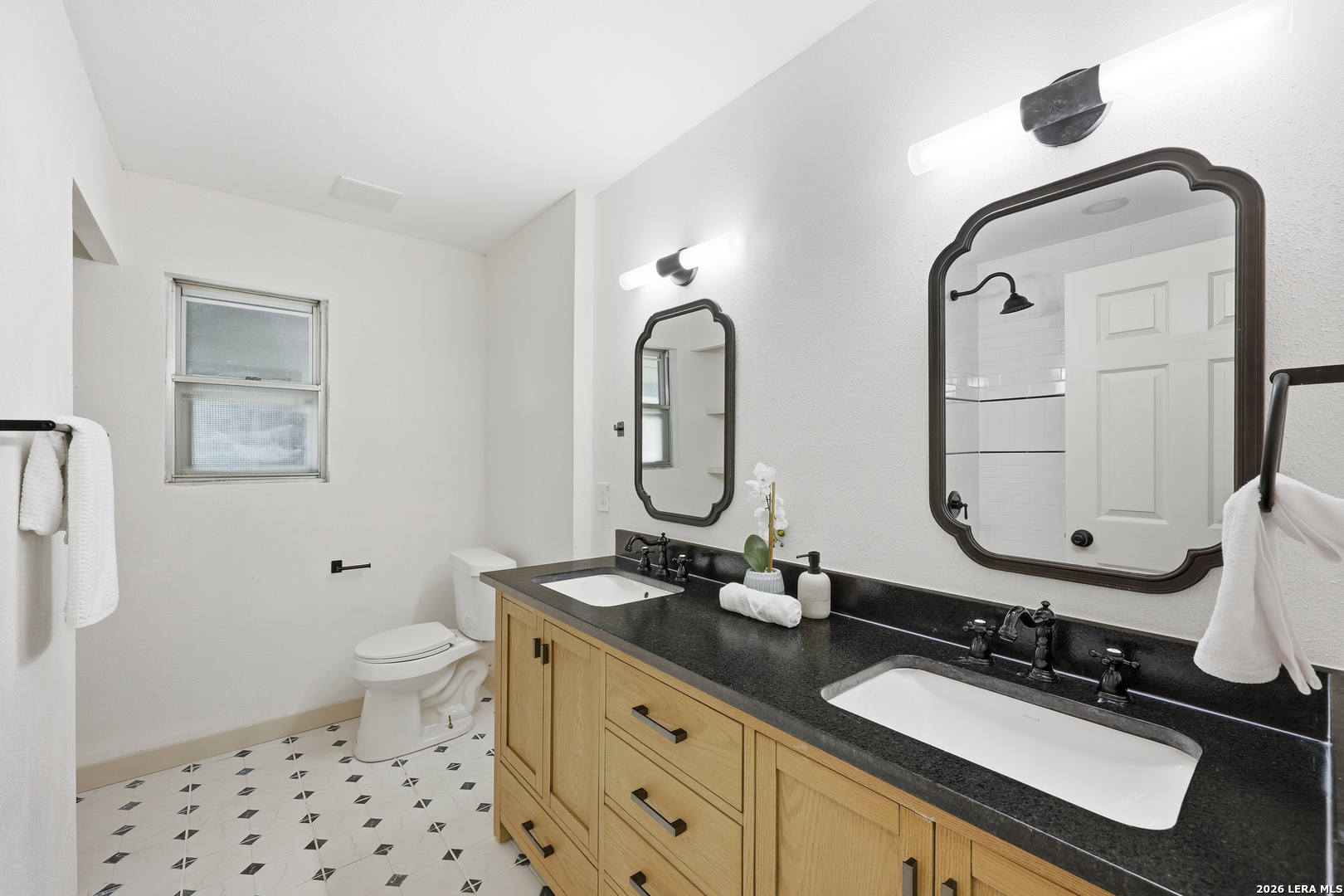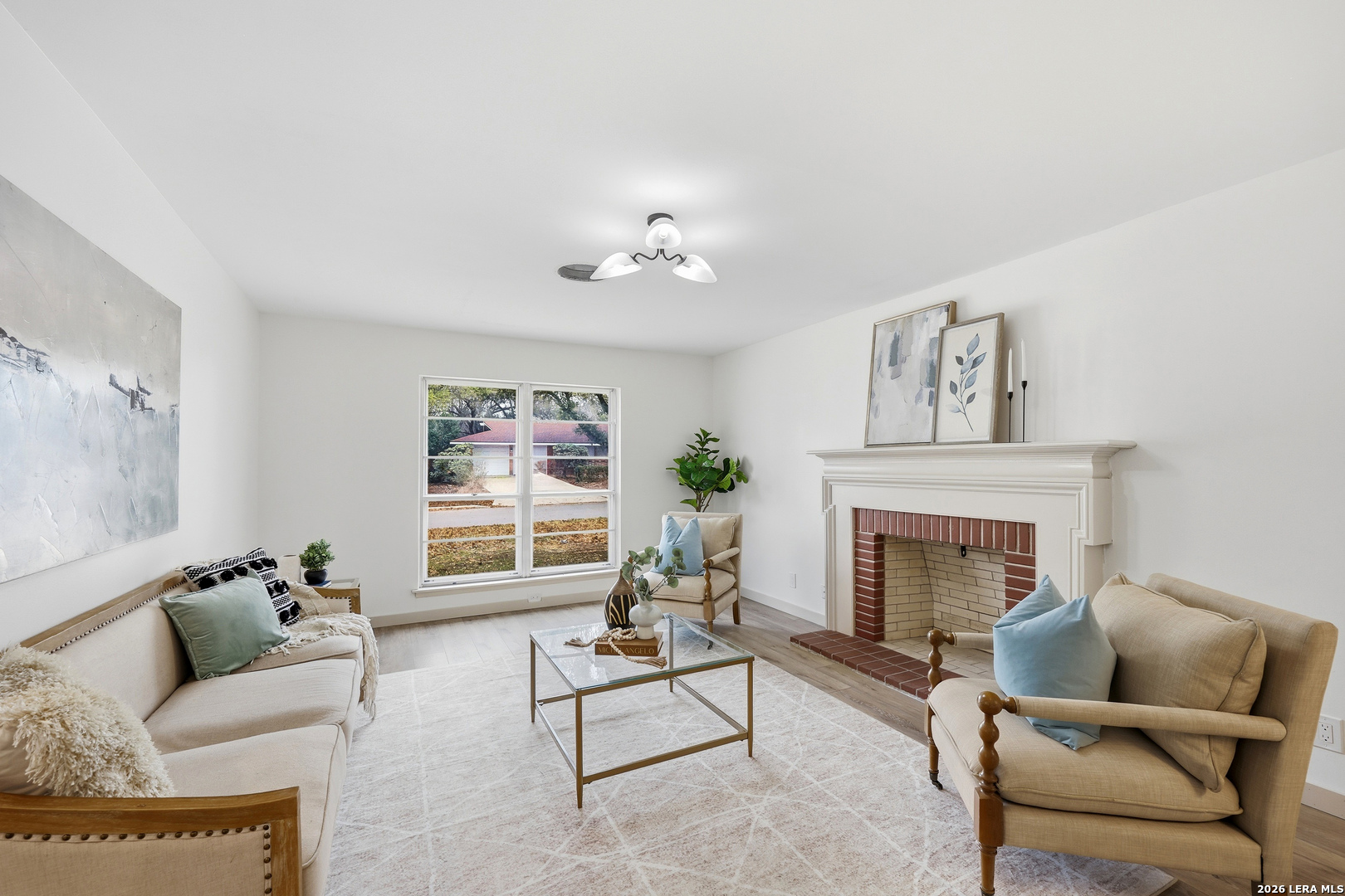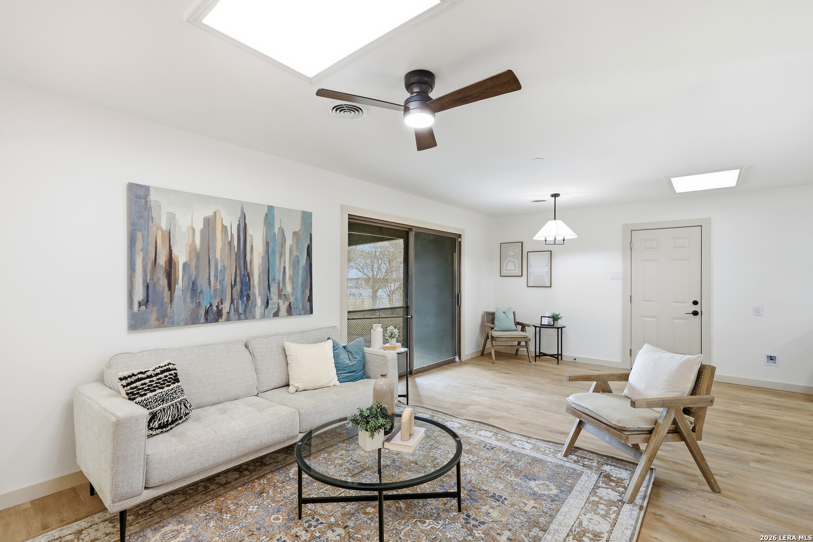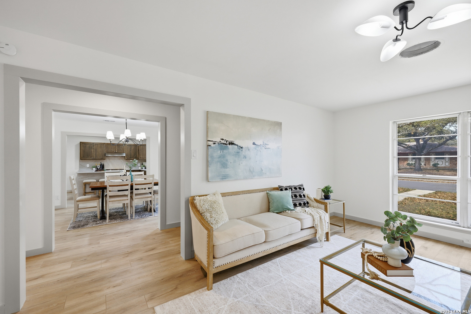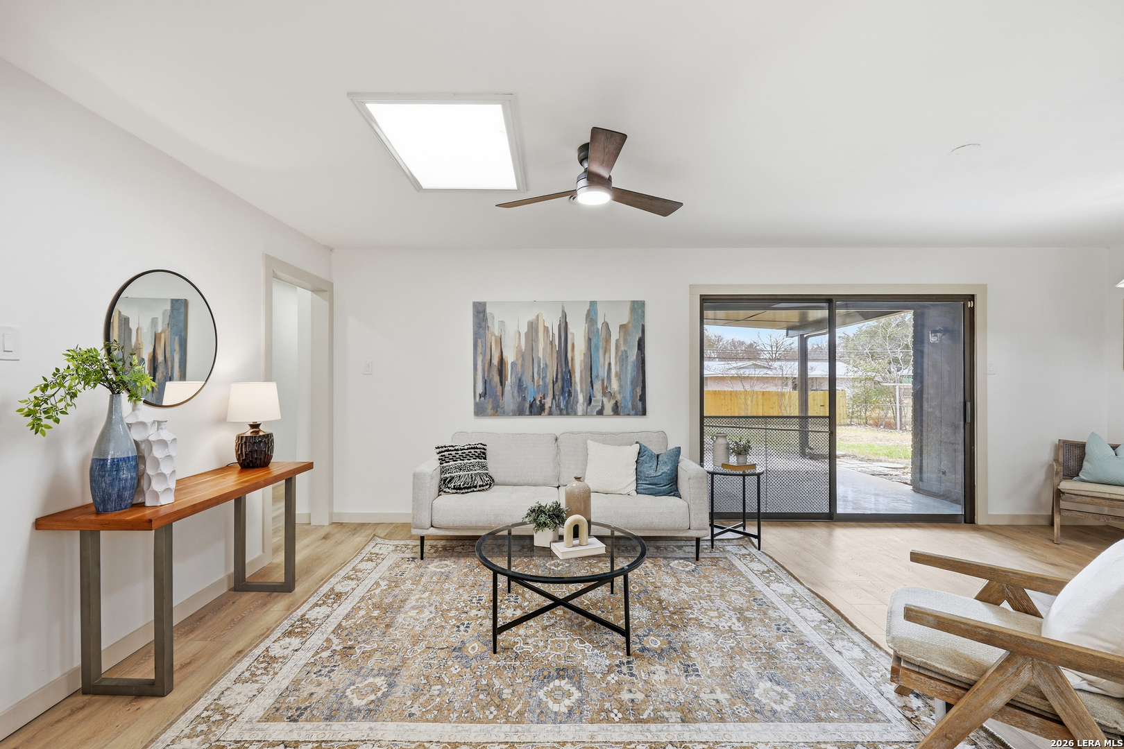 Beautifully renovated 4-bedroom, 2-bath home in the established Windcrest community featuring an open floor plan, two spacious living areas, providing flexibility for a formal sitting area, media room, home office, or play space. An oversized attached two car garage offers plenty of space for parking and storage. Bright, updated interiors flow seamlessly for comfortable everyday living and easy entertaining. The modern kitchen offers stylish cabinetry, stainless steel appliances, and a gas range, perfect for cooking enthusiasts. The primary suite is a true highlight, showcasing a spa-like bathroom with dual sinks and an oversized walk-in shower with custom tile and dual shower heads. Enjoy a large backyard shaded by mature trees. The yard also features a generously sized covered patio providing plenty of space for relaxing, entertaining, or outdoor activities. Conveniently located near shopping, dining, and major highways, this move-in-ready home combines style, functionality, and an unbeatable location.