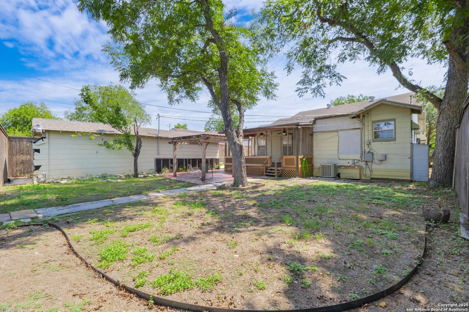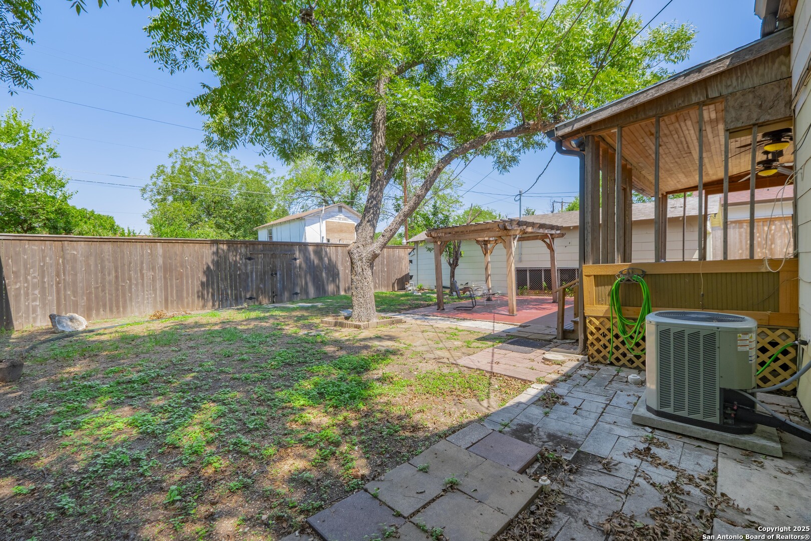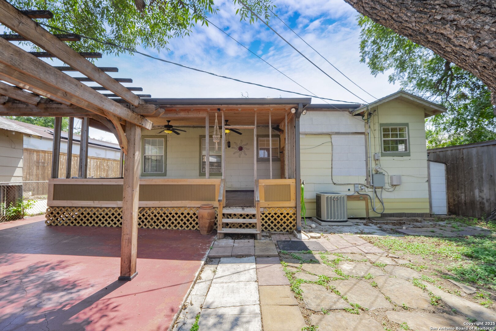 This vacant 3-bedroom, 1-bath home offers 1,518 sq. ft. of living space on a 0.17-acre gated lot, combining character with thoughtful updates. The interior features beautifully refinished wood floors that add warmth throughout, complemented by a newly installed stove. A fireplace that is both wood-burning and gas serves as a cozy focal point in the living area. Built on a pier-and-beam foundation, the home is equipped with natural gas for the stove, hot water tank, and furnace, while everything else runs on electric. A covered front porch, covered patio, and pergola at the back extend the living space outdoors, providing multiple spots for relaxation and entertaining. A detached 1-car garage adds additional storage or parking flexibility. The lot is fully secured with a perimeter fence - wooden fencing at the side and back, paired with a wrought iron fence and gate at the front for both privacy and curb appeal. Located just a few minutes from Eloise Japhet Elementary School and H-E-B Plus, this property also offers excellent accessibility. Sitting only a few blocks east of I-37, you'll have direct access to downtown San Antonio within minutes, making this home a convenient and desirable option.