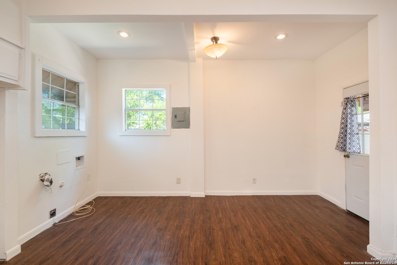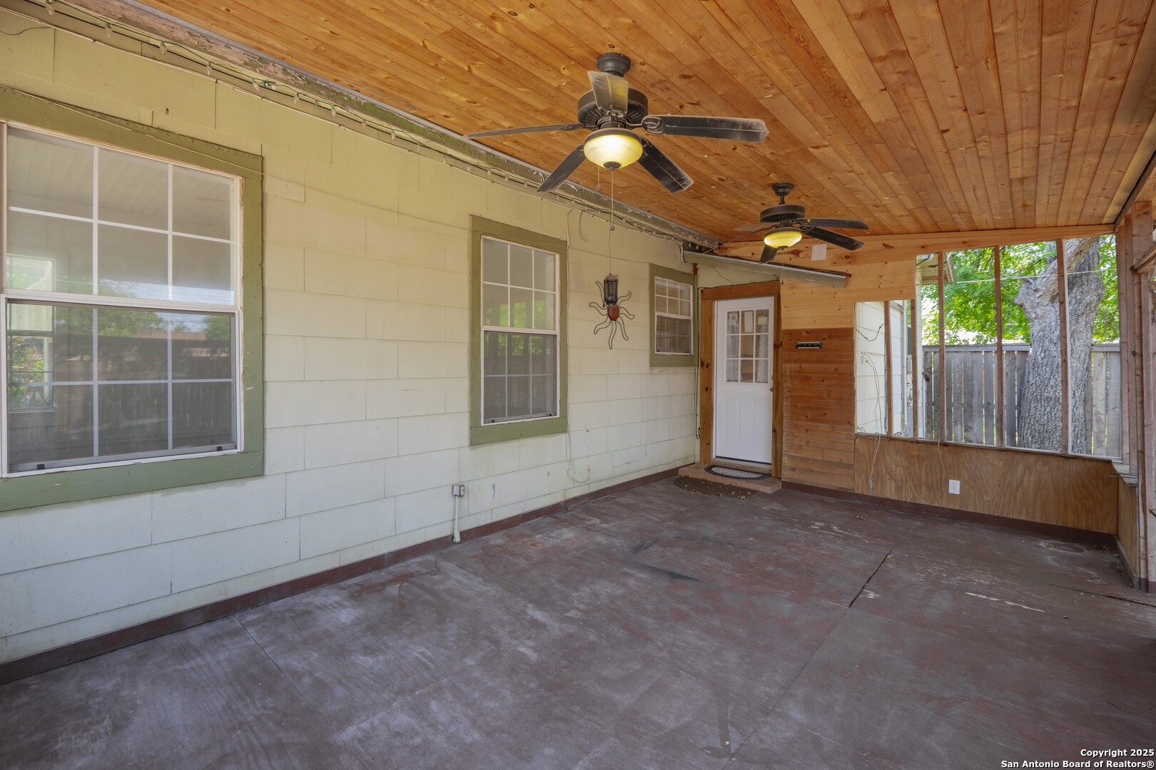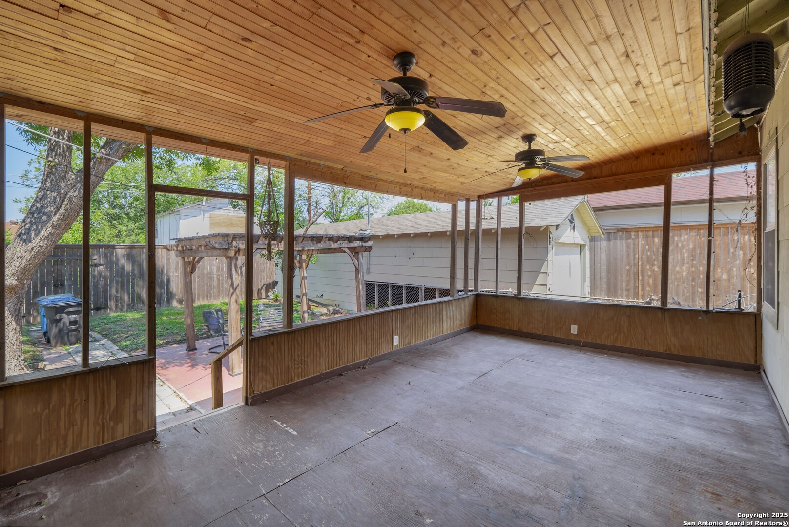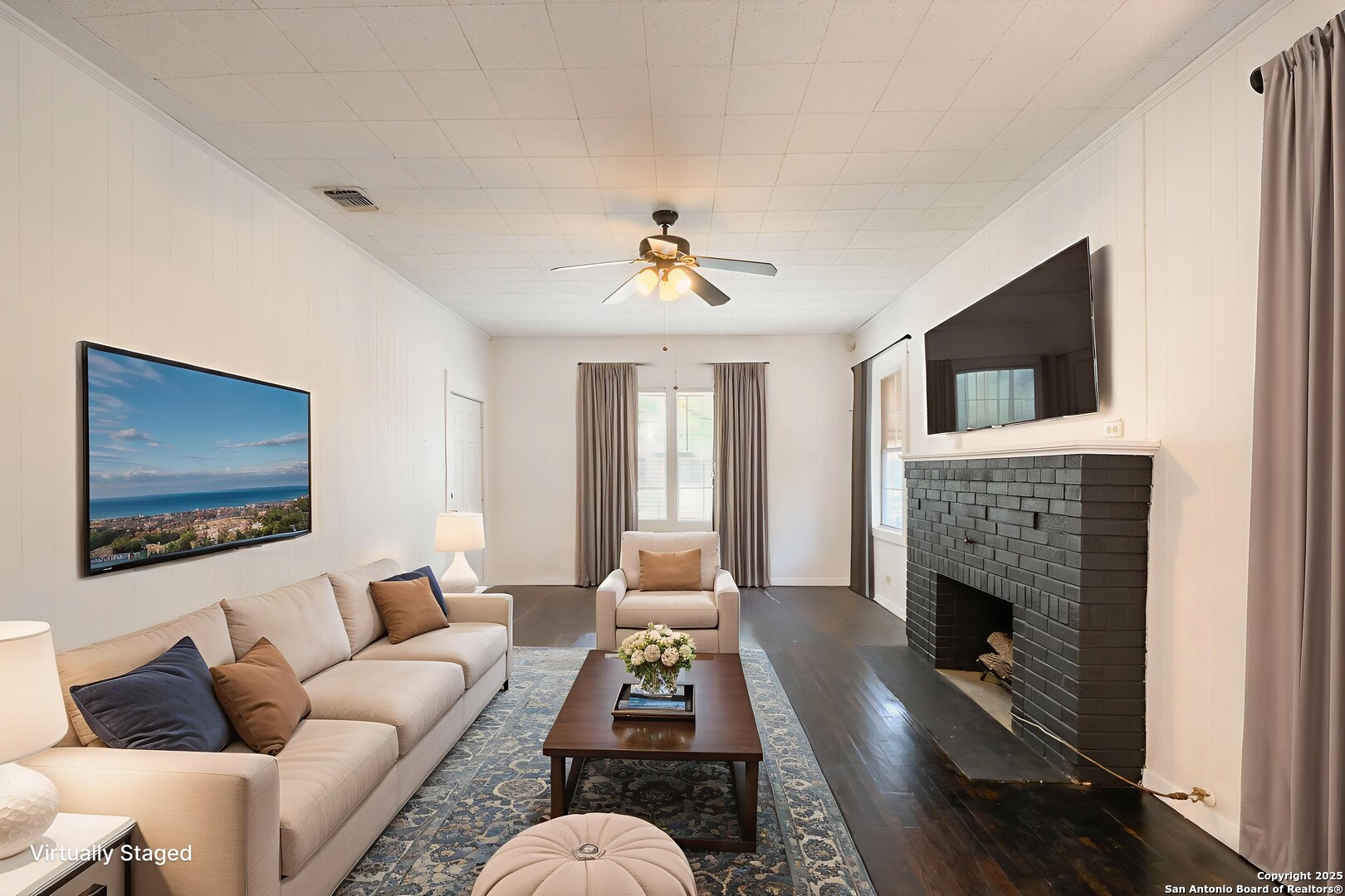 This vacant 3-bedroom, 1-bath home offers 1,518 sq. ft. of living space on a 0.17-acre gated lot, combining character with thoughtful updates. The interior features beautifully refinished wood floors that add warmth throughout, complemented by a newly installed stove. A fireplace that is both wood-burning and gas serves as a cozy focal point in the living area. Built on a pier-and-beam foundation, the home is equipped with natural gas for the stove, hot water tank, and furnace, while everything else runs on electric. A covered front porch, covered patio, and pergola at the back extend the living space outdoors, providing multiple spots for relaxation and entertaining. A detached 1-car garage adds additional storage or parking flexibility. The lot is fully secured with a perimeter fence - wooden fencing at the side and back, paired with a wrought iron fence and gate at the front for both privacy and curb appeal. Located just a few minutes from Eloise Japhet Elementary School and H-E-B Plus, this property also offers excellent accessibility. Sitting only a few blocks east of I-37, you'll have direct access to downtown San Antonio within minutes, making this home a convenient and desirable option.