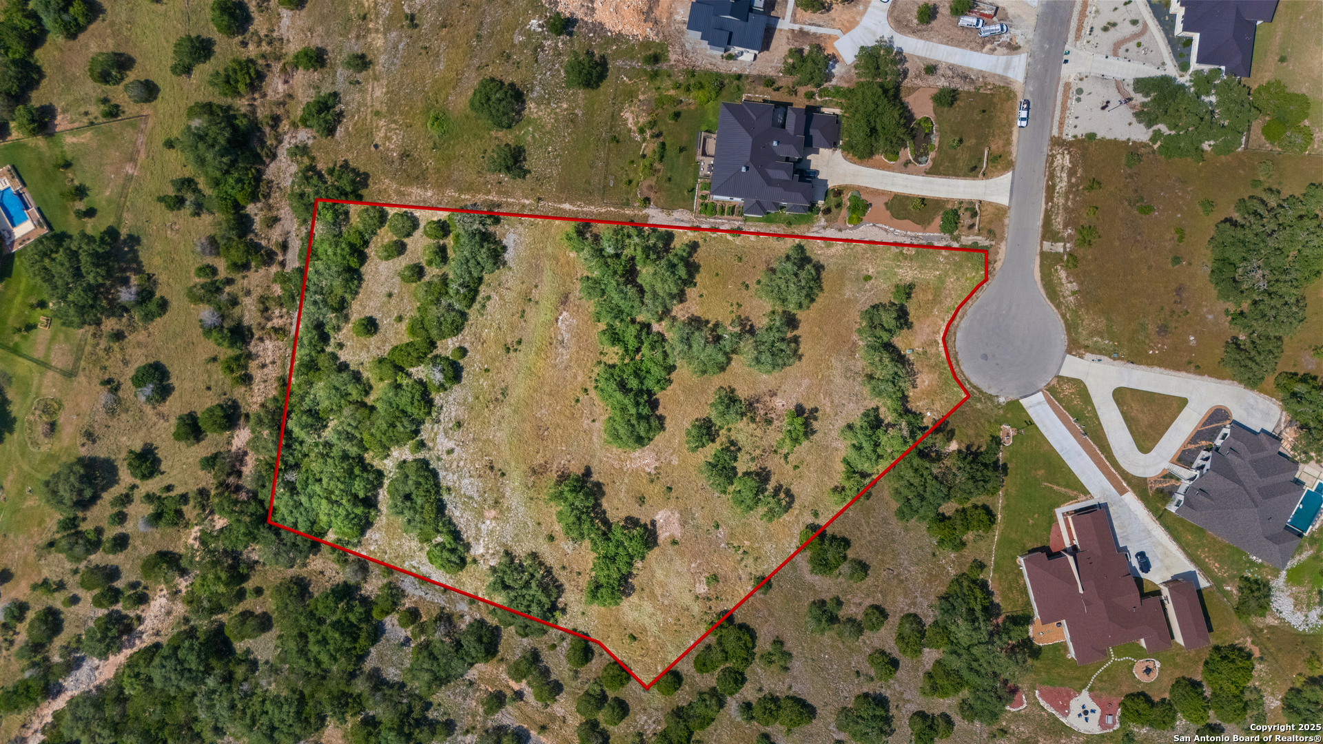 Discover the perfect canvas for your dream home in the prestigious community of Vintage Oaks in New Braunfels. Nestled on 3.33 expansive acres, this stunning homesite offers an ideal blend of privacy, mature oak trees, and Hill Country views. Situated on a quiet, cul-de-sac street, the property backs to a lush greenbelt, providing added seclusion and a serene natural backdrop. With multiple build sites to choose from, you'll have the flexibility to create the layout and orientation that best suits your vision-whether that's a sprawling one-story estate or a custom hilltop retreat. Enjoy access to world-class amenities including multiple pools, a fitness center, clubhouse, sports courts, and over 5 miles of scenic trails. Located just minutes from New Braunfels, Canyon Lake, and an easy drive to both Austin and San Antonio, this property combines luxury living with the relaxed pace of the Hill Country.