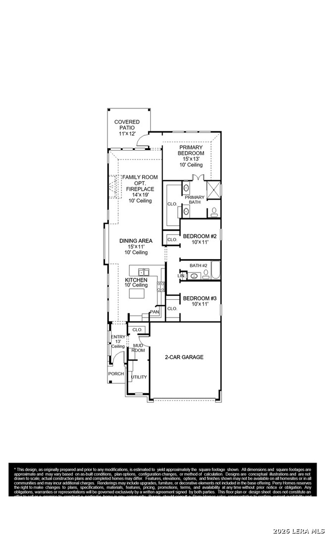 Welcoming entry extends to the kitchen, dining area and family room. Island kitchen with built-in seating space, a 5-burner gas cooktop and a corner walk-in pantry. Family room with a wood mantel fireplace and wall of windows opens to dining area with large window. Primary suite with wall of windows. Primary bath offers a French door entry, dual vanities, walk-in closet and a glass enclosed shower. Secondary bedrooms with walk-in closets complete this cozy design. Landscaping features a 6-zone sprinkler system. Utility room and mud room just off the two-car garage.