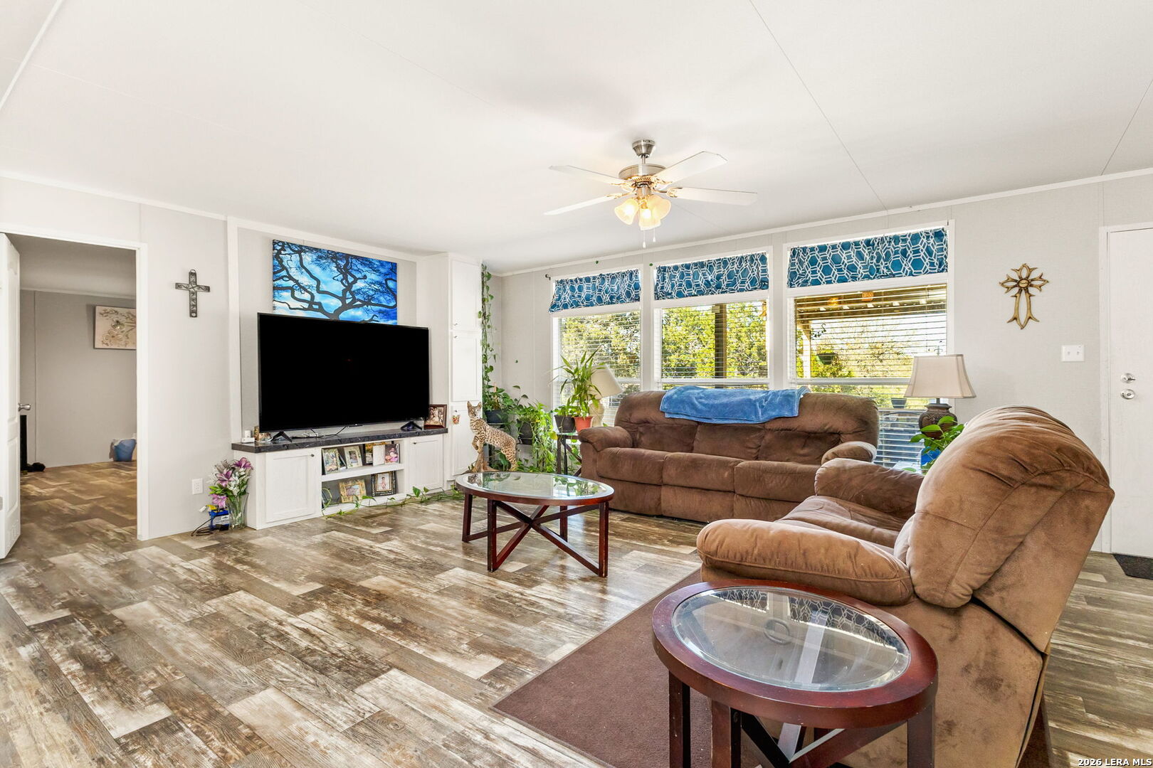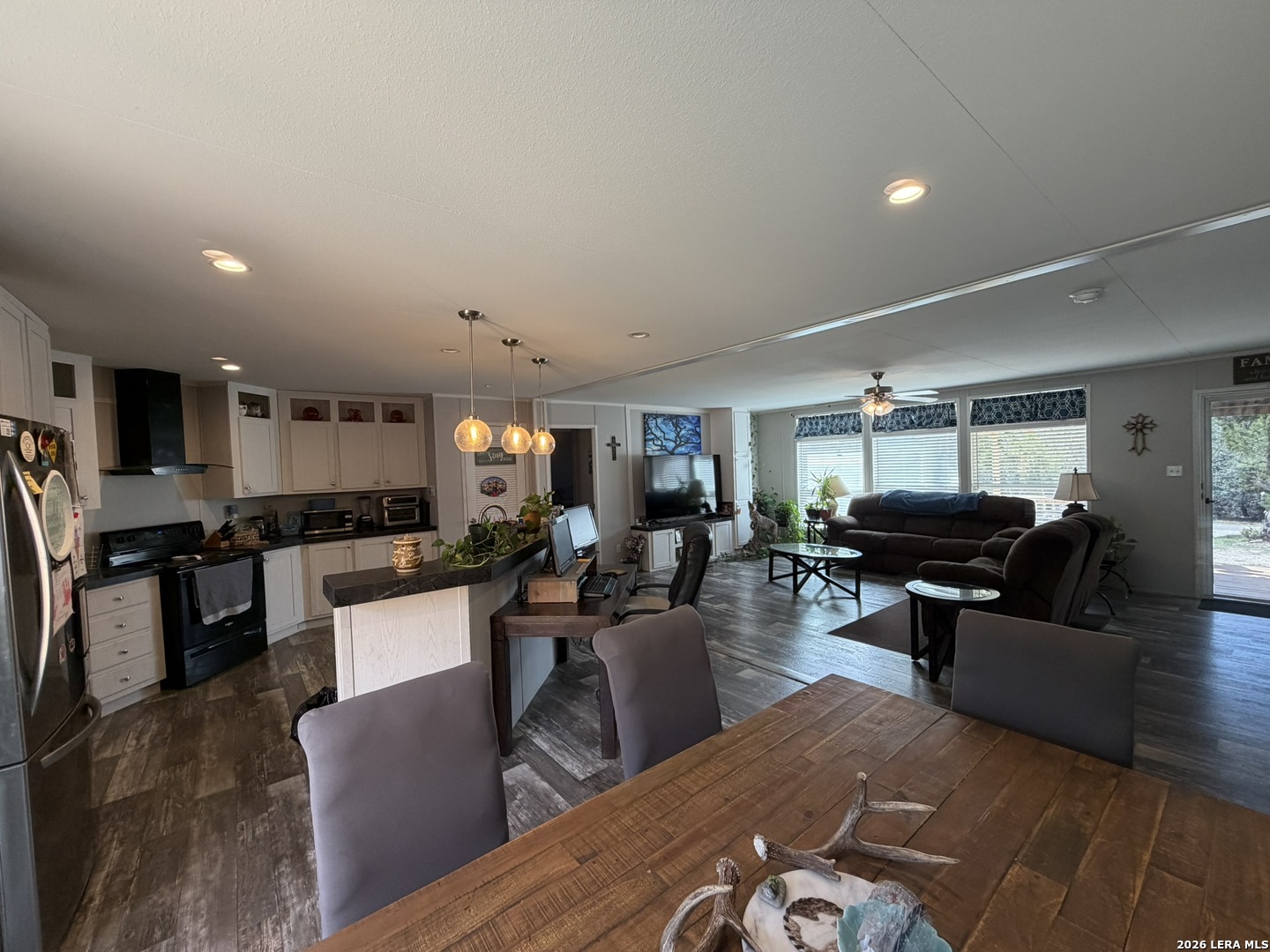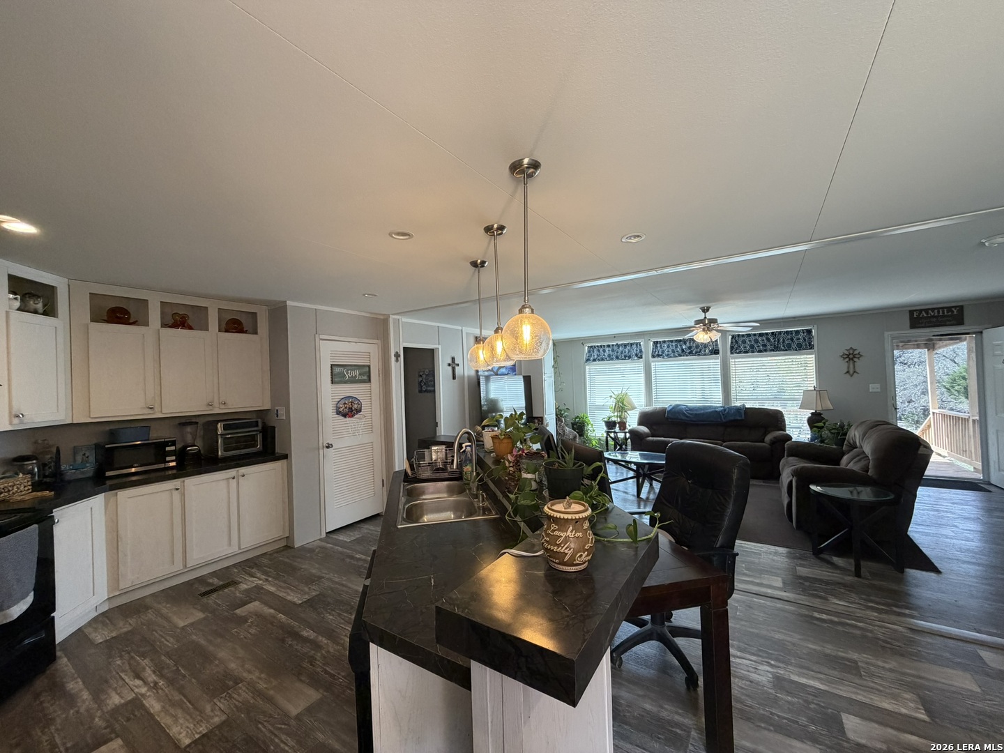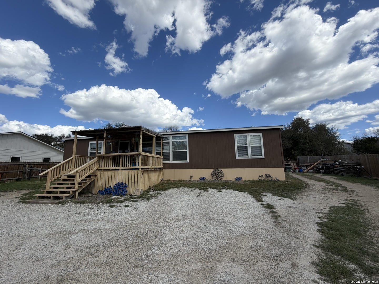 Come home to over half an acre located in Deer Meadows. This 2020 manufactured home is permanently fixed to a concrete slab. Open floor plan and inviting kitchen inside, as well as no carpet! The backyard has beautiful oak trees, plenty of room to plant a garden, or add a workshop. Feel free to add a carport or garage. RV/Boat parking is allowed, and the neighborhood has a clubhouse, park, and swimming pool. No city tax, Comal ISD, and this home will allow for government loans.