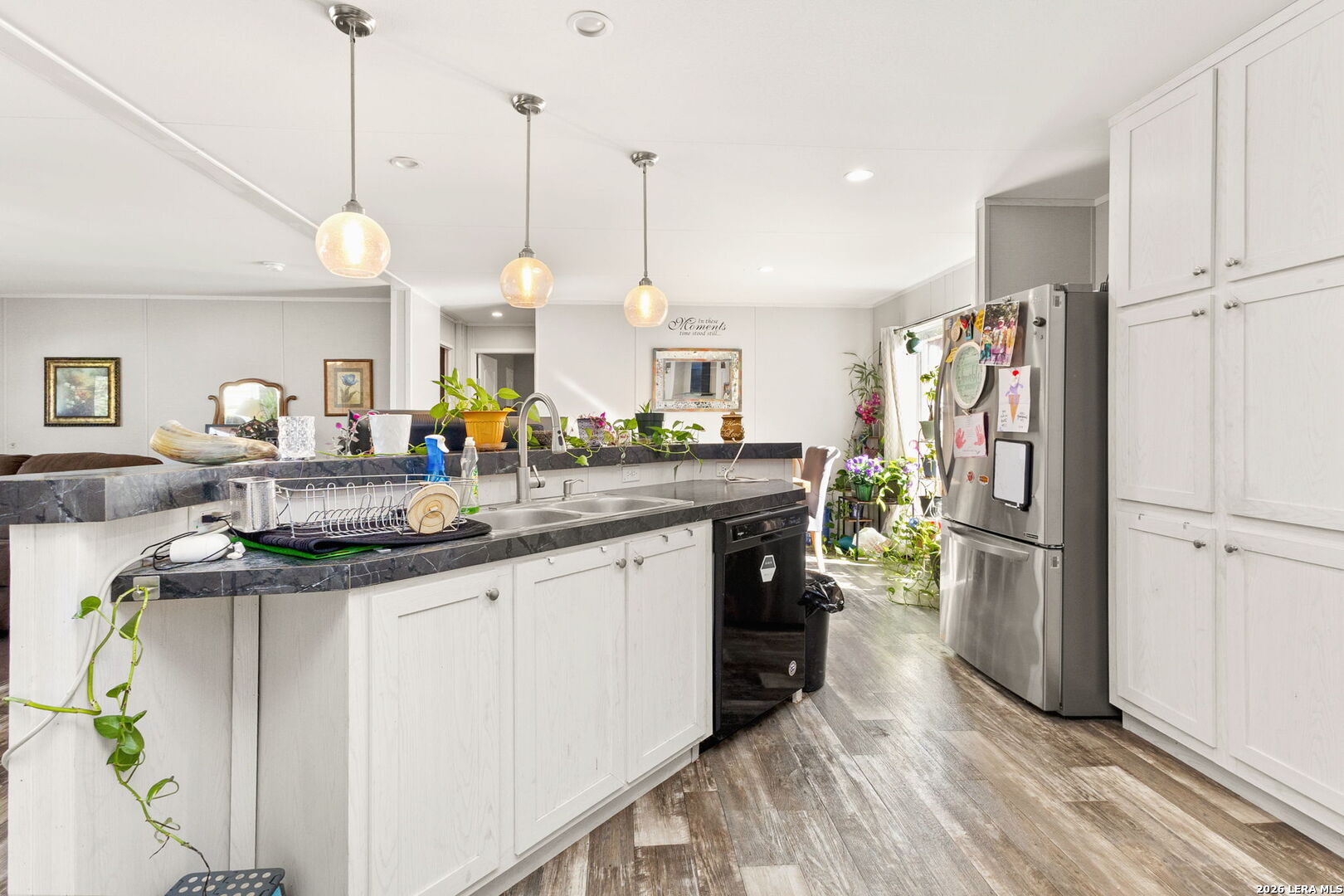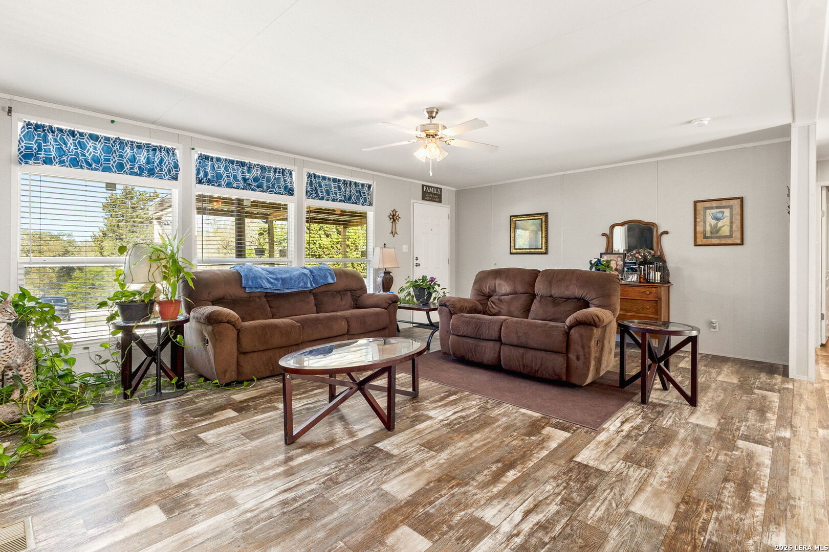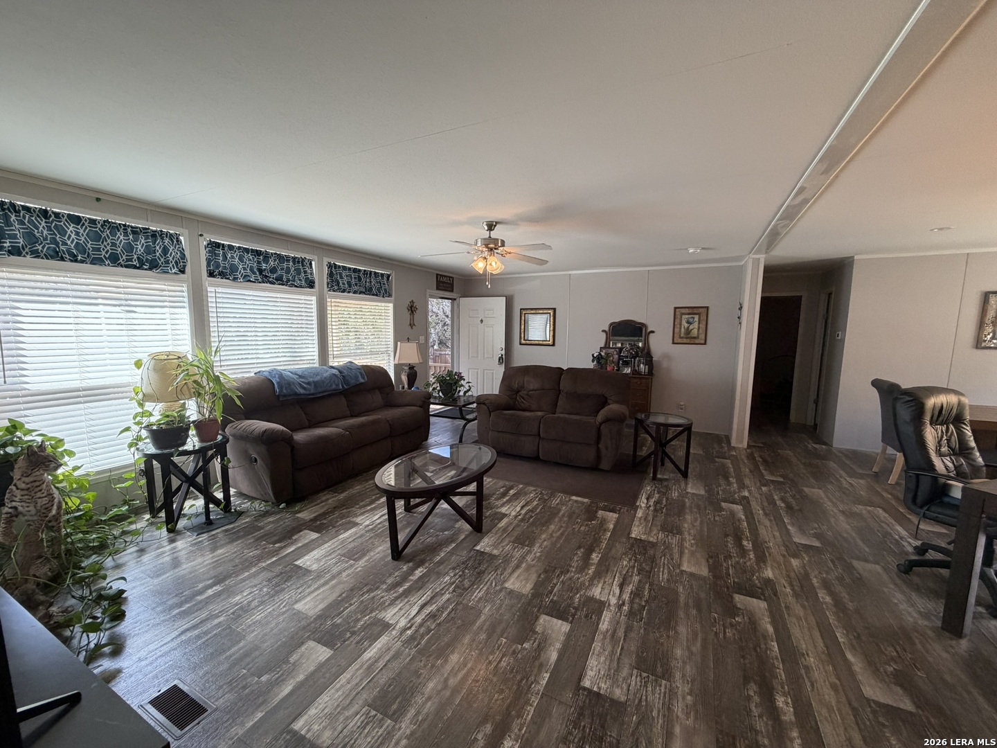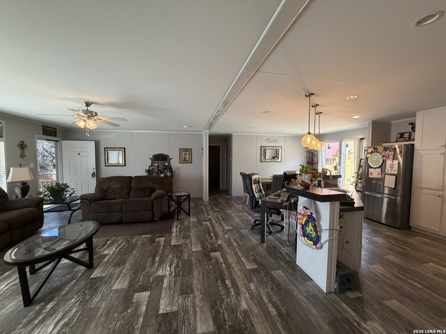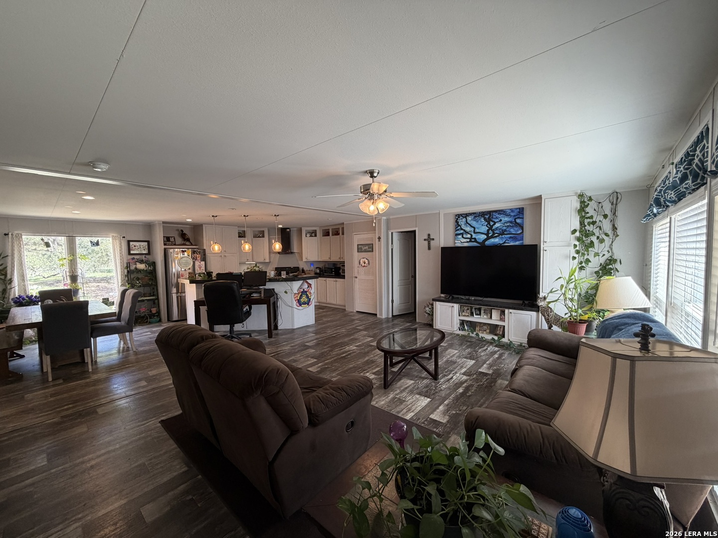 Come home to over half an acre located in Deer Meadows. This 2020 manufactured home is permanently fixed to a concrete slab. Open floor plan and inviting kitchen inside, as well as no carpet! The backyard has beautiful oak trees, plenty of room to plant a garden, or add a workshop. Feel free to add a carport or garage. RV/Boat parking is allowed, and the neighborhood has a clubhouse, park, and swimming pool. No city tax, Comal ISD, and this home will allow for government loans.