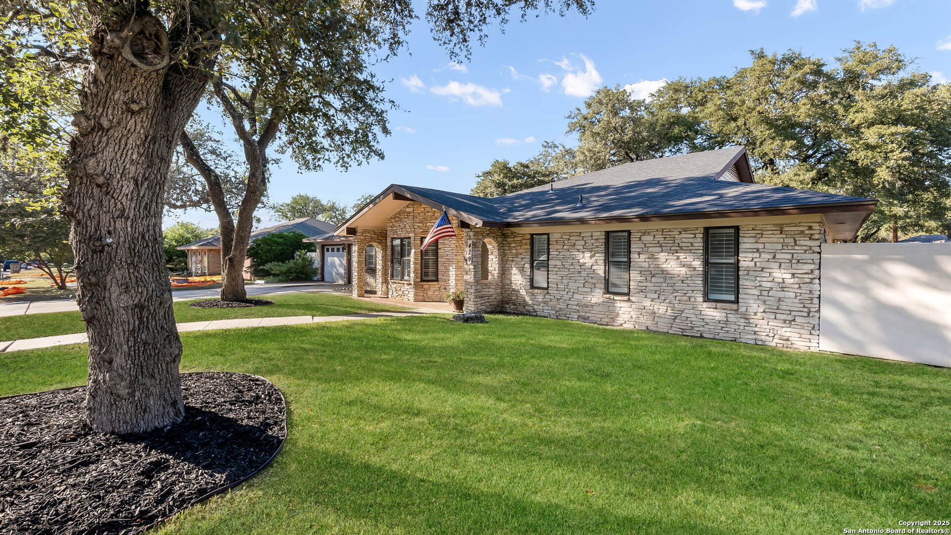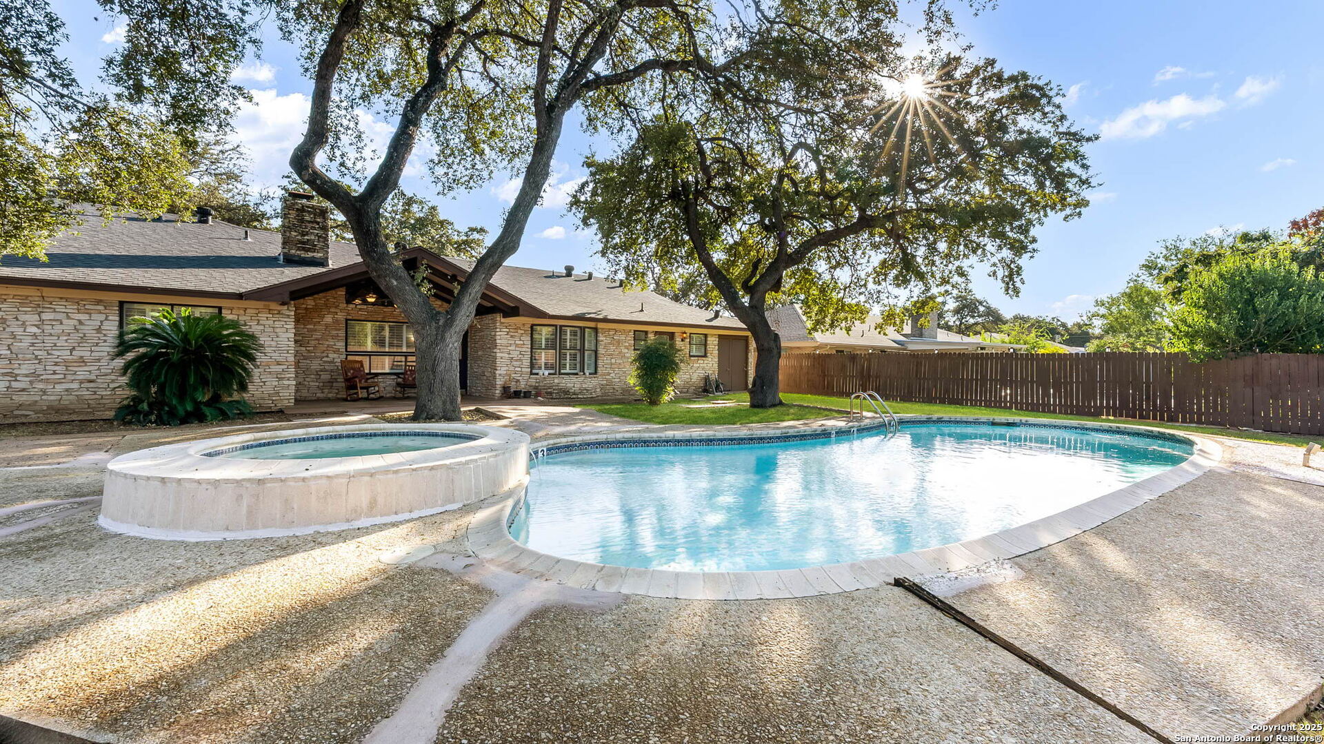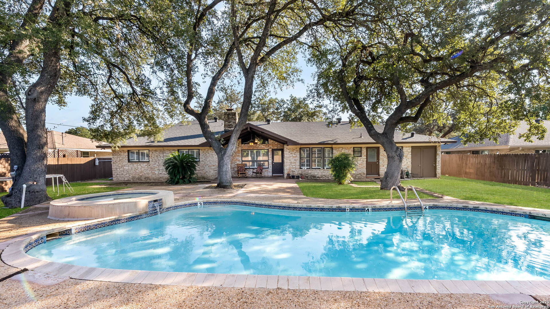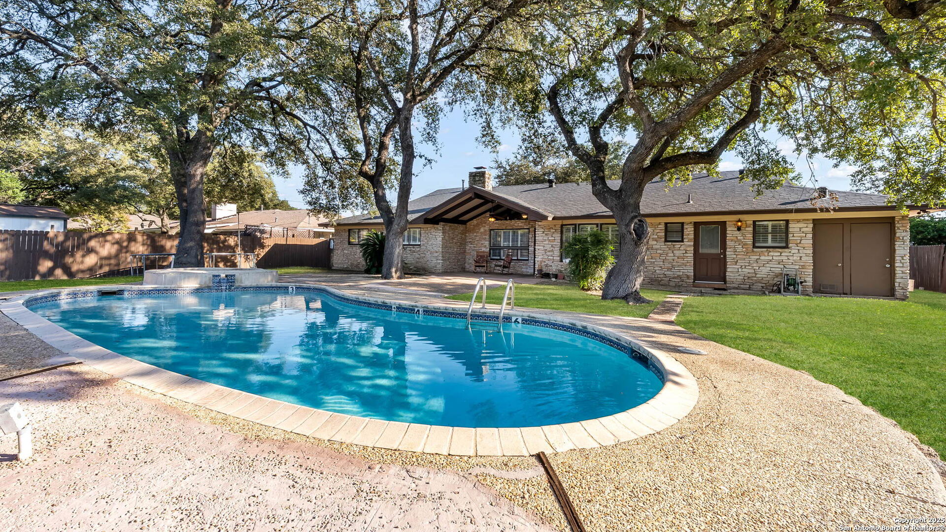 Welcome to your new chapter! Step into this beautifully updated mid-century ranch-style single-story home with a sparkling pool and spa in the heart of Windcrest. With 2,547 square feet of thoughtful design, this 4-bedroom, 2.5-bath retreat offers a perfect balance of open living, classic charm, and space to relax or entertain. The home features an airy layout with high ceilings, abundant natural light, and two spacious living areas, ideal for movie nights, gatherings, or quiet evenings by the fireplace. The open-flow kitchen includes a built-in breakfast nook/bar and spacious countertops, perfect for hosting family and friends. A oversized laundry room with a connecting half bath provides convenient access to the pool area. With newly replaced carpet that adds comfort and warmth throughout the bedrooms and living spaces. Outside, your private backyard oasis awaits with a pool, spa, and patio space, ideal for summer barbecues or relaxing mornings surrounded by mature trees and plenty of sunlight. This charming gem is located in Windcrest, where you'll enjoy nearby parks, golf course, walking trails, and easy access to shopping, dining, and major highways. This isn't just a house-it's the perfect place to start your new chapter. Come see why life feels better in Windcrest!