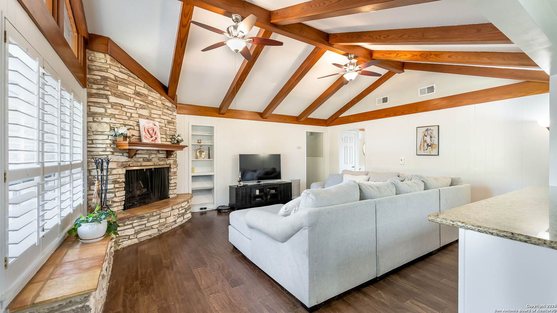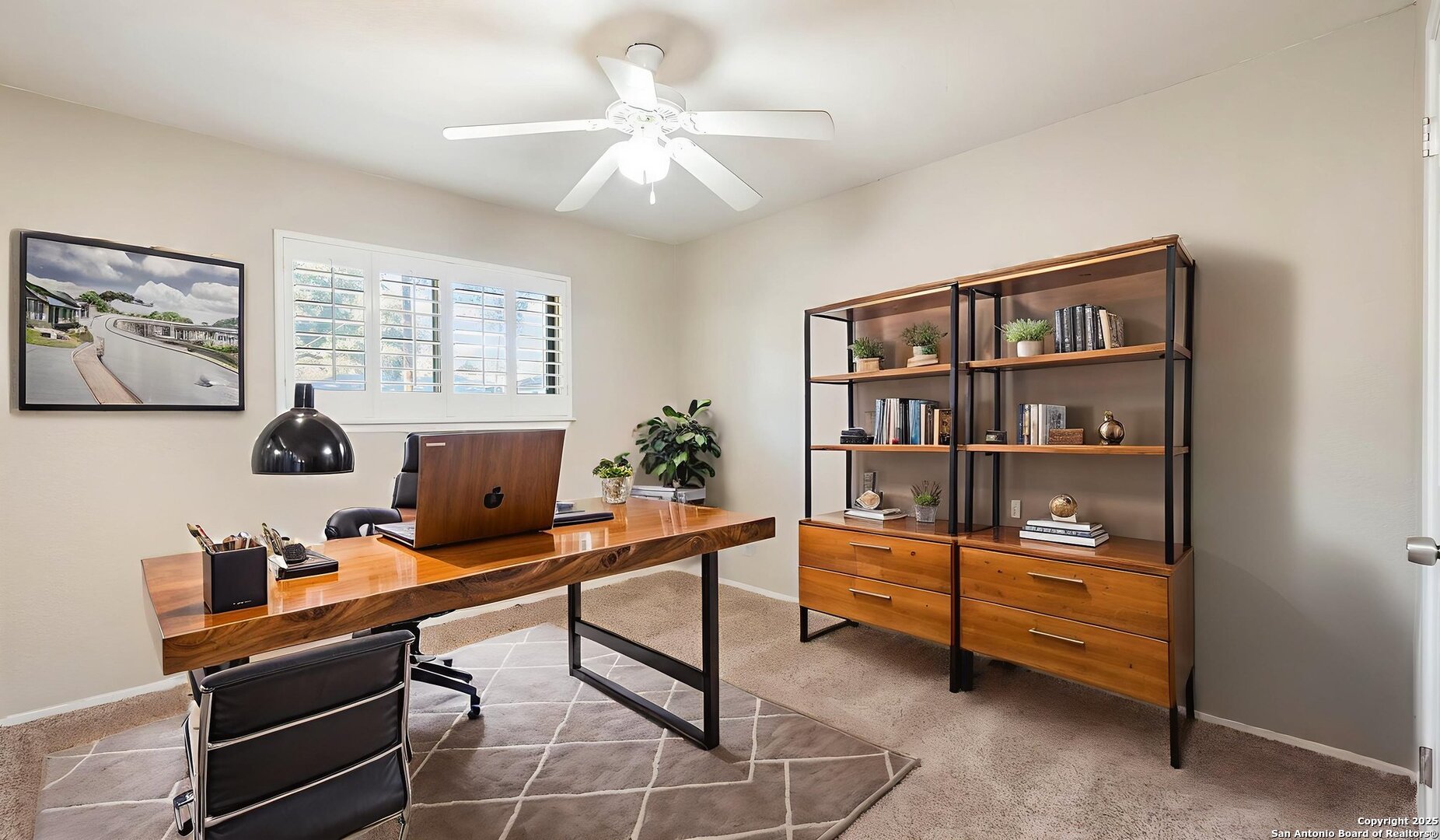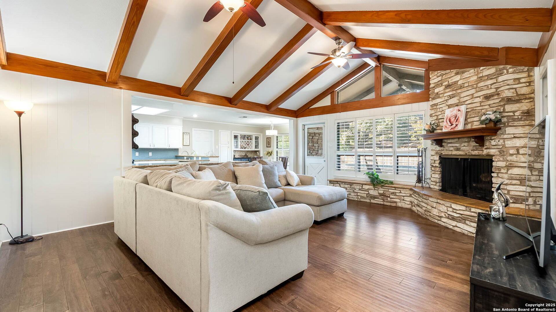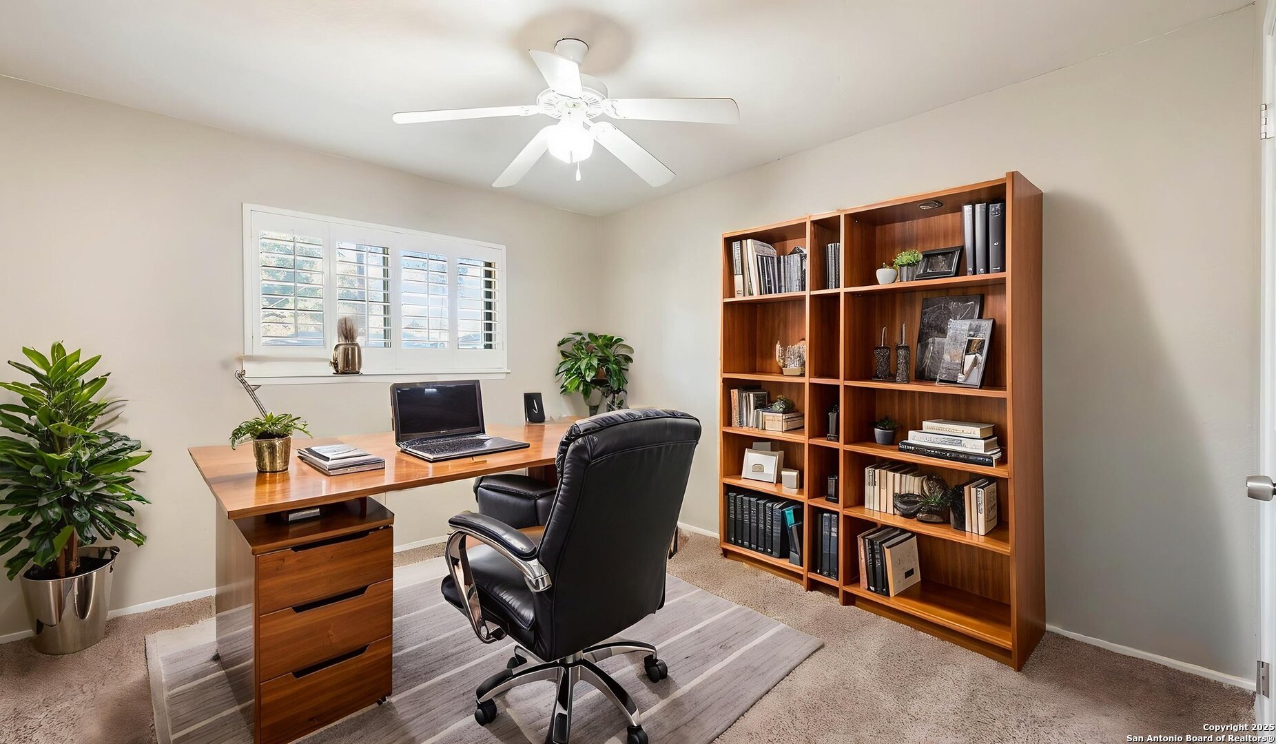 Welcome to your new chapter! Step into this beautifully updated mid-century ranch-style single-story home with a sparkling pool and spa in the heart of Windcrest. With 2,547 square feet of thoughtful design, this 4-bedroom, 2.5-bath retreat offers a perfect balance of open living, classic charm, and space to relax or entertain. The home features an airy layout with high ceilings, abundant natural light, and two spacious living areas, ideal for movie nights, gatherings, or quiet evenings by the fireplace. The open-flow kitchen includes a built-in breakfast nook/bar and spacious countertops, perfect for hosting family and friends. A oversized laundry room with a connecting half bath provides convenient access to the pool area. With newly replaced carpet that adds comfort and warmth throughout the bedrooms and living spaces. Outside, your private backyard oasis awaits with a pool, spa, and patio space, ideal for summer barbecues or relaxing mornings surrounded by mature trees and plenty of sunlight. This charming gem is located in Windcrest, where you'll enjoy nearby parks, golf course, walking trails, and easy access to shopping, dining, and major highways. This isn't just a house-it's the perfect place to start your new chapter. Come see why life feels better in Windcrest!