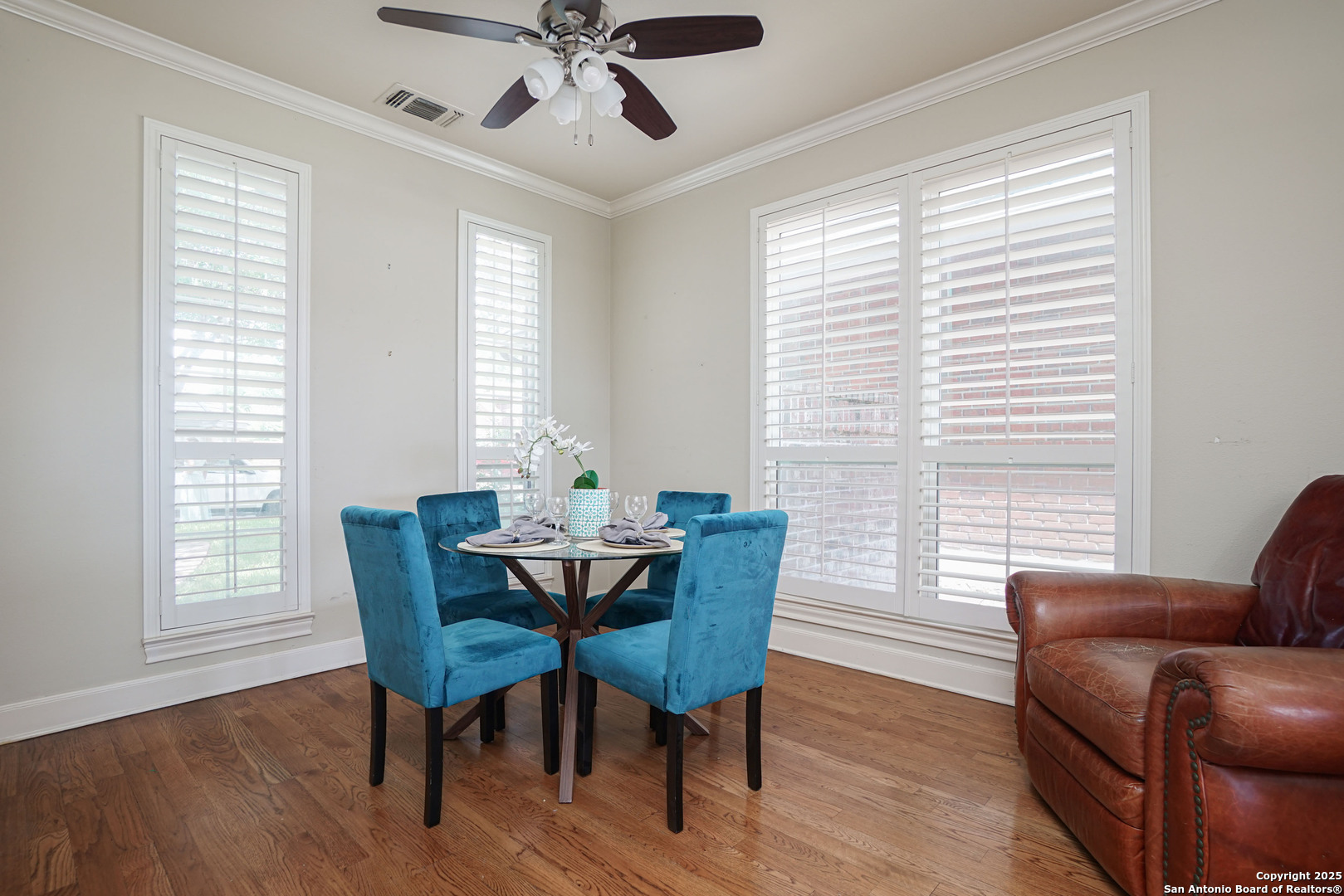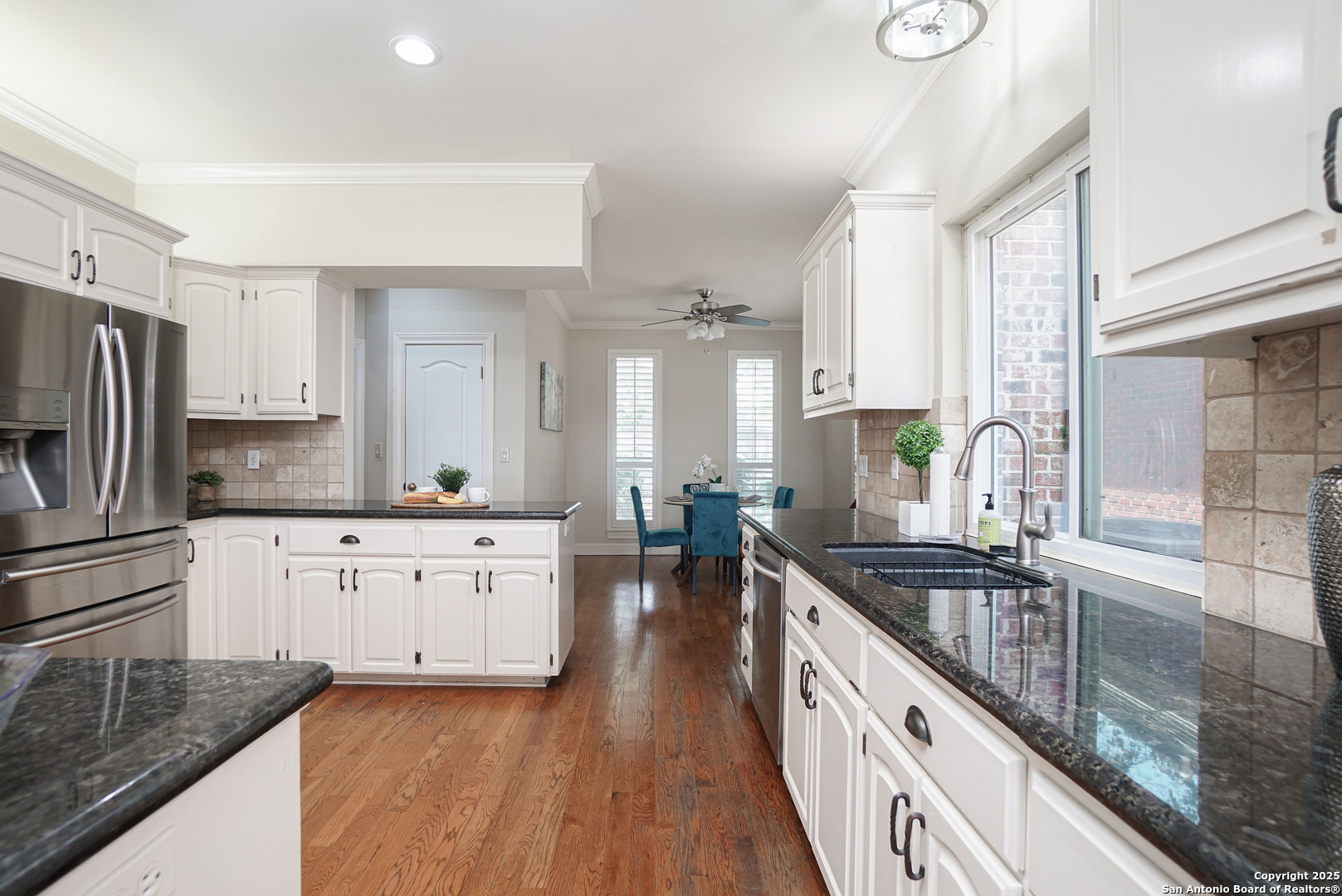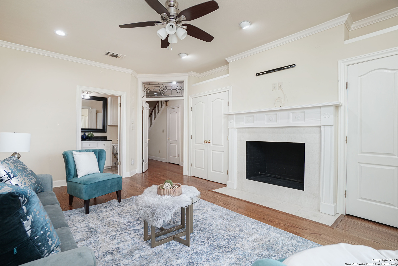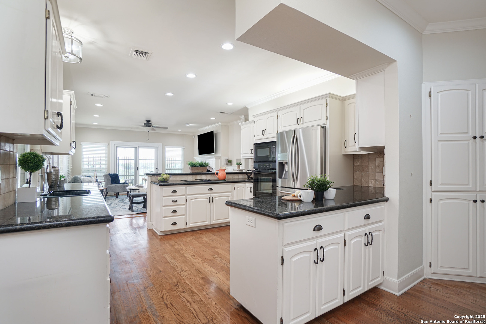 Welcome to 43 Longsford, an estate sale opportunity with stunning golf course views in one of San Antonio's most sought-after locations. This charming property is being sold as-is, offering incredible potential for buyers looking to personalize a home in a premier setting. Priced under $1 million, this spacious estate features hardwood floors, two generous living areas, and two dining spaces-one of which can flex as a home office. Large bedrooms, an open layout, and panoramic views of the fairway make this a truly special find. Ideally located near The Quarry, the airport, and top-tier dining and shopping. Don't miss your chance to own this rare golf course estate with endless possibilities.