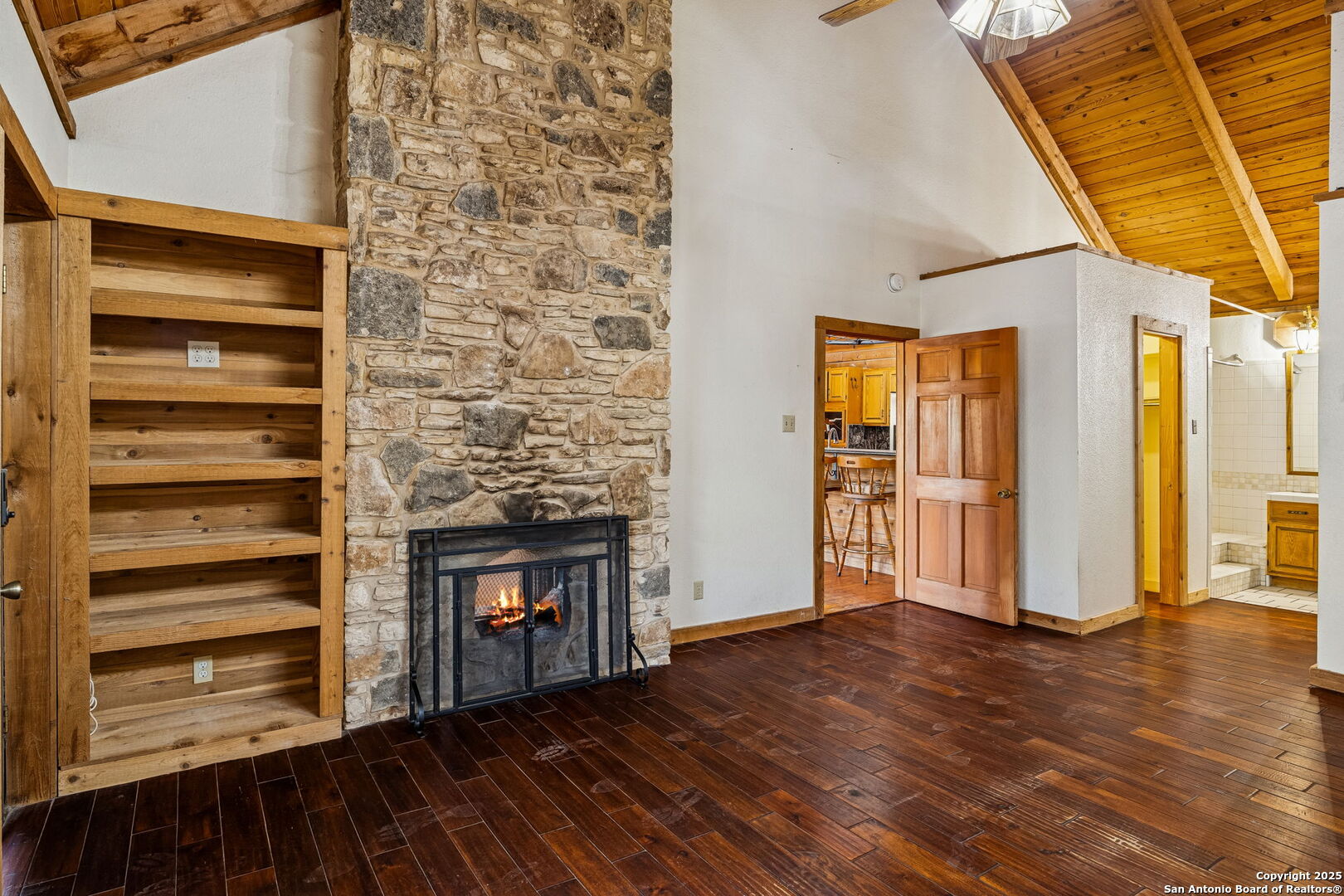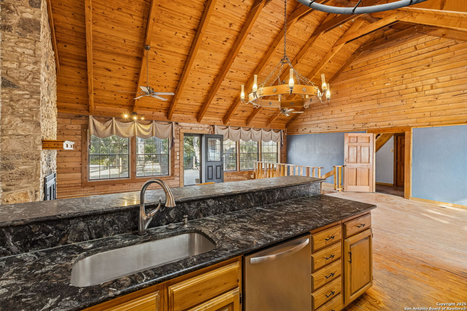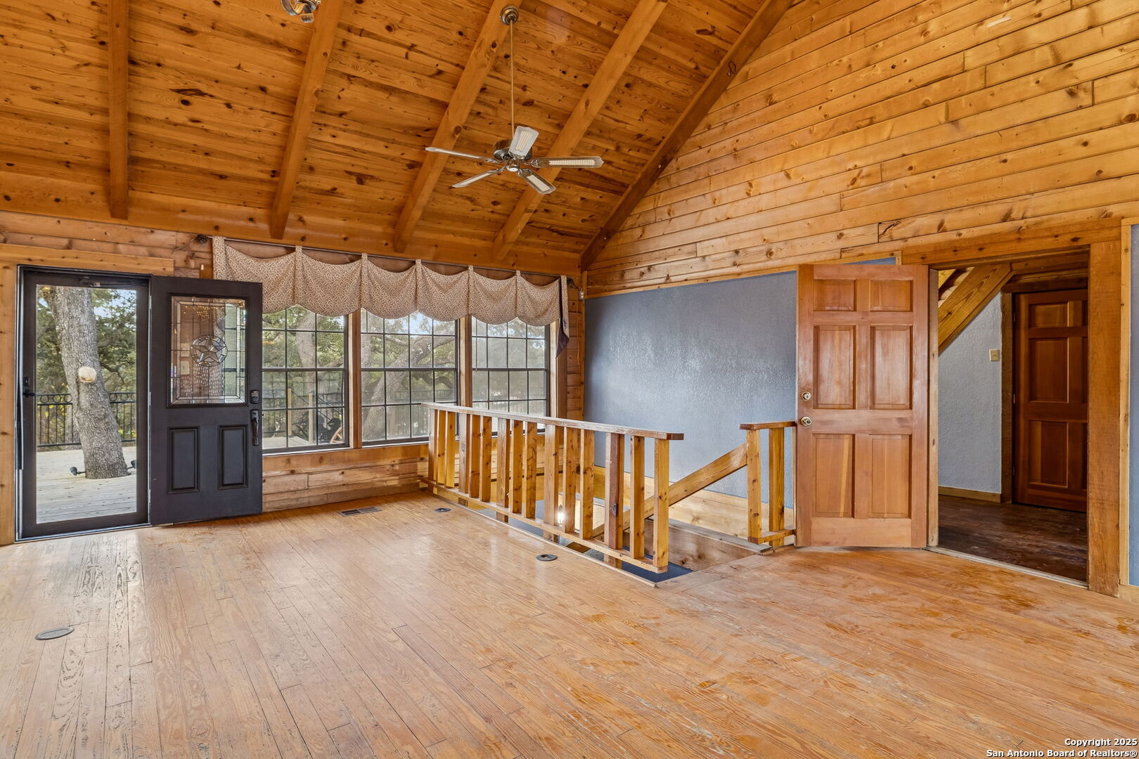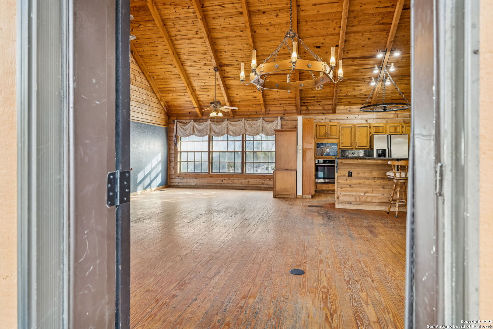 Turn-key equestrian facility in Bulverde, TX, offering an exceptional combination of professional horse amenities and resort-style living. The property features a main barn with 11 stalls (concrete aisle, office, tack room, 3/4 bath), a separate barn wing with 7 stalls, large tack room and foaling stall, plus additional stalls with permanent runs. Equestrian improvements include a covered arena (88' x 120') with sprinkler system and excellent footing, an uncovered arena (88' x 50'), large covered round pen, extended covered paddock area, multiple turnouts, fencing, gates, and waterers. A two-story, climate-controlled viewing lounge offers approx. 1,800 sq ft. Additional improvements include a 1,100 sq ft 2-bedroom apartment, hay barn, shavings building, trailer building, tool shed, multiple portable shelters, dog runs, RV/septic infrastructure, and paved driveway. Main log cabin-style residence featuring an open floor plan with three bedrooms, two and a half bathrooms, a large converted garage, and a loft. Enjoy outdoor living with a screened-in room over the pool, outdoor kitchen, Spa, water feature, custom deck and railings. Rare opportunity to own a fully developed, income-ready horse property with extensive infrastructure.