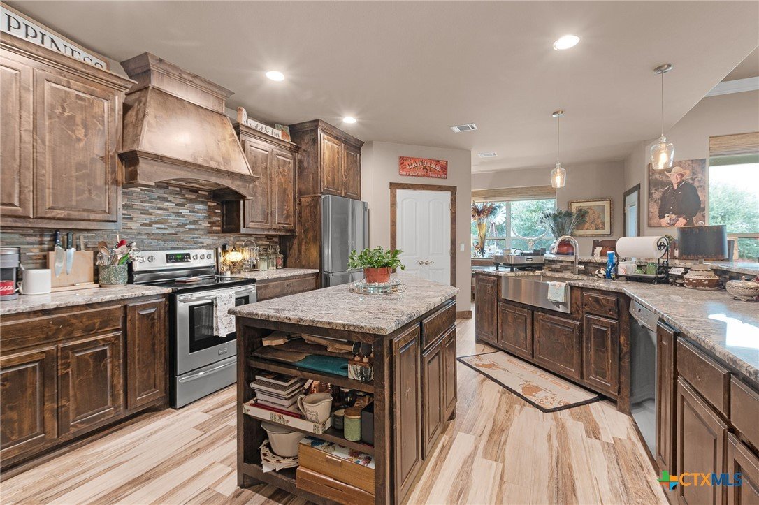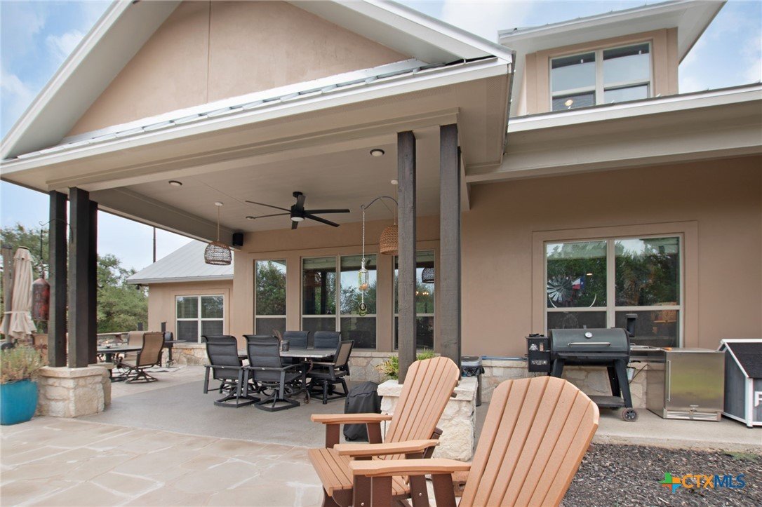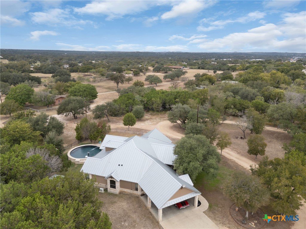 This stunning custom-built stone and stucco home sits gracefully on 2 peaceful acres, just outside the city limits of Lampasas yet only one minute from town. Built in 2018 with quality craftsmanship and top-tier finishes, this home showcases exceptional design and attention to detail throughout. The inviting split-floor plan features 3 bedrooms, 2.5 baths, and a media room, with an additional upstairs room that can serve as a game room or fourth bedroom with its own bath. Soaring 10- and 12-foot ceilings create an open, airy feel complemented by remarkable wood, stone, and granite finishes. The kitchen is a true showpiece—open to the living area for seamless entertaining, complete with custom cabinetry, granite countertops, stainless steel appliances, and a spacious walk-in pantry. The luxurious master suite offers an impressive bath and an oversized closet that must be seen to be believed. Every detail, from the flooring to the fixtures, reflects thoughtful design and superior quality. Outside, the beautifully treed 2-acre lot provides privacy and serenity. Enjoy outdoor living on the covered back patio overlooking the sparkling stone pool—perfect for relaxing or entertaining guests. Experience the best of both worlds: quiet country living with unbeatable convenience to town amenities. This extraordinary property truly has it all!