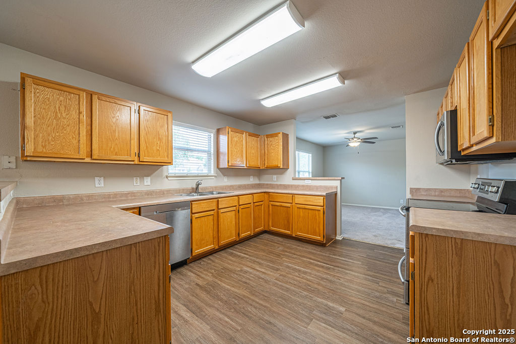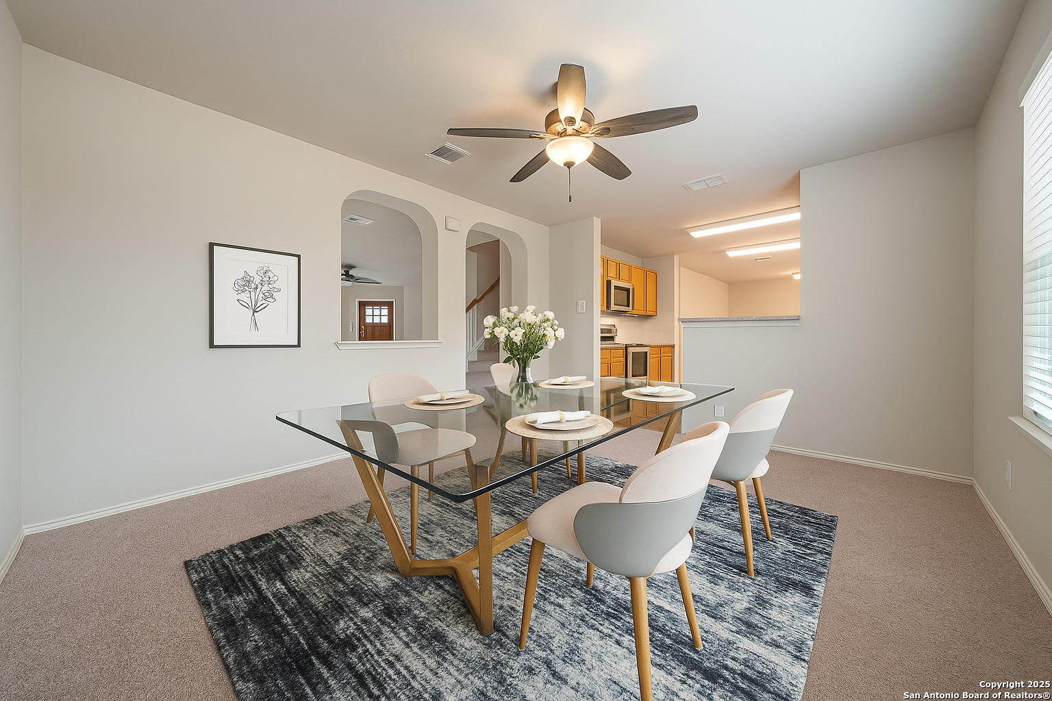 RARE GATED COMMUNITY! Spacious charmer in Woodlake Park seeks new owner! This cozy two story layout features a bright living room with a cozy fireplace, a formal dining area, and a breakfast nook off the kitchen. Upstairs offers a versatile loft/lounge and a private primary suite with a walkin closet. Enjoy the patio and generous backyard with mature trees, perfect for relaxing or entertaining. Conveniently located near Randolph AFB, shopping, dining, and major highways. Schools are zoned in Judson ISD with award winning academic and athletic programs to give children the edge to succeed. Don't delay, schedule your visit today... will not last.