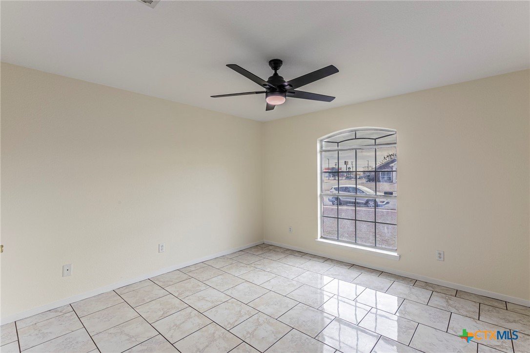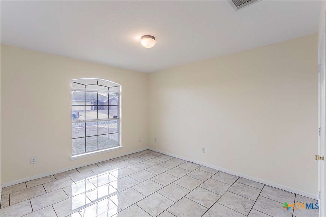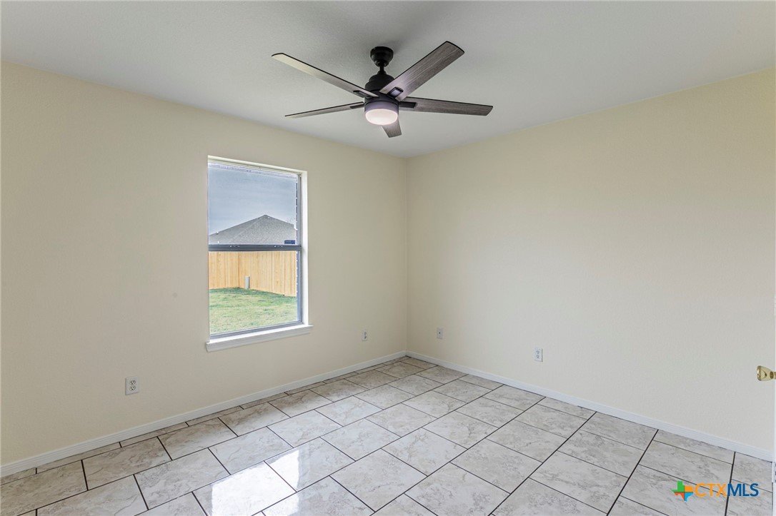 Move-in ready four-bedroom, two-bath single-story brick home featuring ceramic tile throughout, a brand-new roof, and fresh interior and exterior paint. This beautifully refreshed home offers an open and functional layout designed for comfortable everyday living. Ceramic tile flooring spans the entire home, providing durability, easy maintenance, and a clean, cohesive look. The spacious living area is filled with natural light and highlighted by a classic brick fireplace, creating a warm and inviting focal point. Vaulted ceilings and ceiling fans enhance the sense of space and comfort. The kitchen features ample cabinetry, generous counter space, tiled backsplash, and a practical layout that opens seamlessly to the dining area—ideal for entertaining or daily meals. The adjacent dining space overlooks the backyard and provides easy access to outdoor living. The primary suite serves as a private retreat with an en-suite bathroom offering a dual-sink vanity, updated fixtures, soaking tub, separate shower, and abundant storage. Three additional bedrooms provide flexibility for guest rooms, a home office, or hobby space, all supported by a well-appointed secondary bathroom. Recent updates include new interior and exterior paint and a new roof, adding peace of mind and enhancing curb appeal. Outside, the fully fenced backyard features a covered patio—perfect for outdoor dining, entertaining, or relaxing. The generous yard offers space for pets, play, or future personalization. Additional highlights include a two-car garage, durable brick exterior, established neighborhood setting, and convenient access to schools, shopping, dining, and major roadways. This four-bedroom, two-bath home combines thoughtful updates, low-maintenance finishes, and outdoor space—an excellent opportunity for homeowners or investors alike. Schedule your private showing today.