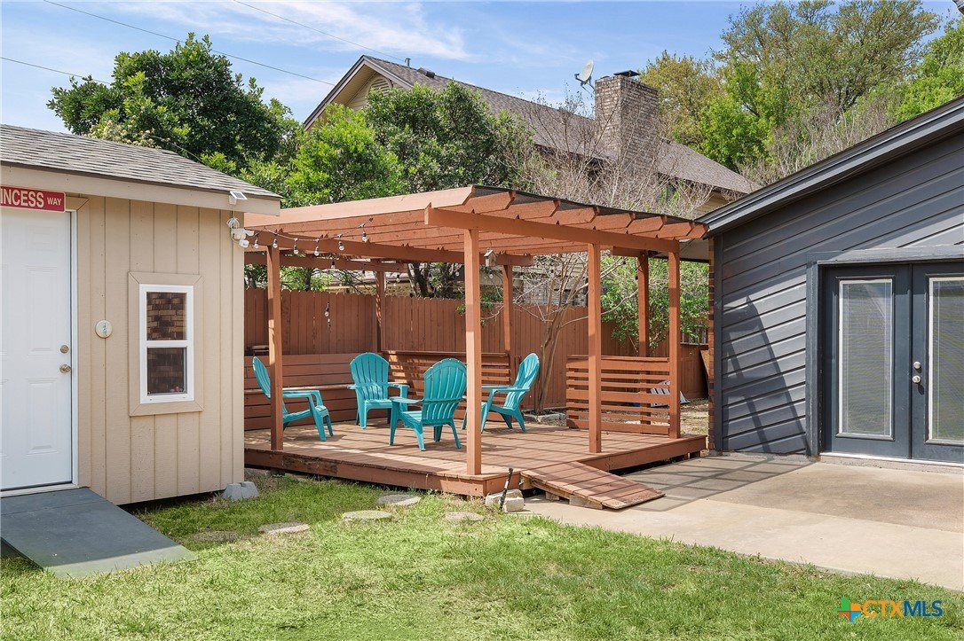 STUNNING!! A Contemporary-style home located in the heart of South Temple. 3 Bedrooms, 2 bathrooms PLUS a study or flex space. This home features timeless details throughout including beautifully designed tile work, gorgeous stained beams, skylights, a floor to ceiling white bricked fireplace, modern cabinetry, concrete countertops, an induction cook top and an open layout with tall, vaulted ceilings. Other Features include a spacious backyard with a beautiful decked pergola, perfect for entertaining. Located in a quiet cul-de-sac in a neighborhood full of mature trees. Minutes from Scott & White Hospital, VA, Restaurants, and shopping! Schedule your showing today.
