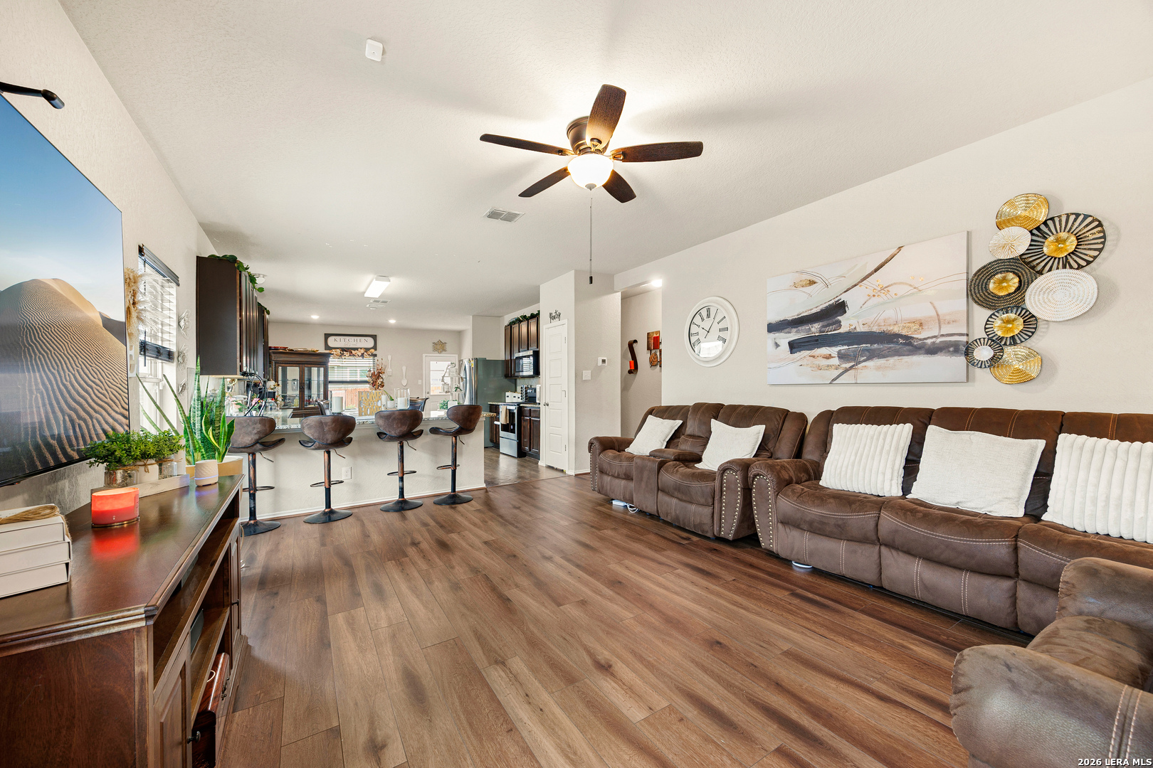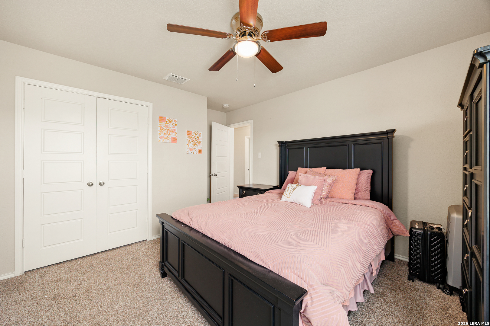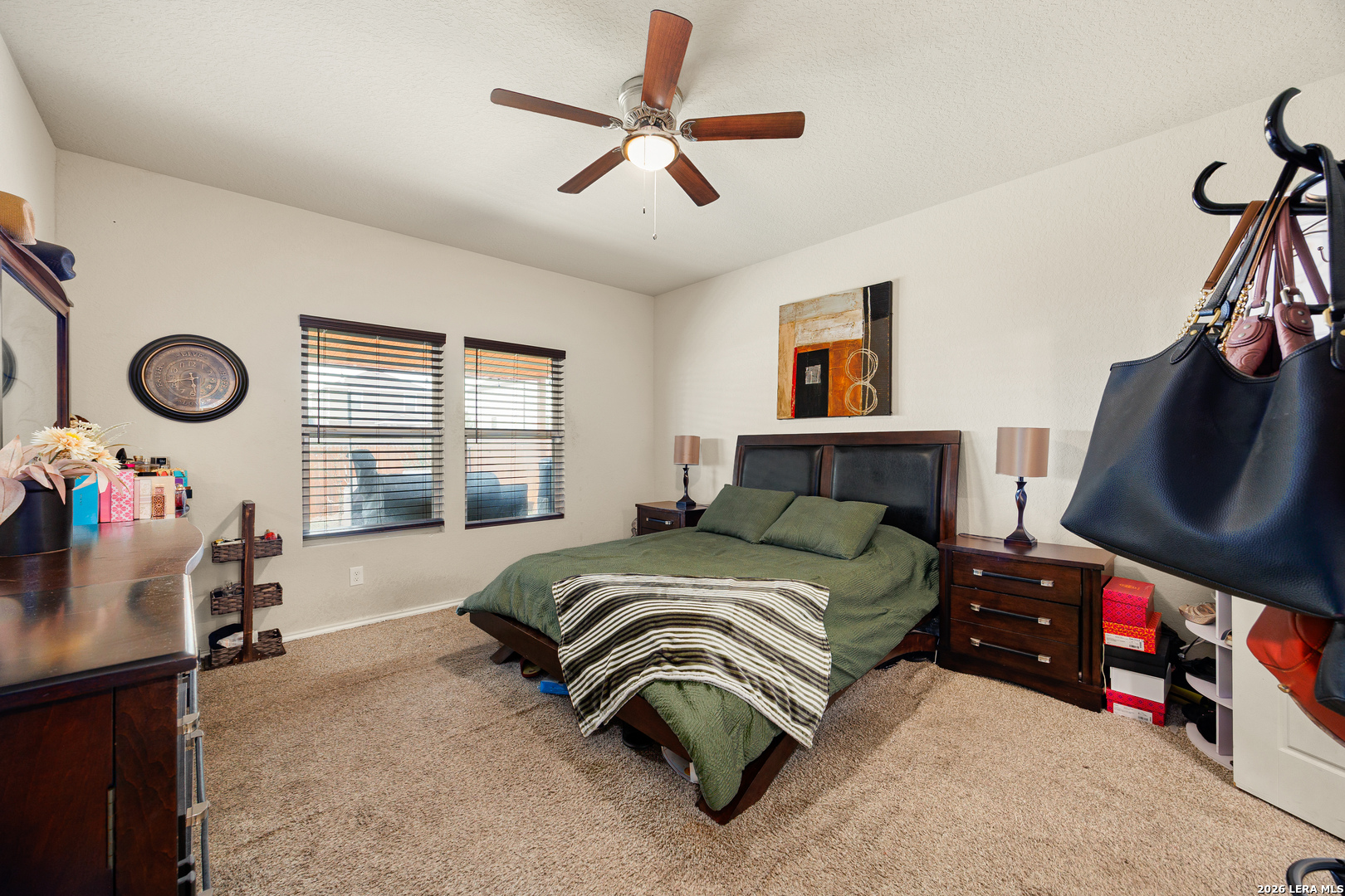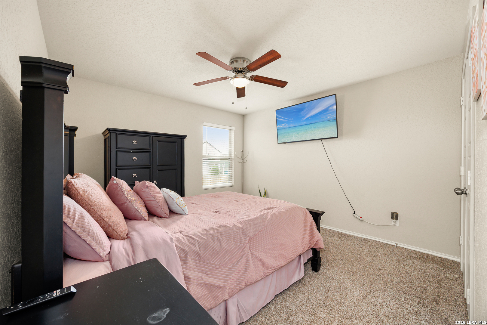 This 5-bedroom, 3.5-bath home in the desirable Millican Grove subdivision offers practical, modern living and strong value. The open floor plan creates a bright, welcoming living area that flows into a large dining space-ideal for everyday living and casual entertaining. The kitchen is generous in size, with a breakfast bar, stainless steel appliances, and plenty of cabinetry and counter space to handle meal prep and storage. The first-floor primary suite provides privacy and convenience, with ample room for a king bed and comfortable furnishings. Upstairs you'll find four well-sized secondary bedrooms and a flexible loft area that works well as a game room, home office, or media space. The backyard includes a covered patio, lawn, and privacy fence-an easy outdoor space for relaxing or play. The garage includes a mini-split unit for keeping the heat down, and the solar panel system helps reduce energy costs and supports long-term sustainability. Convenient to I-10 and Loop 1604, the home offers quick access to amenities shopping, dining, and everyday necessities. Book your tour today!