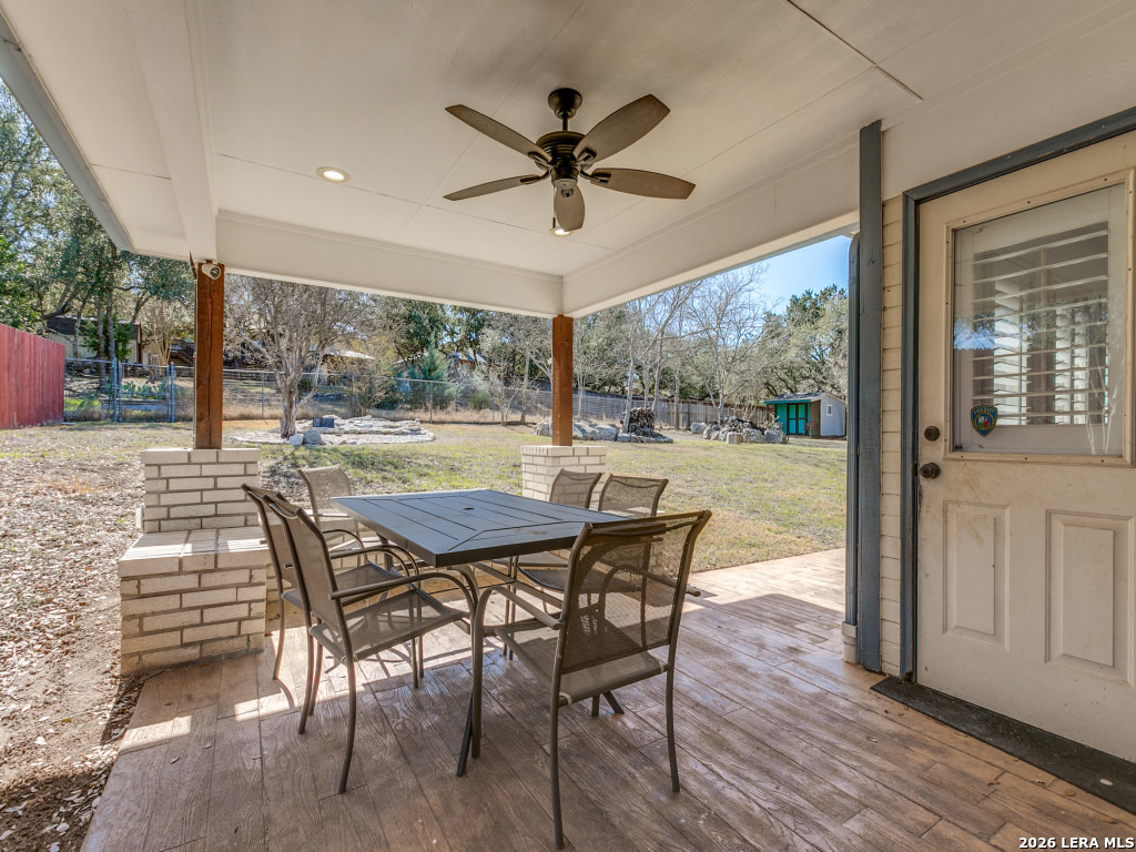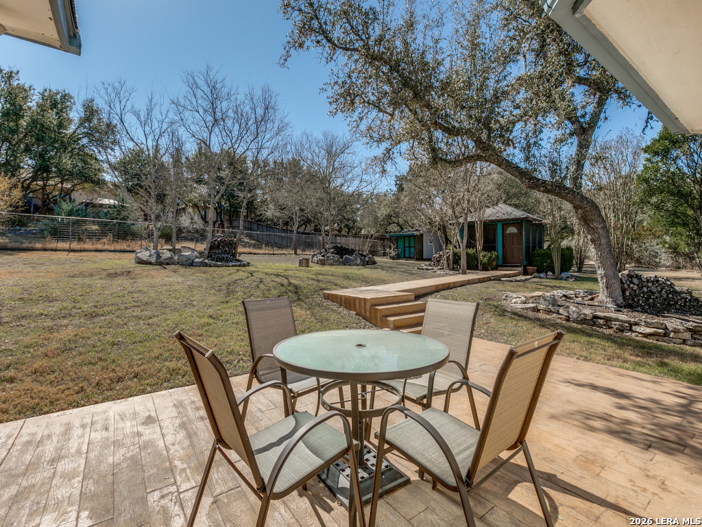 Welcome home to this beautifully maintained, comfortable one-story retreat! The open concept living/dining area allows for easy flow and the inviting kitchen offers plenty of room for meal prep and entertaining guests. This home is all one level with no steps and smooth thresholds. The luxurious primary bedroom is oversized with plenty of room for a private sitting area or desk space overlooking the vast back yard. Ensuite bathroom offers a separate shower and garden tub, double sinks, and a sizeable walk-n closet. The separate second and third bedrooms are spacious and have full sized closets. The secondary bathroom has been remodeled with a walk-in shower and a brand new counter top. Step outside to enjoy a large, fully fenced backyard, ideal for festive gatherings, pets, and play. The covered patio and low maintenance stamped concrete provides the perfect space for outdoor dining, an evening sky watch or simply enjoying the sound of rain on a spring day. Additionally, you will find two outbuildings. Grab your beverage of choice and walk to work in your back yard office, art studio or private gym - you decide how to use this great space. A two room workshop, perfect for storage and working on projects provides convenience and privacy, and it even has a covered front porch! With a new air conditioner in 2018, a new roof in 2024, sprinkler system, water softener (2023), and a kitchen reverse osmosis system (2023), this home is ready to move in and make memories for many years to come! (Buyer to confirm all zoning, schools, and measurements for needs.) Garage metal cabinets, freezer, security system, and microwave do not convey.