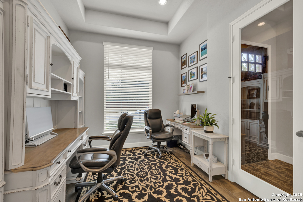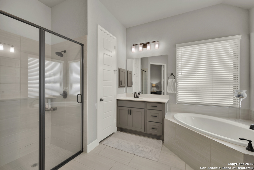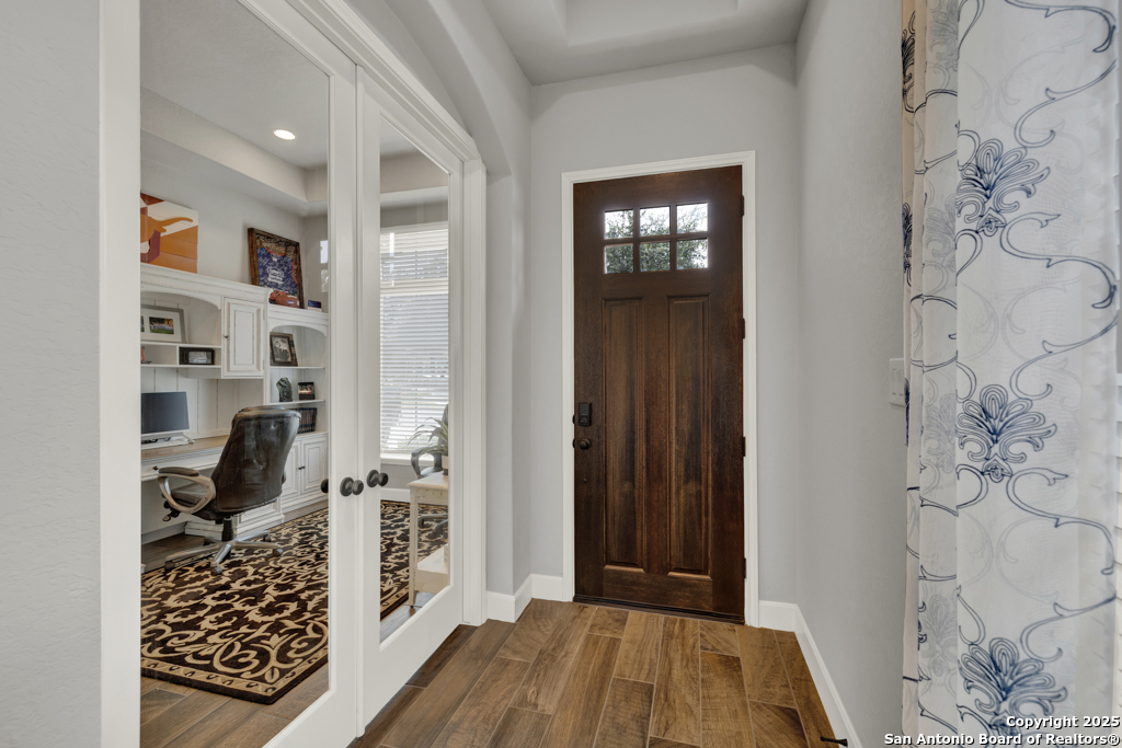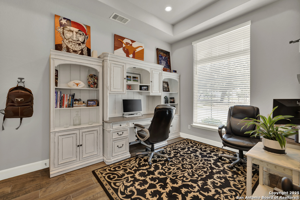 Welcome to 432 Sweetleaf Lane, a beautifully maintained single-story home in one of New Braunfels' most desirable communities-Veramendi. This 3-bedroom, 2-bath home features an open-concept layout with wood-look tile flooring, abundant natural light, and a warm, inviting feel throughout. The stylish kitchen boasts granite countertops, stainless steel appliances, shaker cabinetry, and a spacious island perfect for casual dining or entertaining. The inviting living room provides a comfortable space to relax and unwind, while the private home office with glass French doors offers a quiet retreat for working or enjoying your hobbies. The tranquil primary suite serves as a relaxing getaway, featuring a spacious layout, dual vanities, a walk-in shower, garden tub, and a generous walk-in closet. Two additional bedrooms and a full bath provide plenty of space for family or guests. Step outside to a covered back patio overlooking a fenced backyard-ideal for relaxing or hosting gatherings. Conveniently located near shopping, dining, rivers, Gruene, and all the Texas Hill Country has to offer, this home is move-in ready and waiting for you!