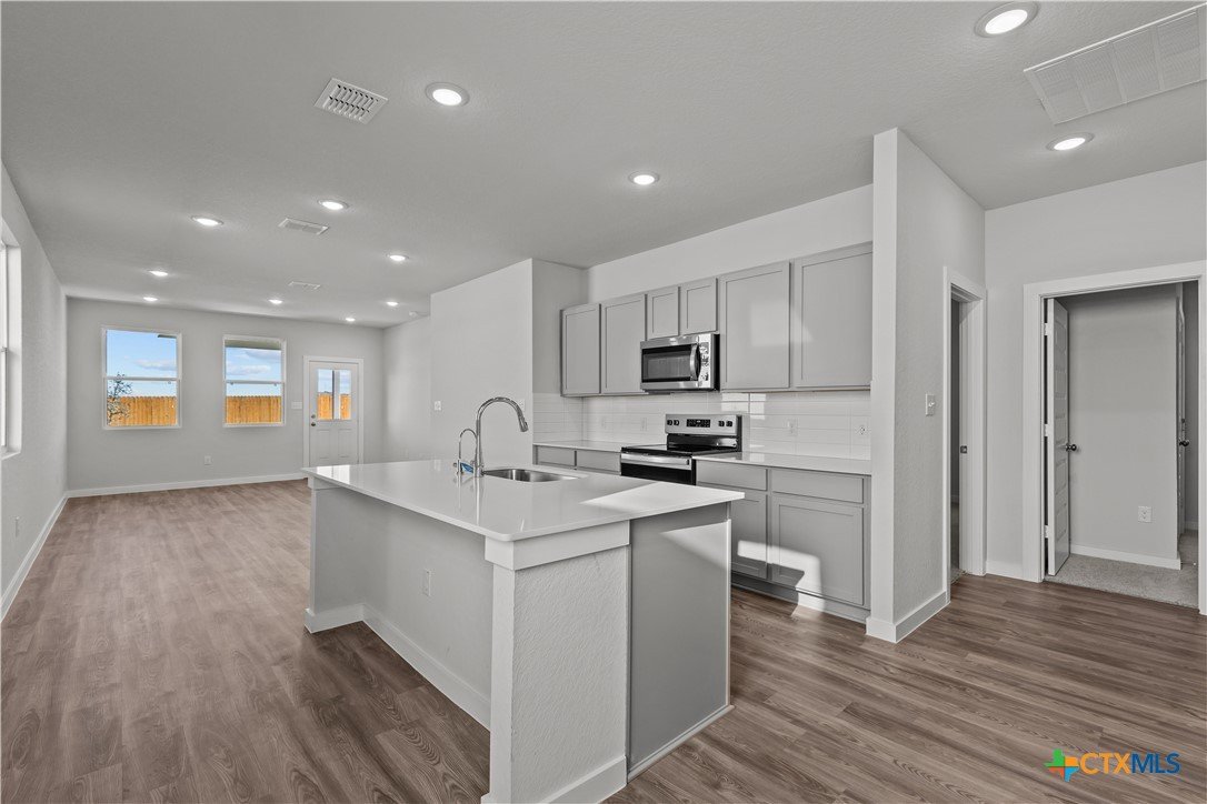 Featuring ample living space spread across a thoughtfully designed single-story floor plan, the Easton at Park Place beckons you inside with a spacious, open great room-perfect for gatherings! The inviting layout also showcases a dining area and spacious kitchen, complete with a center island and a walk-in pantry. The serene primary suite offers a large walk-in closet, as well as an attached bath with dual vanities. A laundry, two additional bedrooms, and a bathroom round out this attractive floor plan. Additional home highlights and upgrades: Oversized lot 36" gray kitchen cabinets, quartz countertops and backsplash Luxury wood-look vinyl plank flooring in common areas Stainless-steel appliances Soft water loop upgrade Additional recessed lighting throughout home Covered patio Garage door opener with two remotes Landscape package with sprinkler system Exceptional included features, such as our Century Home Connect smart home package and more!
