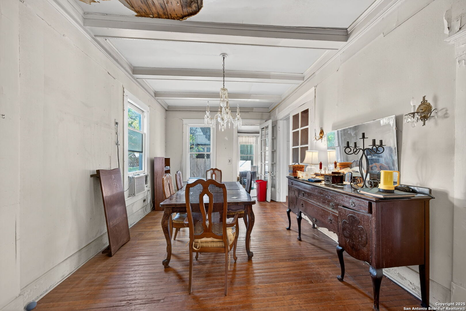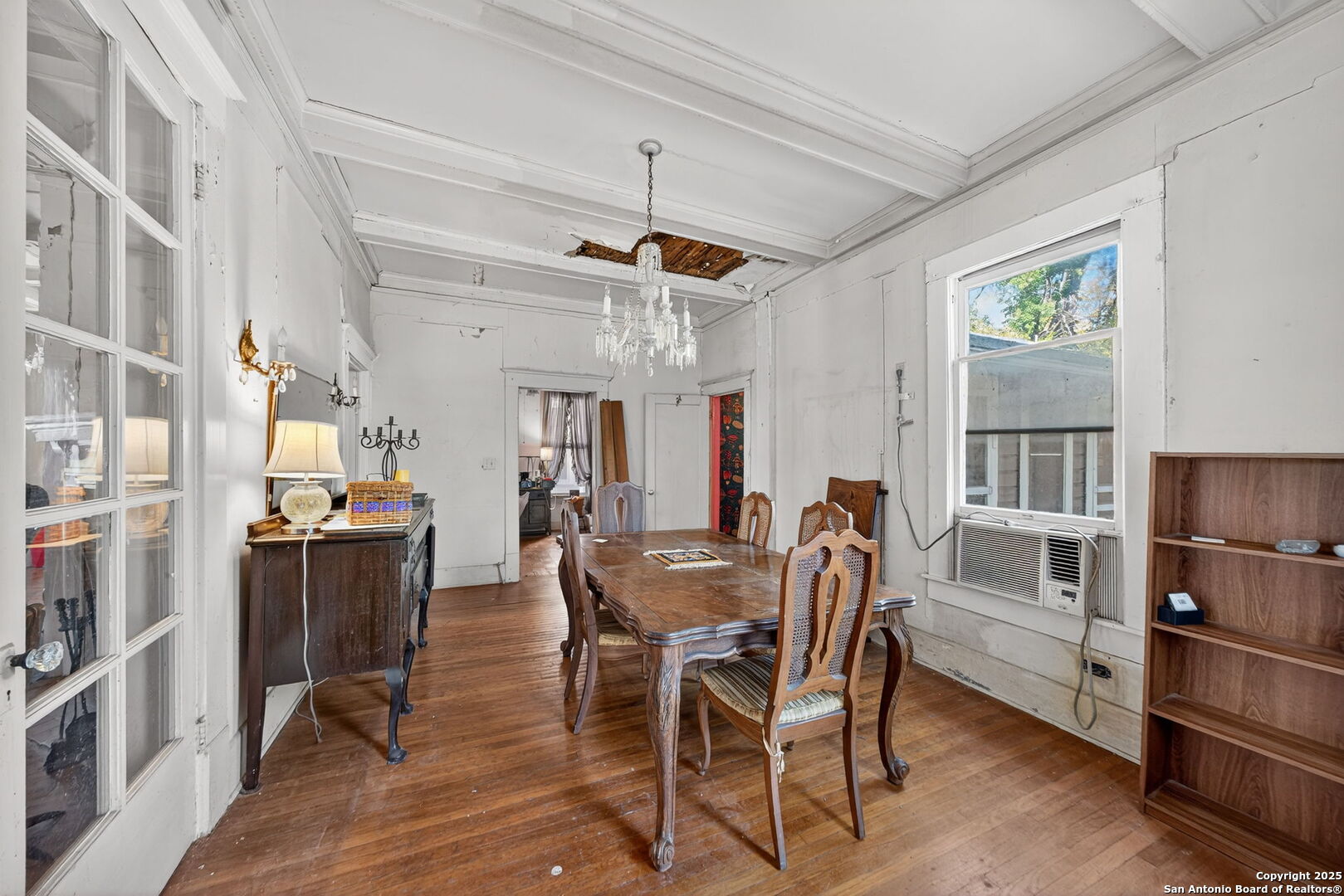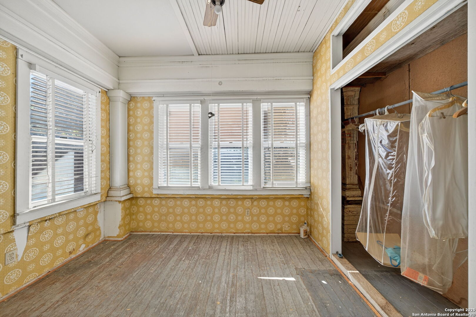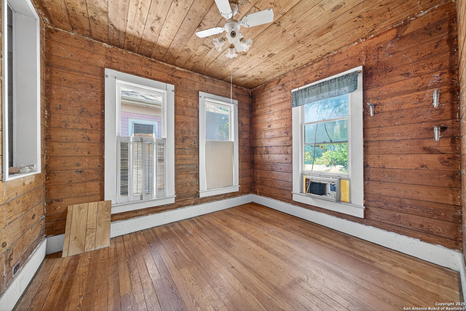 Step into the charm of early 1900s craftsmanship with this traditional two-story home just minutes from downtown San Antonio. Classic architectural details and high ceilings create a timeless atmosphere, while wood flooring throughout adds warmth and character-no carpet anywhere. Enjoy three inviting living areas, two dining spaces, and enclosed balconies and porch that offer extra versatility for relaxing or entertaining. The spacious kitchen features gas cooking and connects seamlessly to the main-level laundry area for everyday convenience. A cozy wood-burning fireplace anchors the living room, perfect for unwinding at the end of the day. With a durable metal roof, pier and beam foundation, and proximity to the bus line, this home combines vintage appeal with practical comfort. Sold as-is, it's ready for your personal touch and vision to bring it to life.