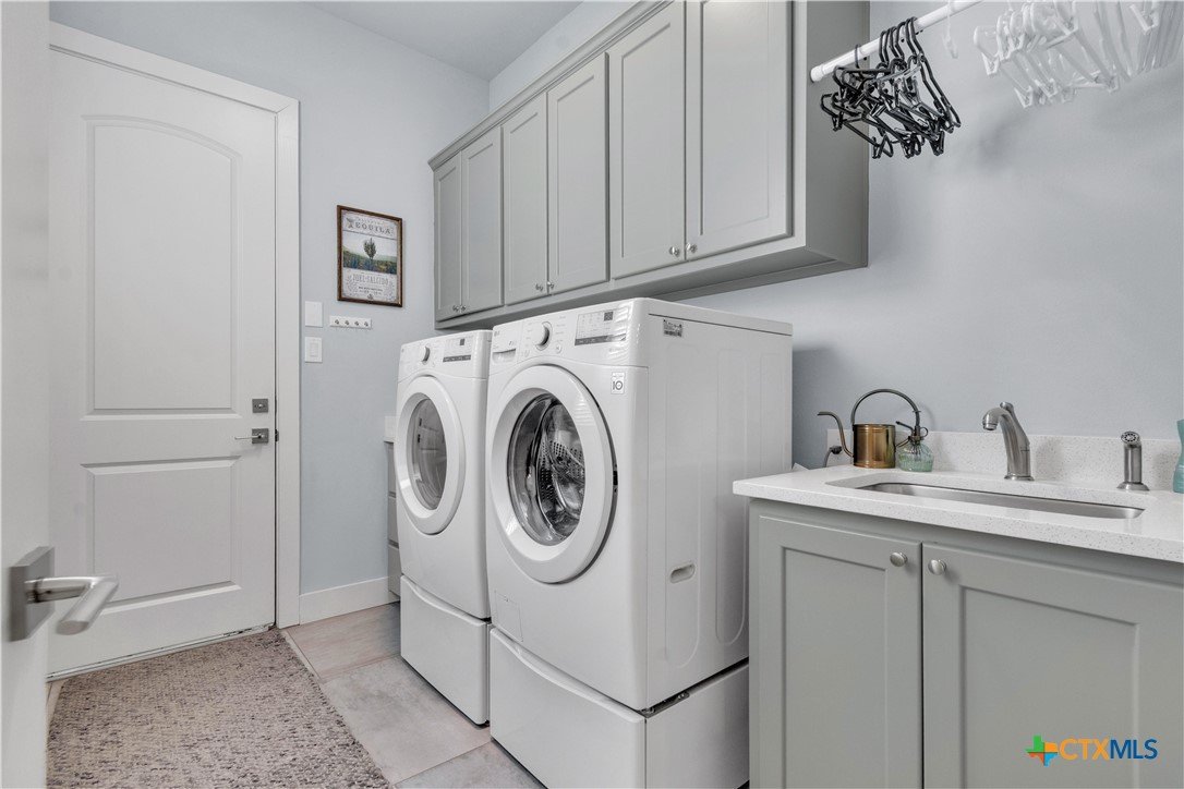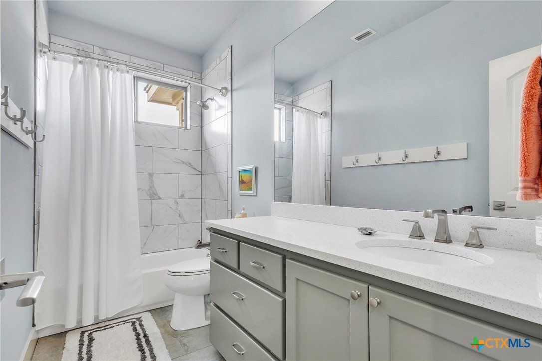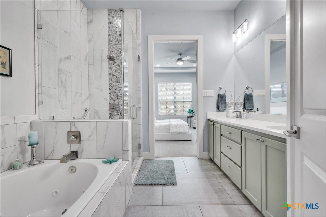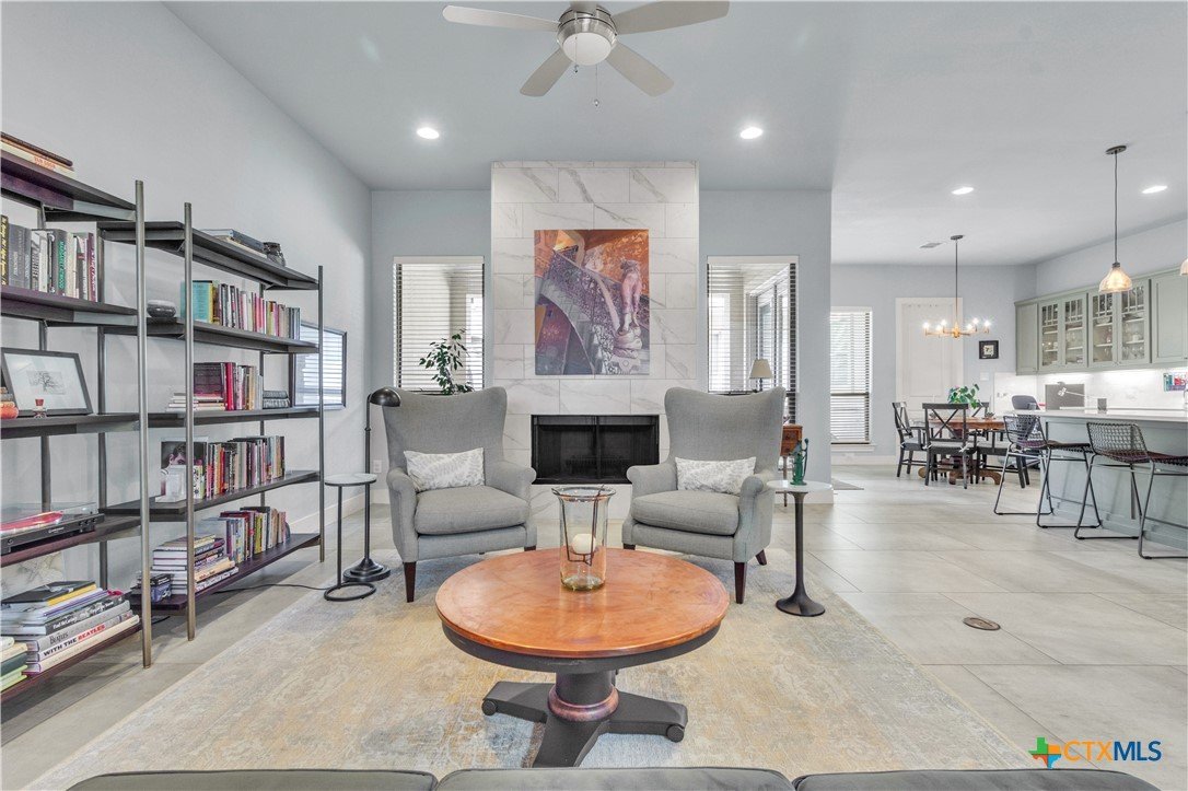 This well-maintained, single-owner townhome is minutes from Texas State, San Marcos Square, HEB, the Medical Center, and more. It offers a gated entry, private back patio with a wood-burning fireplace, upgraded appliances (GE profile with induction cooktop), ceiling fans, and HOA-maintained landscaping. The main floor includes a utility room with sink, spacious open living area with another fireplace, kitchen with island, breakfast and dining spaces, half bath, and a primary suite with a custom walk-in closet, garden tub, and separate shower. Upstairs are two bedrooms (one with double closets), a full guest bath, extra living space, and linen closet.