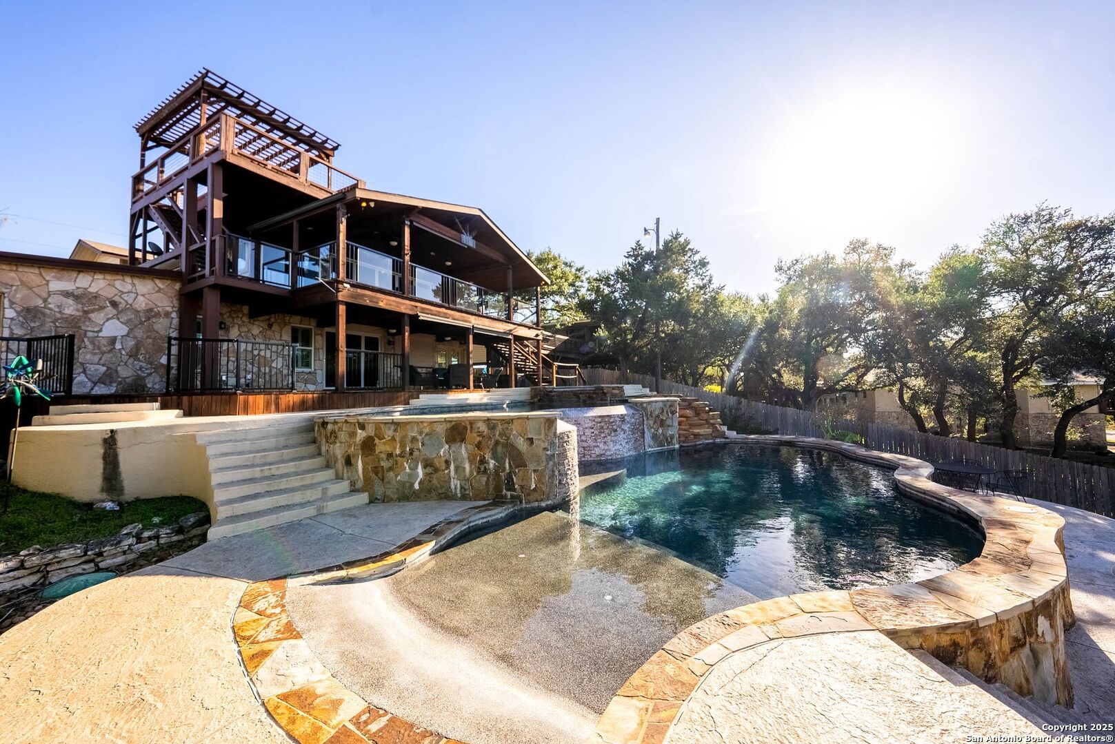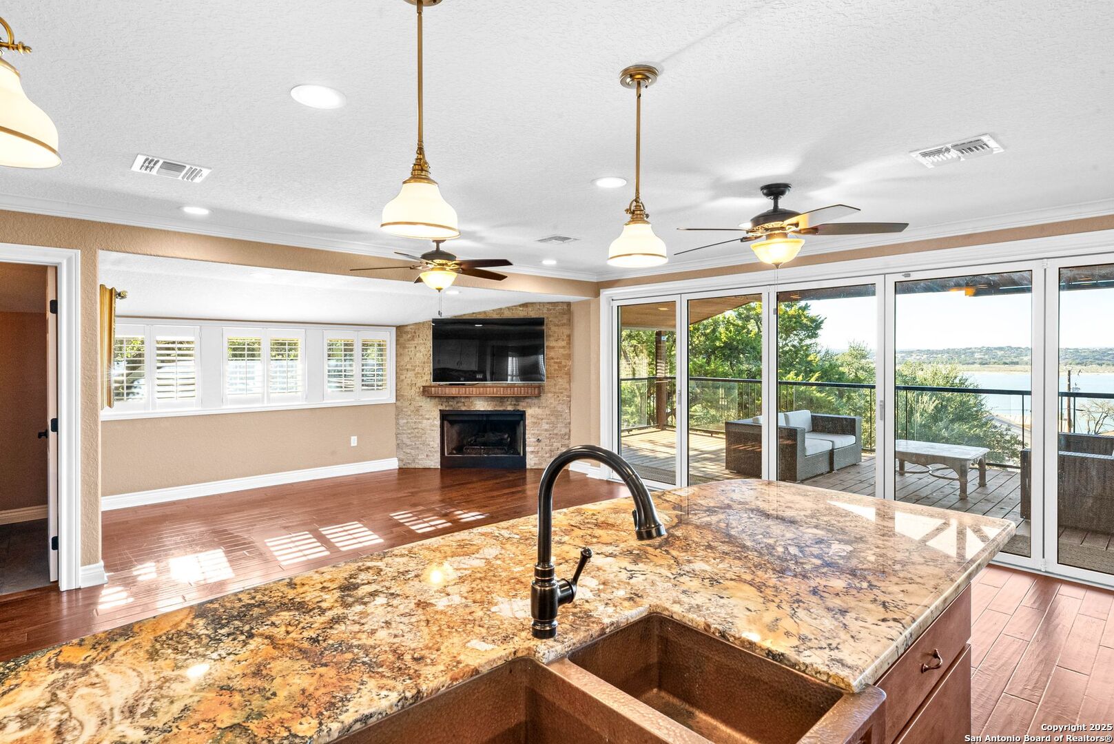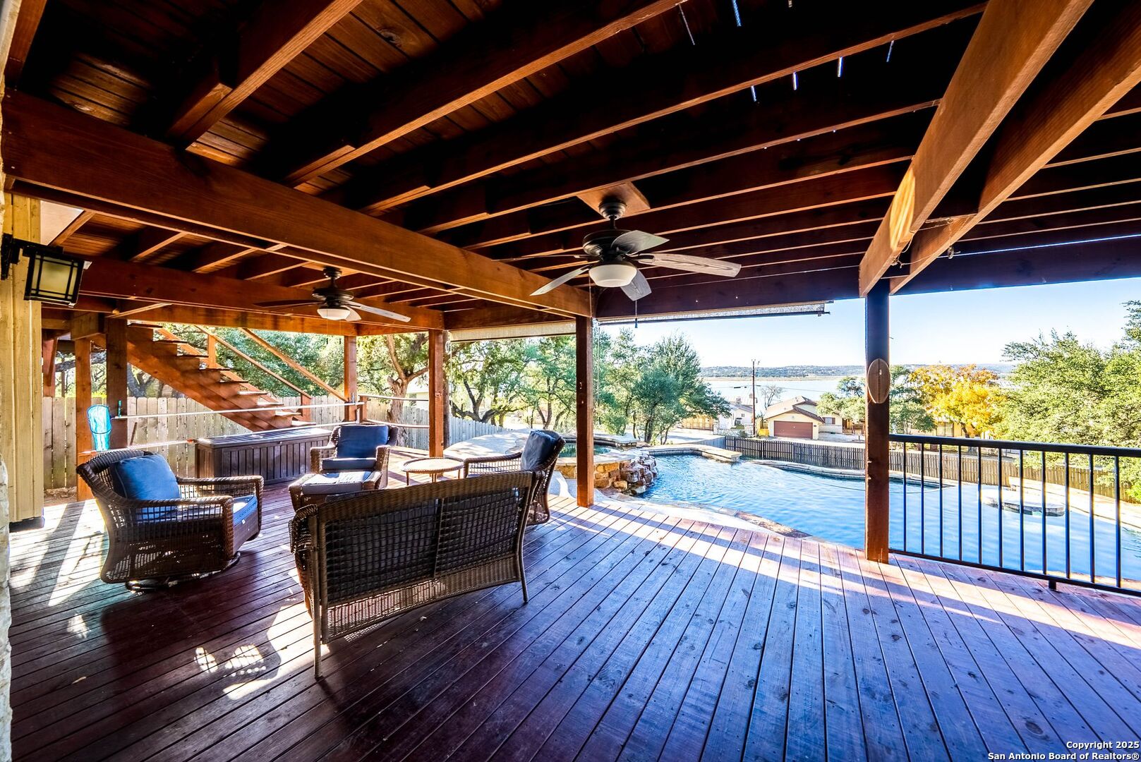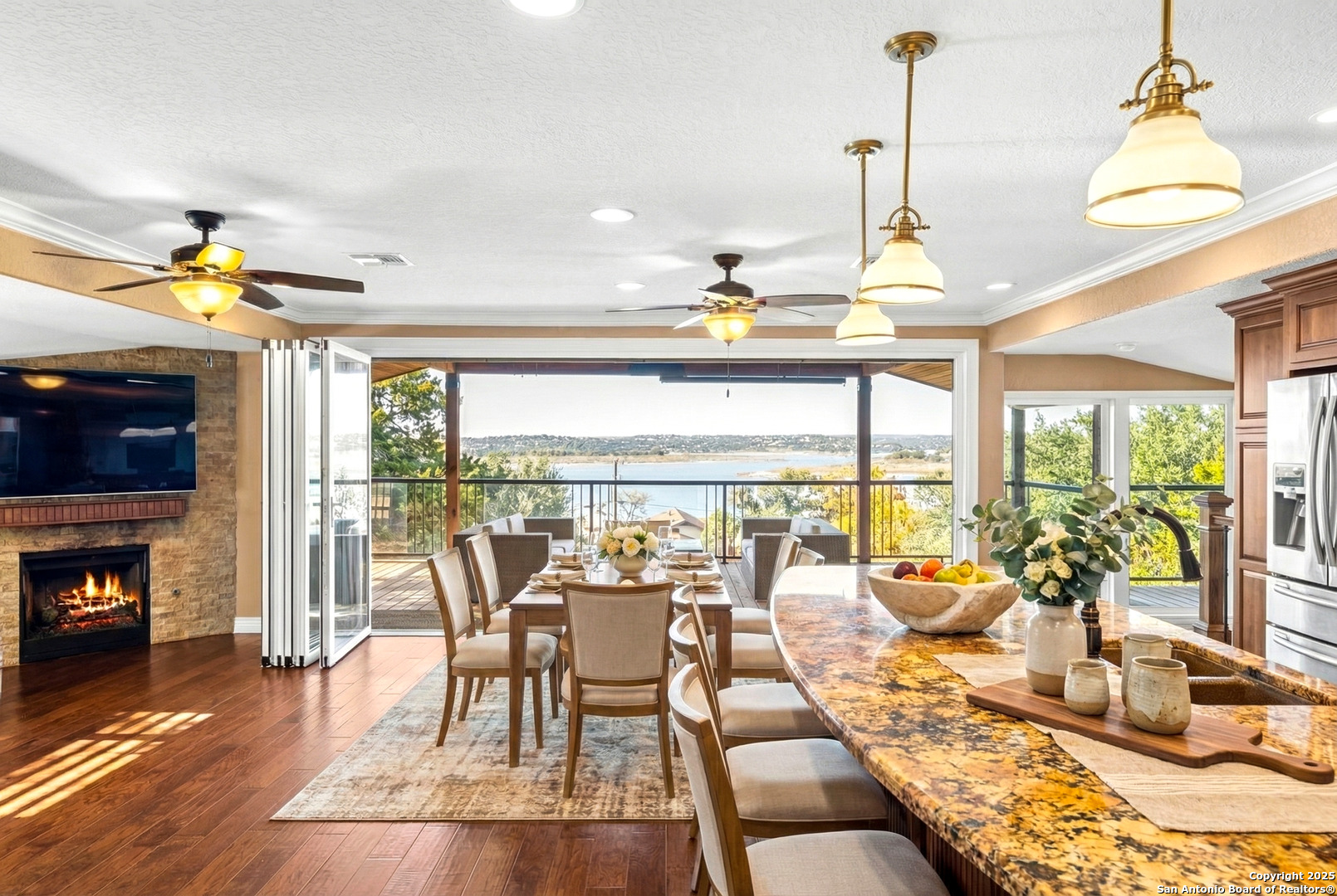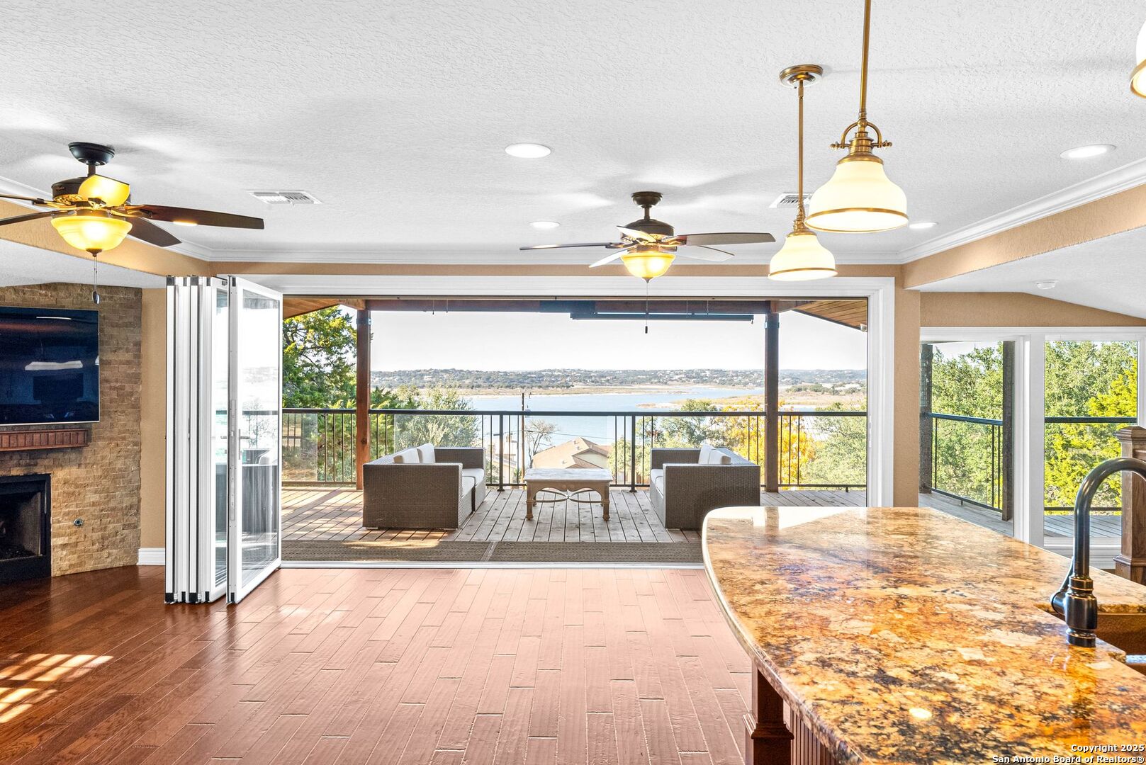 This unique two-story home offers 3 bedrooms, 2 full baths, 2 half baths and is connected to two additional lots that will be sold individually but may also be purchased together, creating an exceptional opportunity-especially with lake views, two pools and a hot tub on the property. Inside, the home features large windows, abundant natural light, no carpet throughout, and a gas fireplace in the living room. The kitchen includes gas cooking and the layout provides both comfort and functionality. Outside, a massive covered 3 story patio overlooking the lake, offering a serene space for relaxing or entertaining. An attached one-car garage completes this versatile property, which may also be purchased alongside two additional available properties for even more potential.