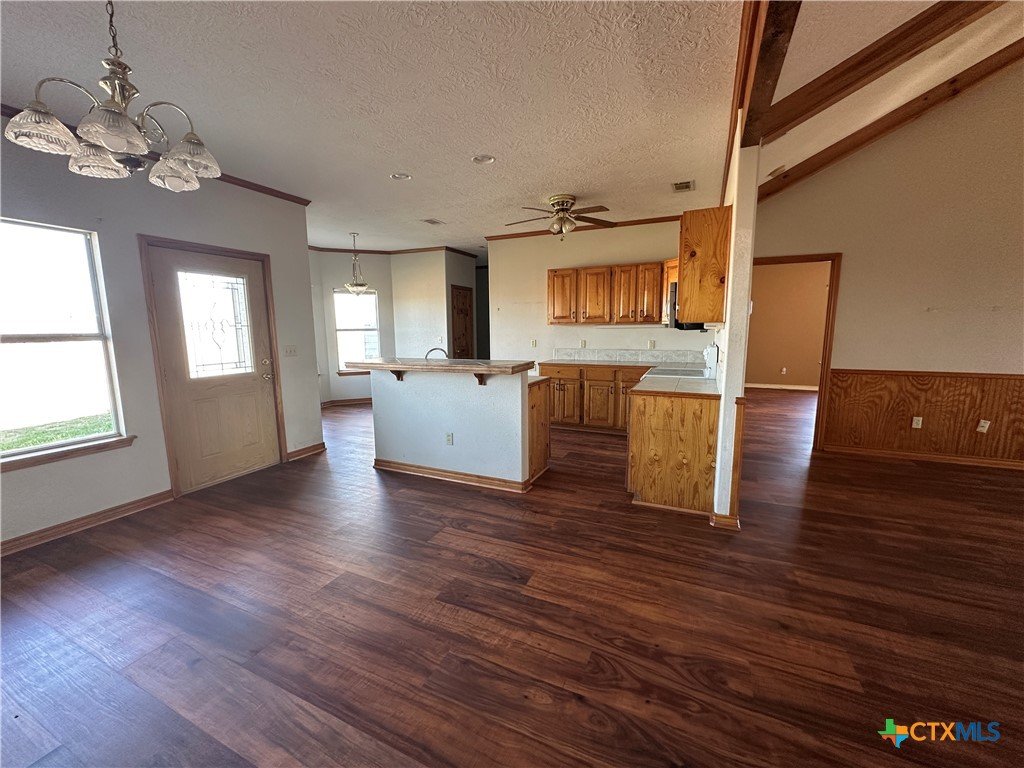 UPDATED PHOTOS COMING SOON. Welcome to this charming Hill Country-style home sitting atop 5.515 peaceful acres just south of Magical Martindale! This 3-bedroom, 2-bath home offers 1,719 sq ft of comfortable living with an open floor plan, soaring beamed ceilings, and recent vinyl flooring throughout. The kitchen features an island with breakfast bar, solid countertops, pantry, and opens to two dining areas — perfect for entertaining. The primary suite includes a walk-in closet, separate shower, and double vanity. The land is a blank slate, with only the perimeter ranch-fenced with an automatic gate. Additional highlights include a 2-car garage, new metal roof, stone and Hardiplank exterior, aerobic septic, co-op water and electric, and access to a shared well for livestock. No HOA, no floodplain - just wide open Texas living! Schedule your showing today!