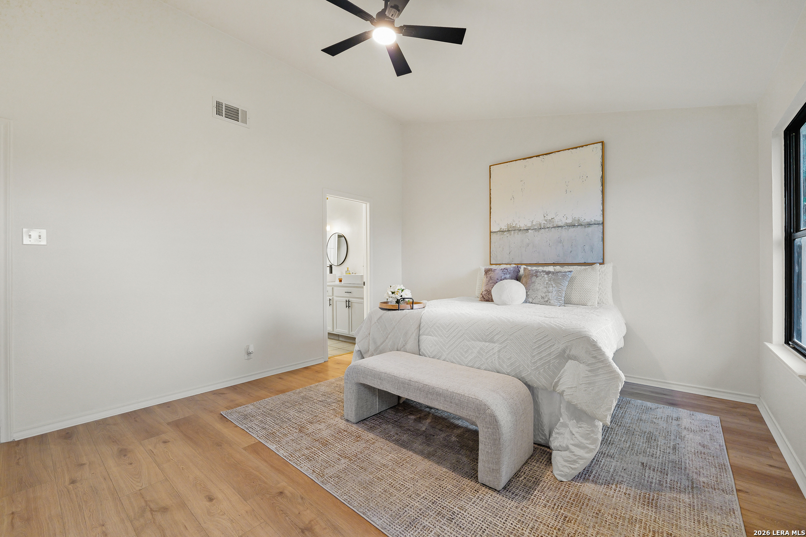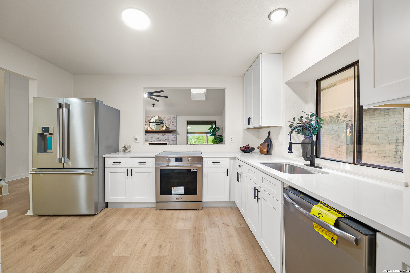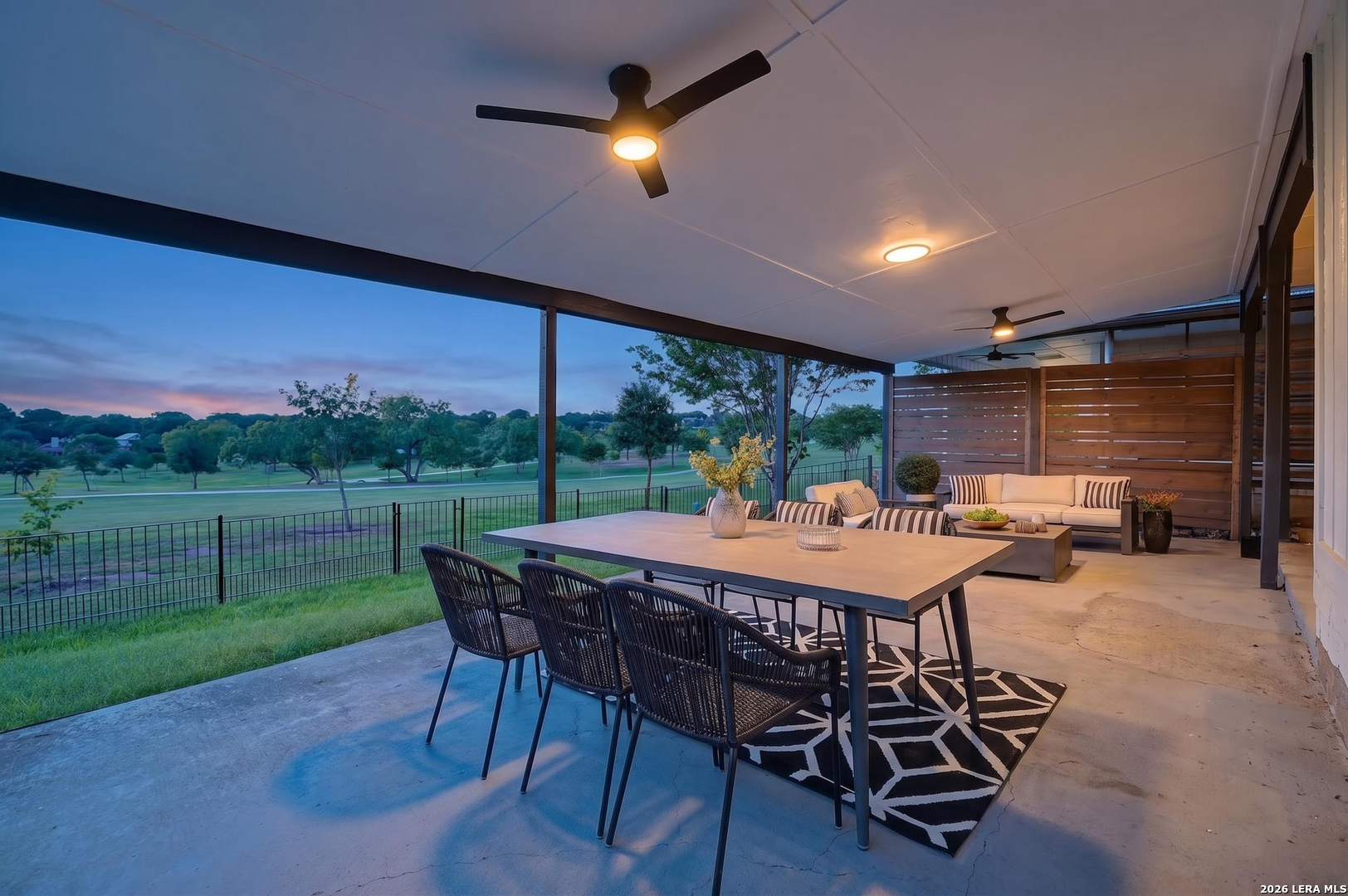 Set along the prestigious fairways of Northern Hills Golf Course, this beautifully crafted 3-bedroom, 2.5-bath home offers 1,860 square feet of thoughtfully designed living space with a modern farmhouse feel. From the curb, you're greeted by clean architectural lines, warm wood accents, and inviting charm. Inside, an open-concept layout connects the living and dining areas, filled with natural light and ideal for both everyday living and entertaining. The kitchen stands at the center of the home, featuring sleek finishes, abundant cabinetry, and a functional layout that makes hosting effortless. The private primary suite provides a relaxing escape with a well-appointed en-suite bath and generous closet space. Two additional bedrooms offer flexibility for guests, a home office, or growing needs, while a convenient half-bath adds extra practicality. Positioned on the scenic Northern Hills Golf Course, this home offers peaceful surroundings with excellent accessibility. Enjoy quick access to Loop 410, I-10, and Highway 281, along with close proximity to top shopping, dining, and the San Antonio International Airport. A perfect blend of comfort, style, and location in a sought-after golf course community.