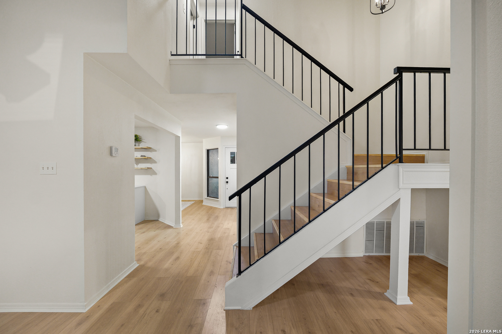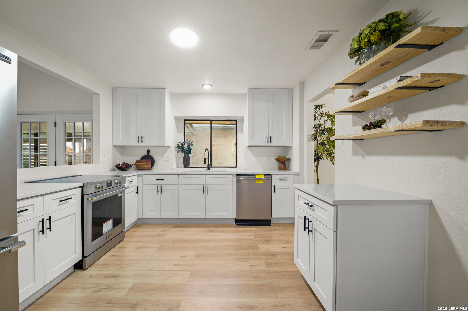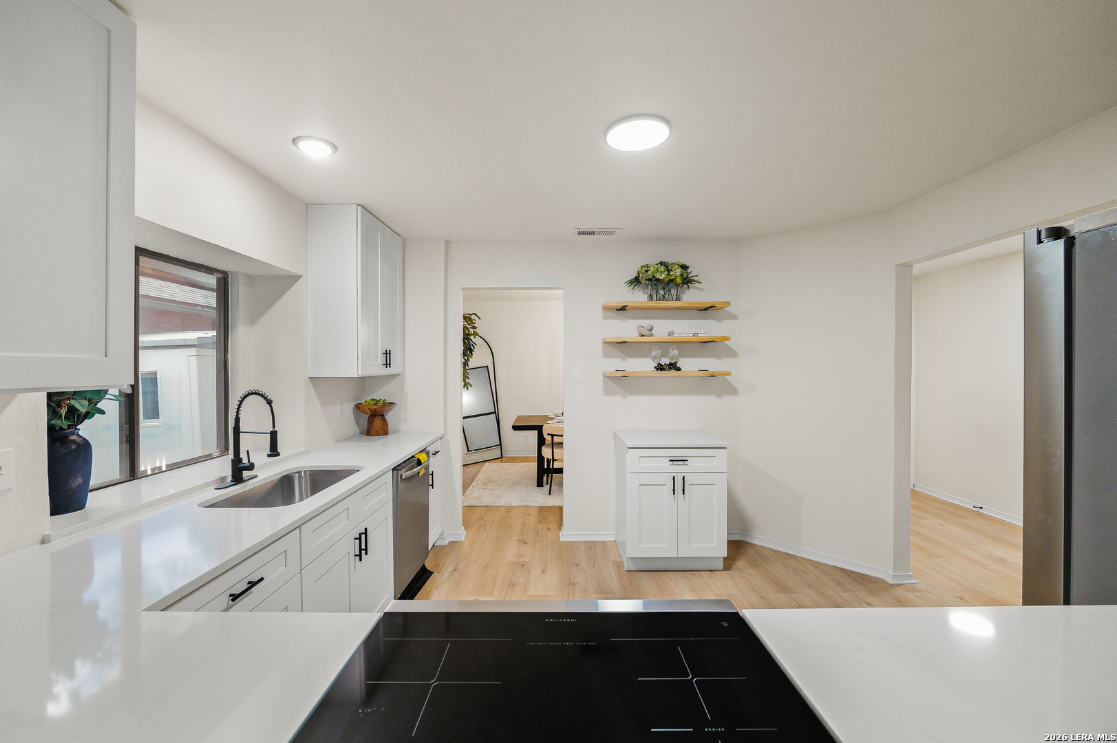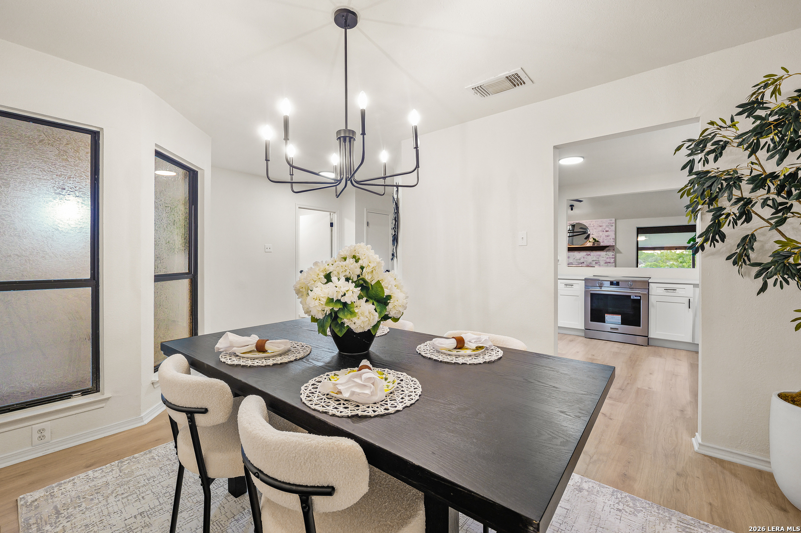 Set along the prestigious fairways of Northern Hills Golf Course, this beautifully crafted 3-bedroom, 2.5-bath home offers 1,860 square feet of thoughtfully designed living space with a modern farmhouse feel. From the curb, you're greeted by clean architectural lines, warm wood accents, and inviting charm. Inside, an open-concept layout connects the living and dining areas, filled with natural light and ideal for both everyday living and entertaining. The kitchen stands at the center of the home, featuring sleek finishes, abundant cabinetry, and a functional layout that makes hosting effortless. The private primary suite provides a relaxing escape with a well-appointed en-suite bath and generous closet space. Two additional bedrooms offer flexibility for guests, a home office, or growing needs, while a convenient half-bath adds extra practicality. Positioned on the scenic Northern Hills Golf Course, this home offers peaceful surroundings with excellent accessibility. Enjoy quick access to Loop 410, I-10, and Highway 281, along with close proximity to top shopping, dining, and the San Antonio International Airport. A perfect blend of comfort, style, and location in a sought-after golf course community.