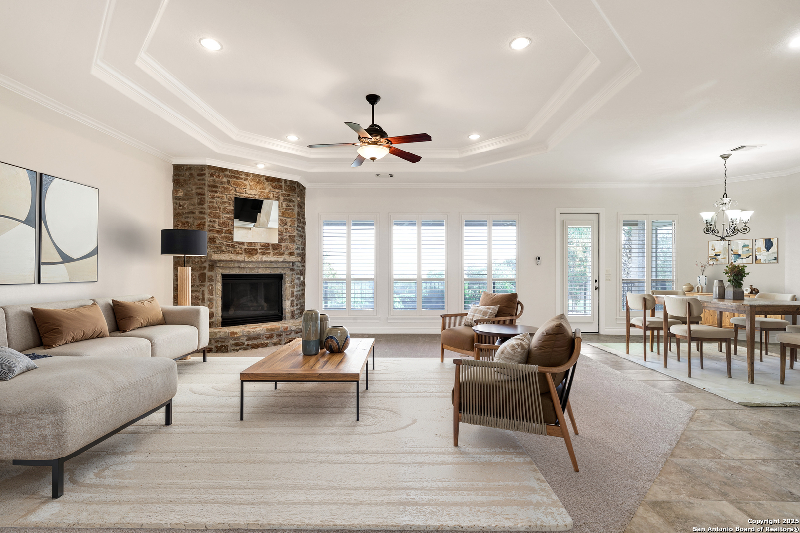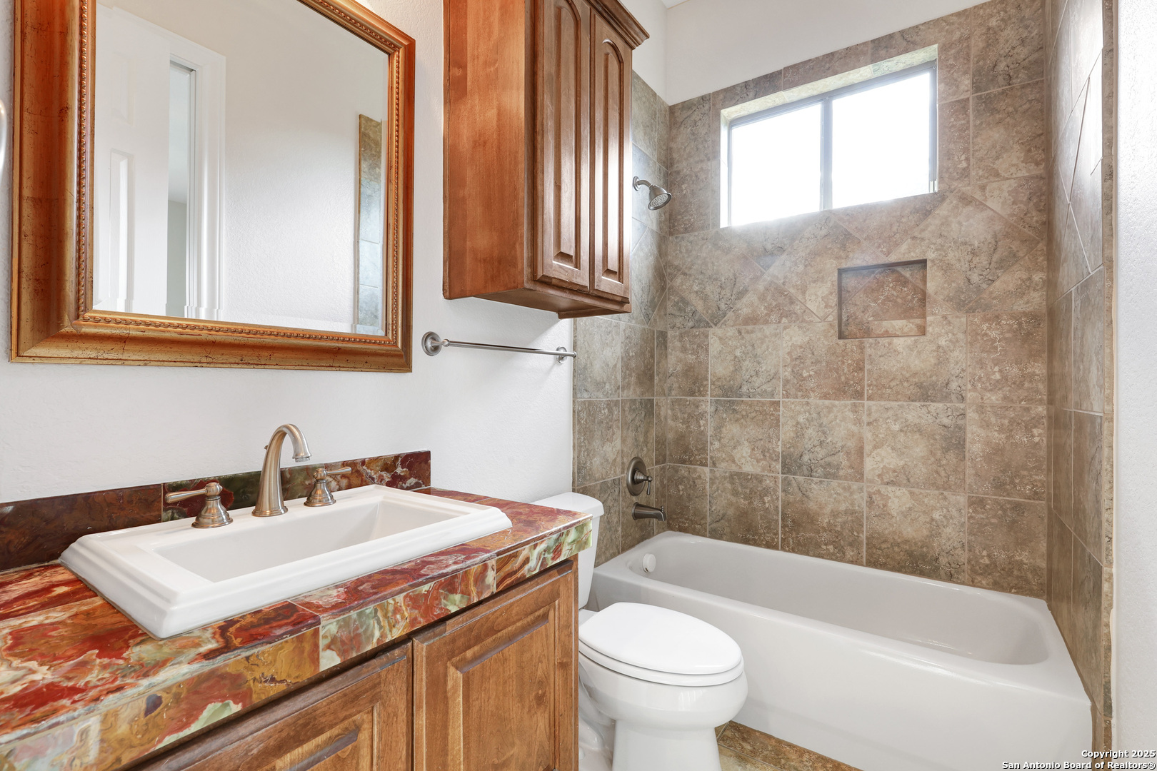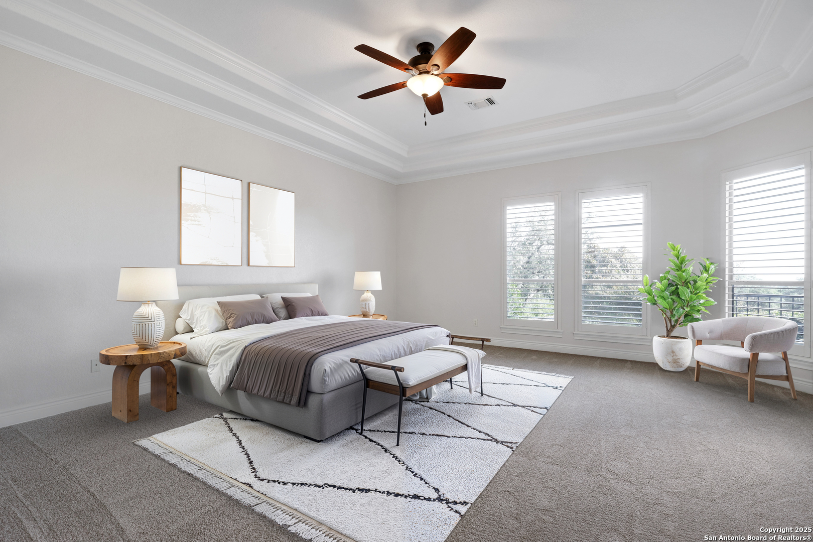 OPEN HOUSE this Sunday 8/31 (2:00-4:00) Live in your dream home with a "MILLION DOLLAR VIEW" and the most "STUNNING" back yard oasis in all of Sonoma Ranch! This luxurious 4 bedroom, 4 bath retreat on nearly an acre is also nestled on a private cul-de-sac. Experience pure elegance with an open floor plan, soaring high ceilings, timeless tile flooring, and a stunning gourmet kitchen designed for both style and functionality. This beautifully updated home has fresh paint and new carpeting throughout. A rare gem that has 3 bedrooms downstairs including 2 master suites. The main master suite is large enough to add a lounging or reading area. It has a spa like bathroom with the walk-in closet of your dreams. Upstairs, discover a mother in law suite with its own bathroom and walk in closet, along with a spacious media/game room ideal for entertaining or relaxing. This home has an abundance of storage space including a walk in attic ...several linen closets and built in cabinets in a 3 car garage. Step outside to an incredible covered patio showcasing breathtaking city views, a sparkling pool, and a beautifully manicured yard. This outdoor paradise is designed for relaxation and entertaining alike." Zoned for some of the highest rated schools in the city. Only minutes away from La Cantera and Rim shopping centers.